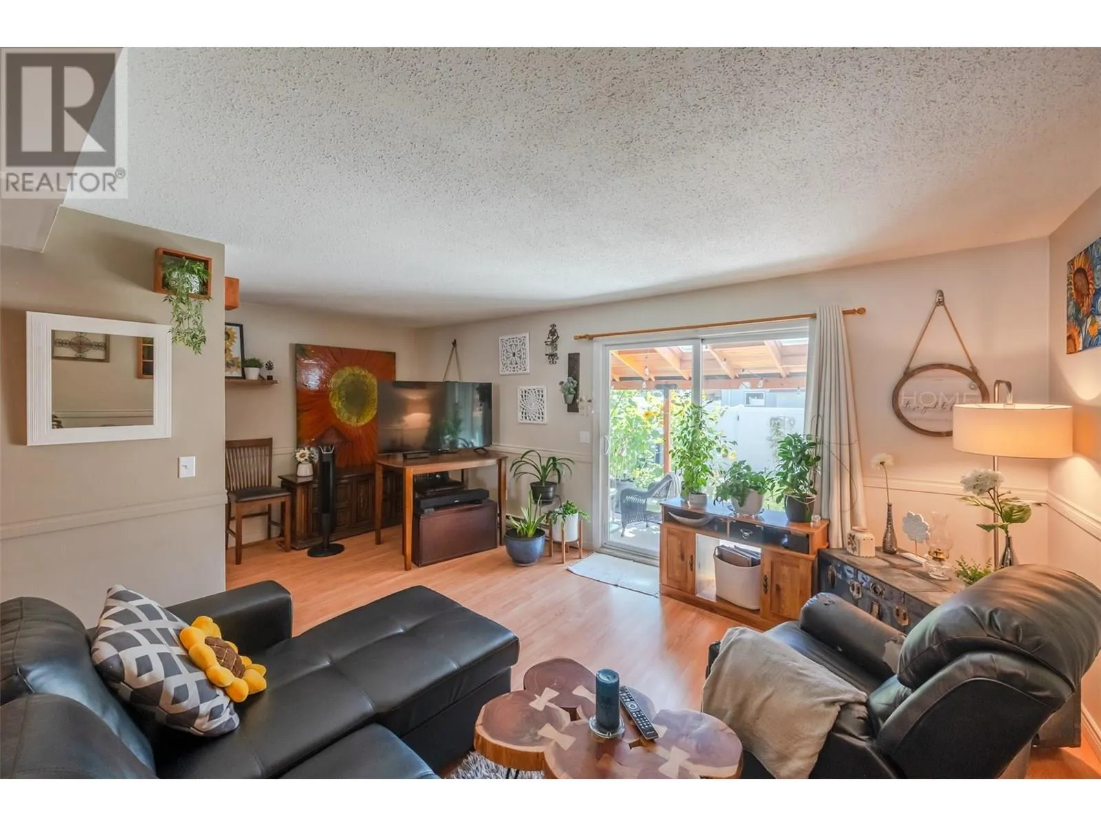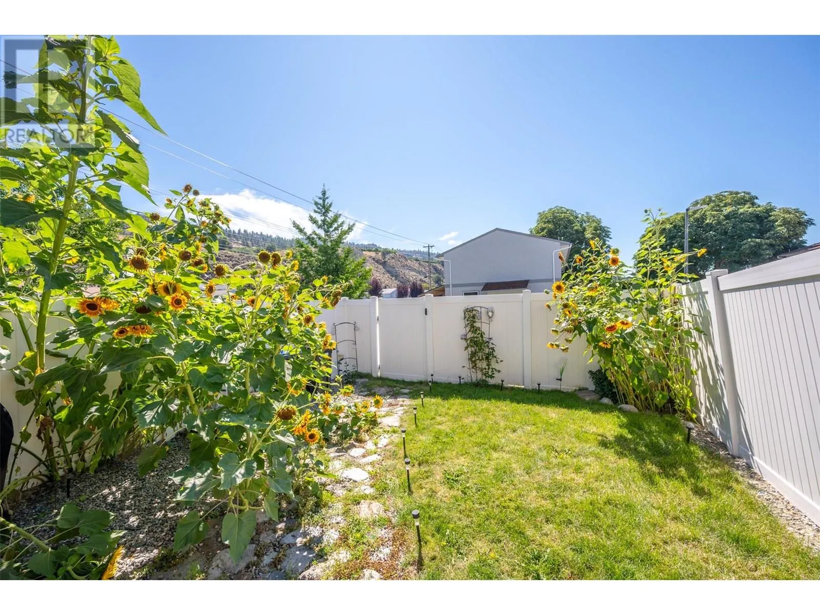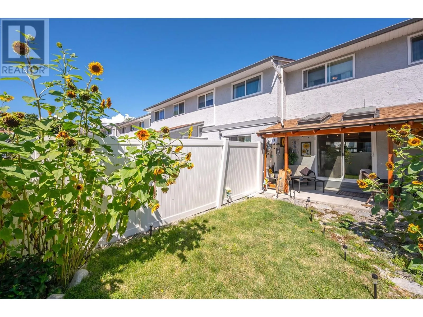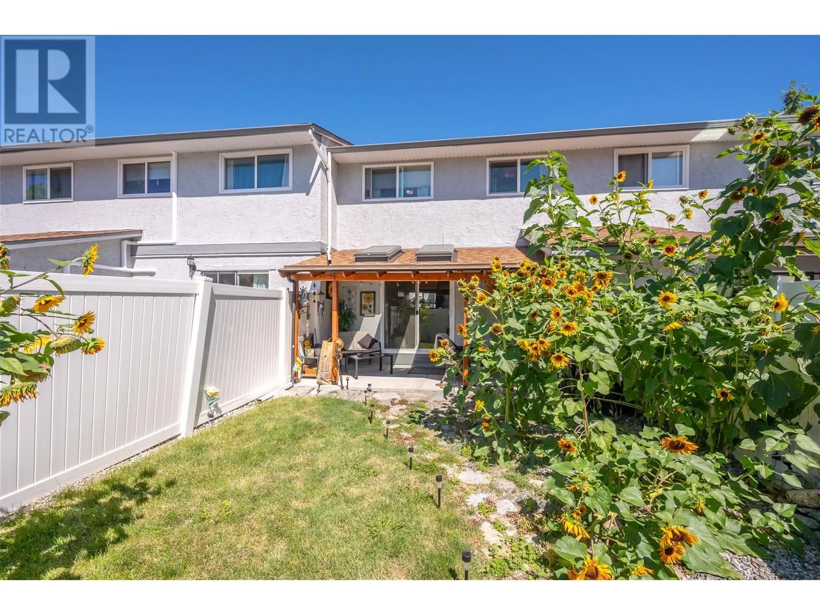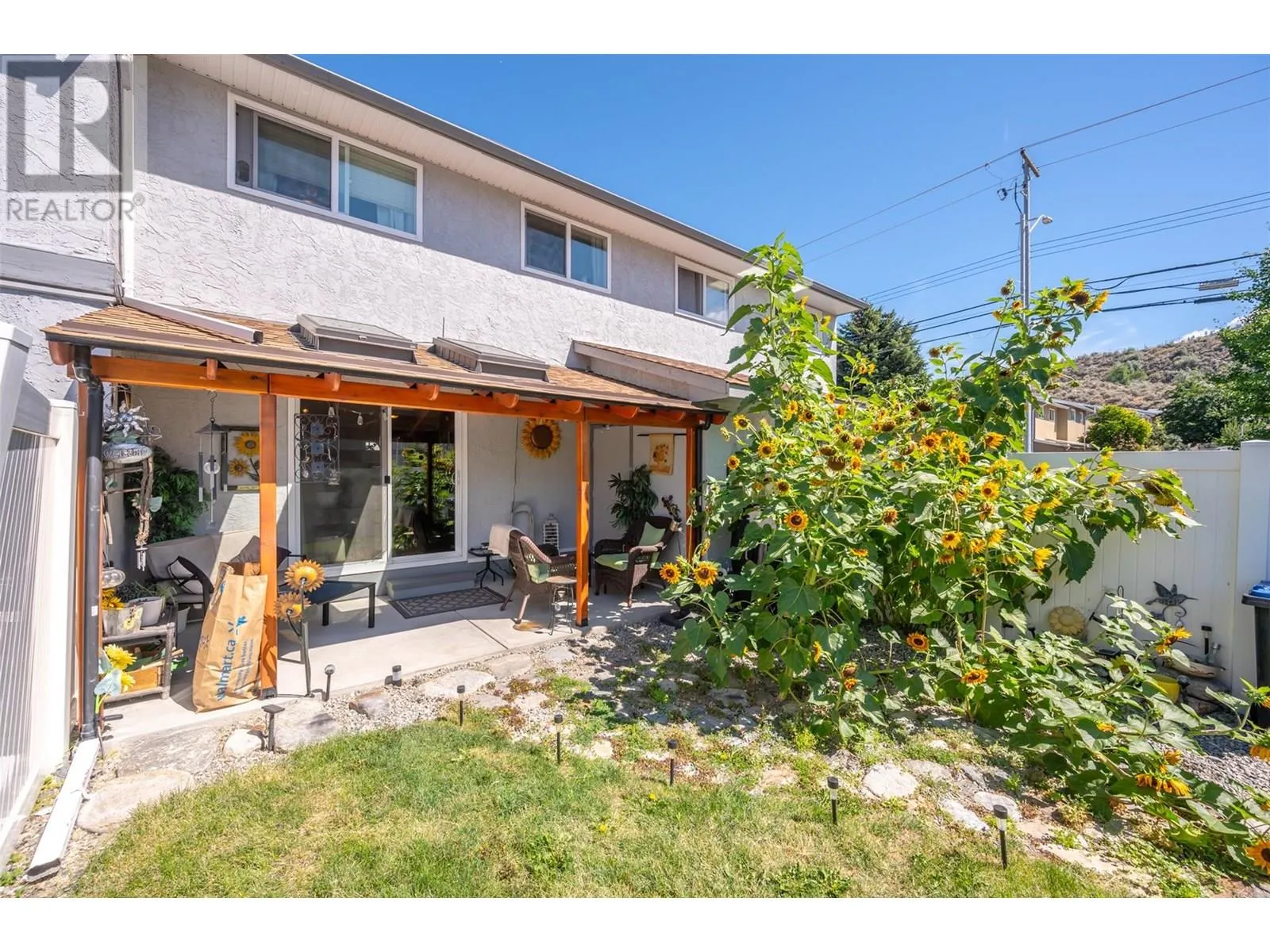 Just 5 minutes from Skaha Beach, this 3-bedroom, 2-bath home is part of the family-friendly, pet-welcoming Chateau Village community. The main floor offers a convenient 2-piece bath; features an open layout, with a fresh kitchen and built-in island that flows into the dining and living areas. Large south-facing patio doors fill the space with light and open to a newer built covered patio surrounded by cheerful sunflowers and easy-to-care-for garden bedsâperfect for enjoying warm summer evenings. Upstairs offers 3 comfortable bedrooms, a 4-piece bath, and plenty of storage. Parking is conveniently right out front, and the location is close to parks, schools, and shops. Monthly strata fee:$494.83. Find Yourself Living Here! (id:27476)
