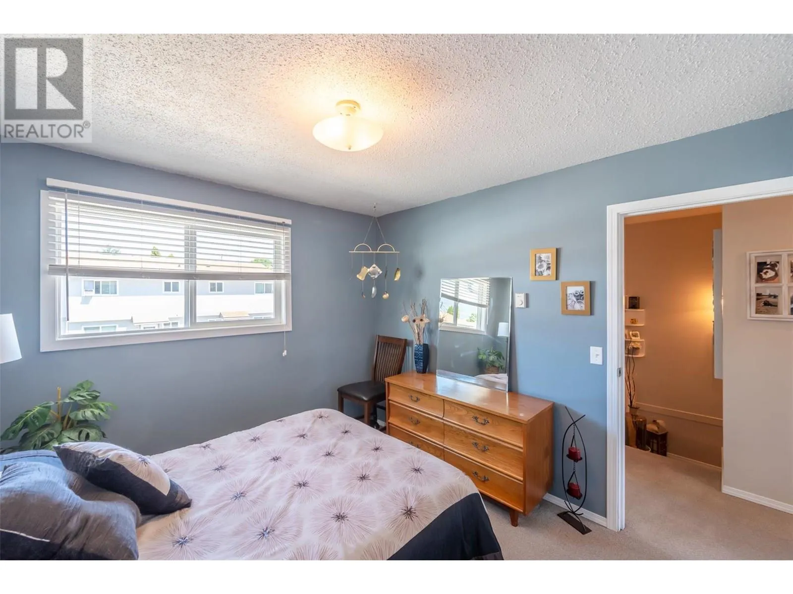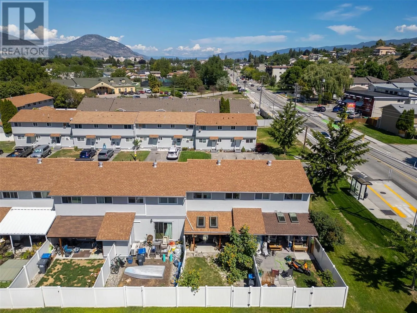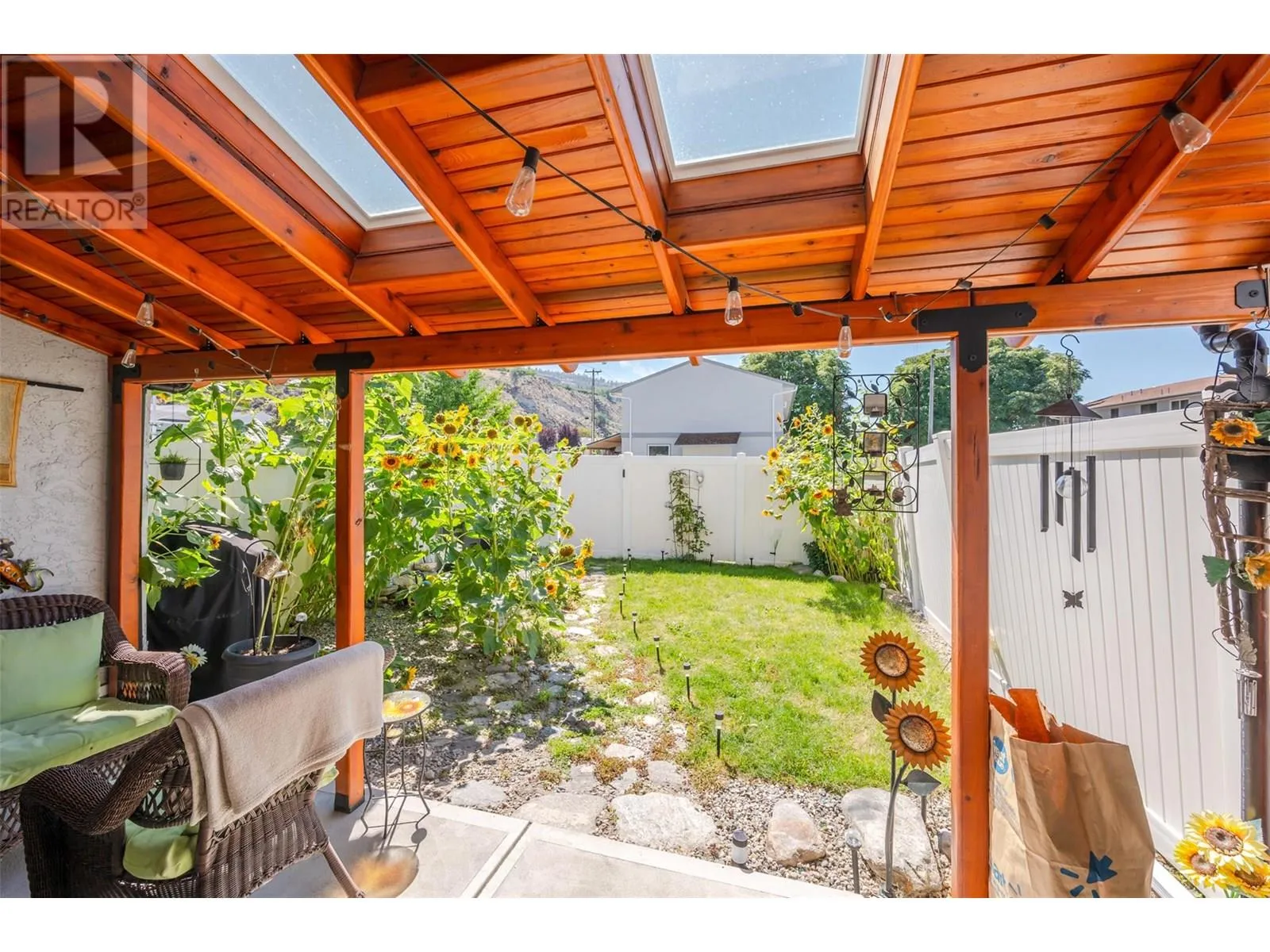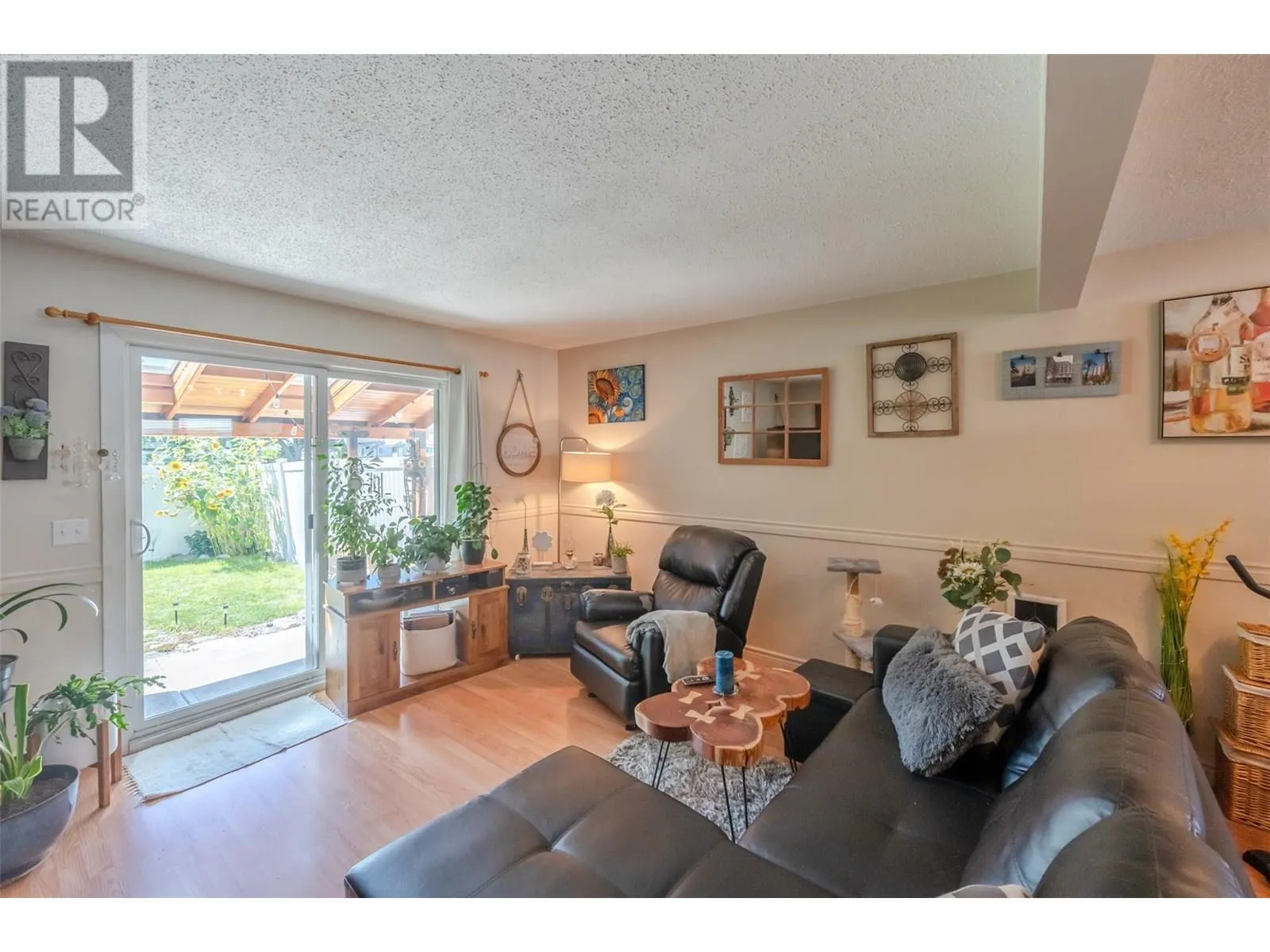 Just 5 minutes from Skaha Beach, this 3-bedroom, 2-bath home is part of the family-friendly, pet-welcoming Chateau Village community. The main floor offers a convenient 2-piece bath; features an open layout, with a fresh kitchen and built-in island that flows into the dining and living areas. Large south-facing patio doors fill the space with light and open to a newer built covered patio surrounded by cheerful sunflowers and easy-to-care-for garden bedsâperfect for enjoying warm summer evenings. Upstairs offers 3 comfortable bedrooms, a 4-piece bath, and plenty of storage. Parking is conveniently right out front, and the location is close to parks, schools, and shops. Monthly strata fee:$494.83. Find Yourself Living Here! (id:27476)