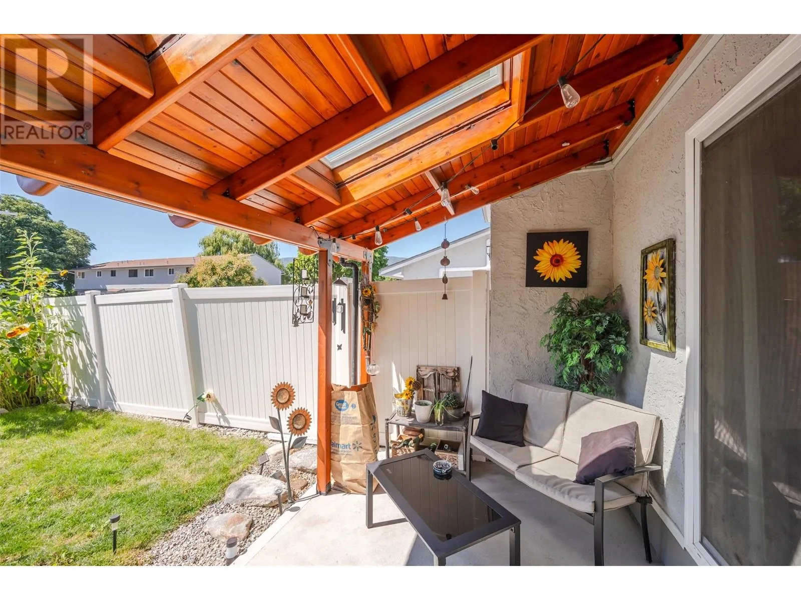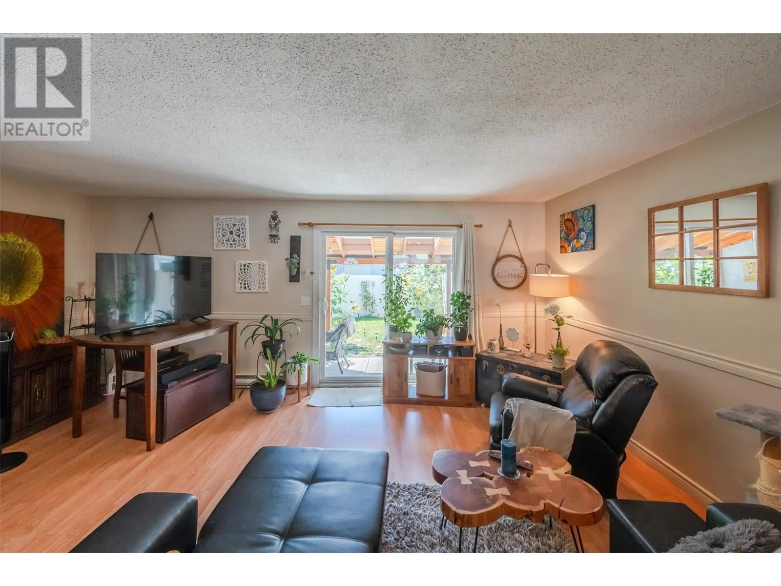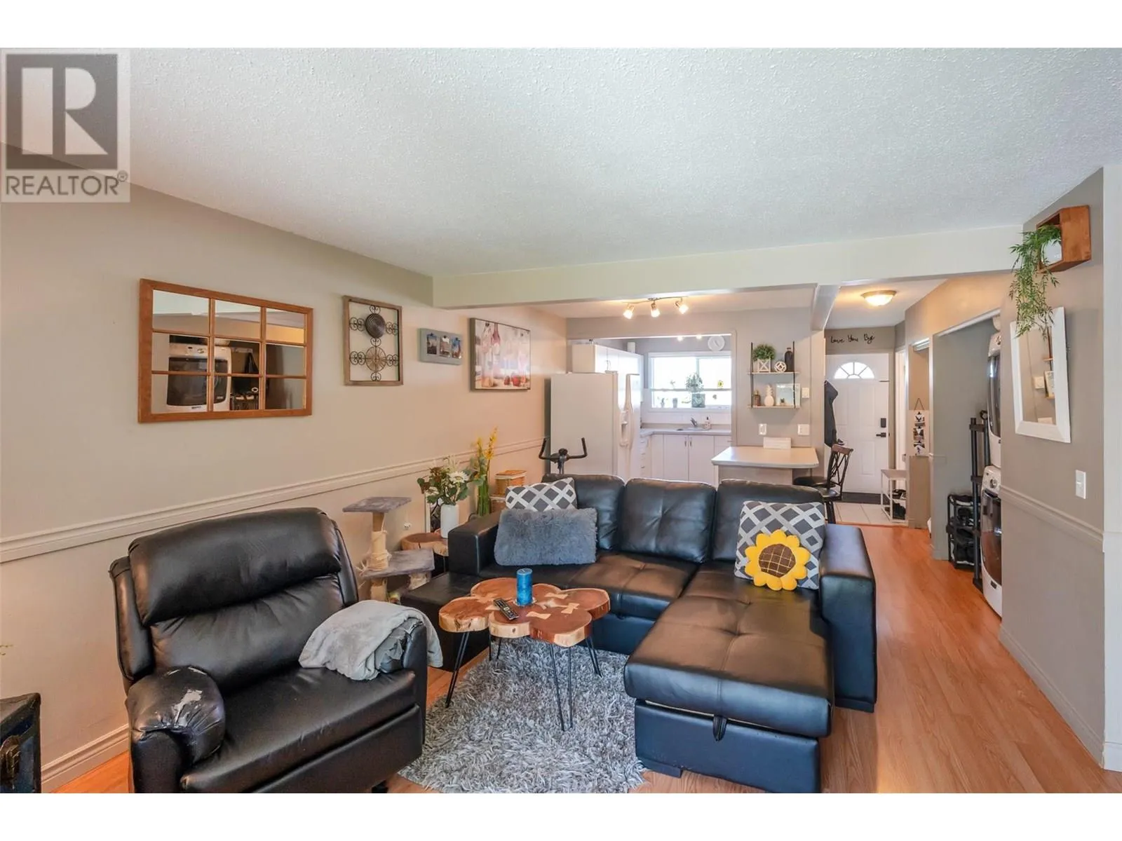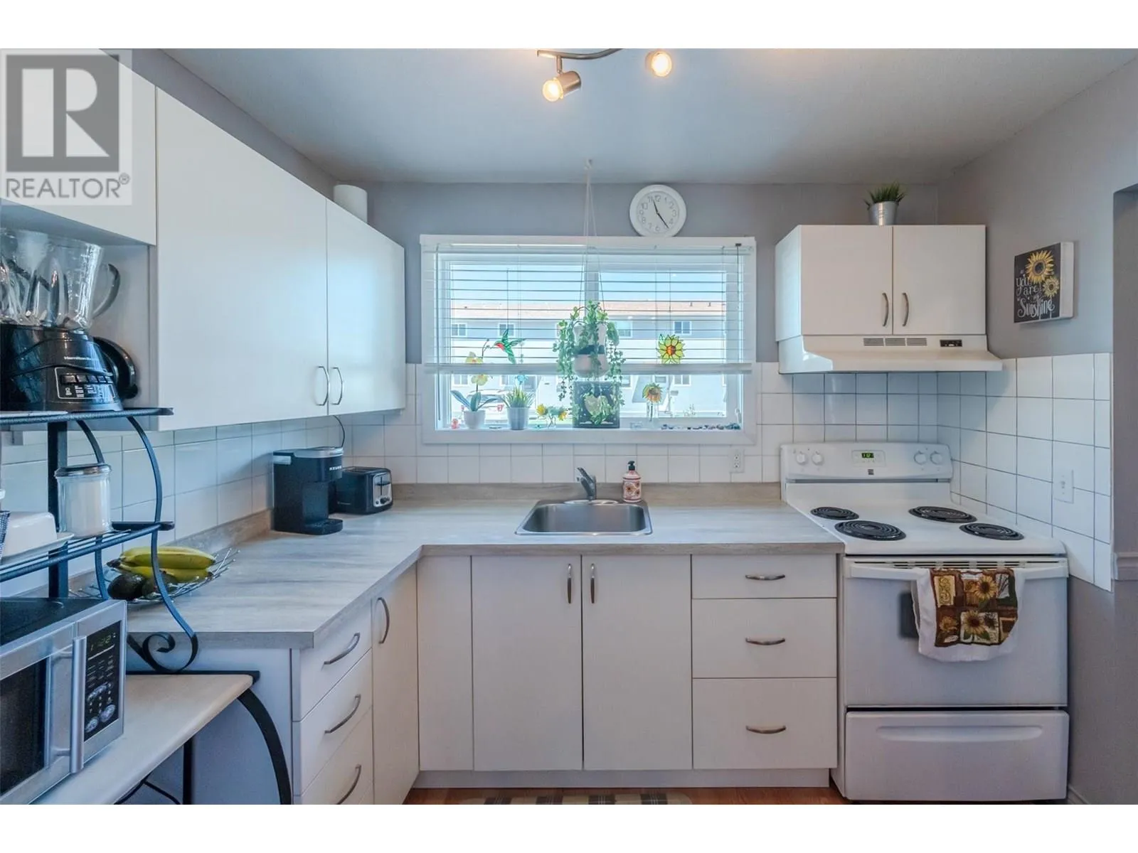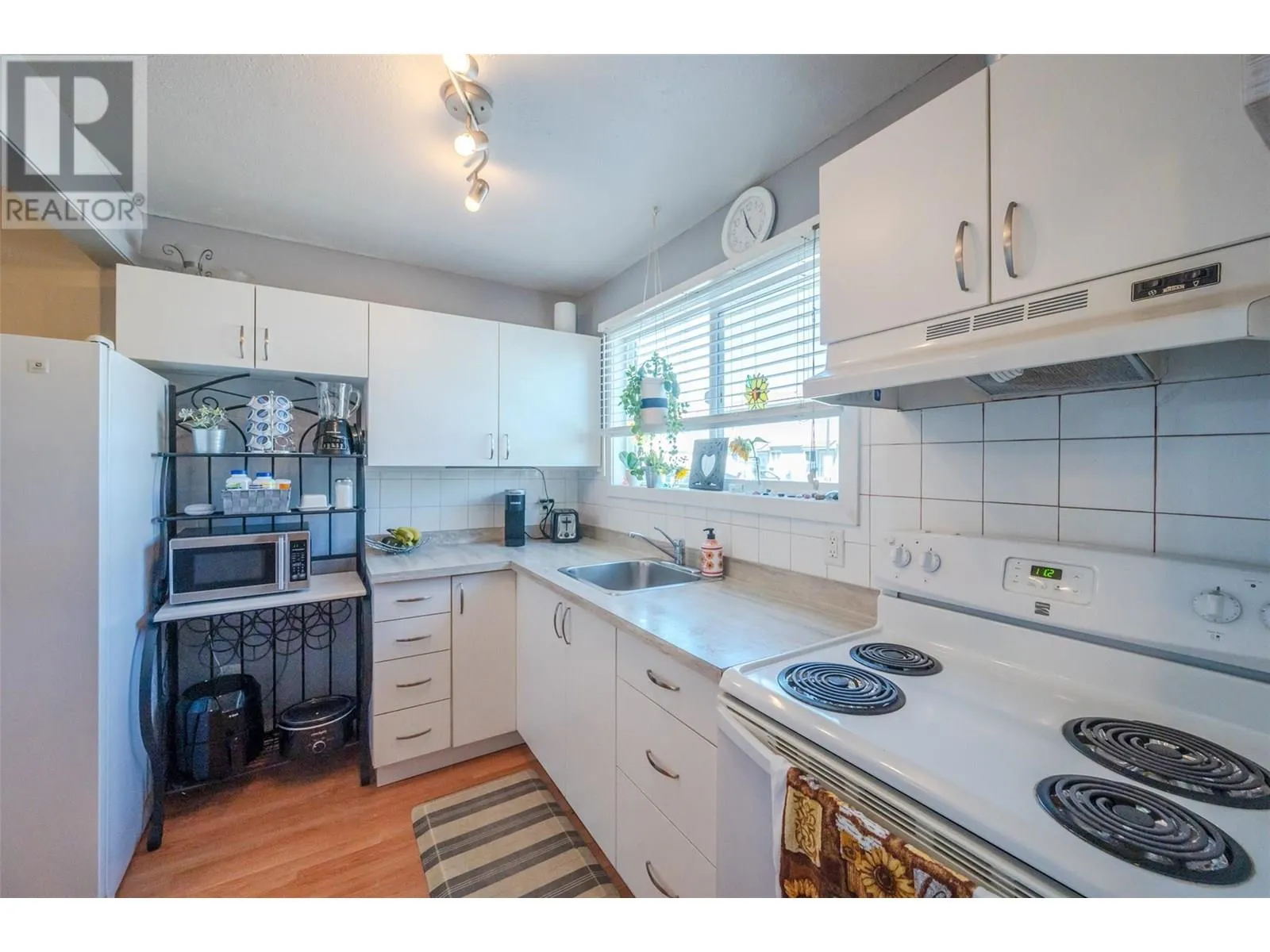 Just 5 minutes from Skaha Beach, this 3-bedroom, 2-bath home is part of the family-friendly, pet-welcoming Chateau Village community. The main floor offers a convenient 2-piece bath; features an open layout, with a fresh kitchen and built-in island that flows into the dining and living areas. Large south-facing patio doors fill the space with light and open to a newer built covered patio surrounded by cheerful sunflowers and easy-to-care-for garden bedsâperfect for enjoying warm summer evenings. Upstairs offers 3 comfortable bedrooms, a 4-piece bath, and plenty of storage. Parking is conveniently right out front, and the location is close to parks, schools, and shops. Monthly strata fee:$494.83. Find Yourself Living Here! (id:27476)
