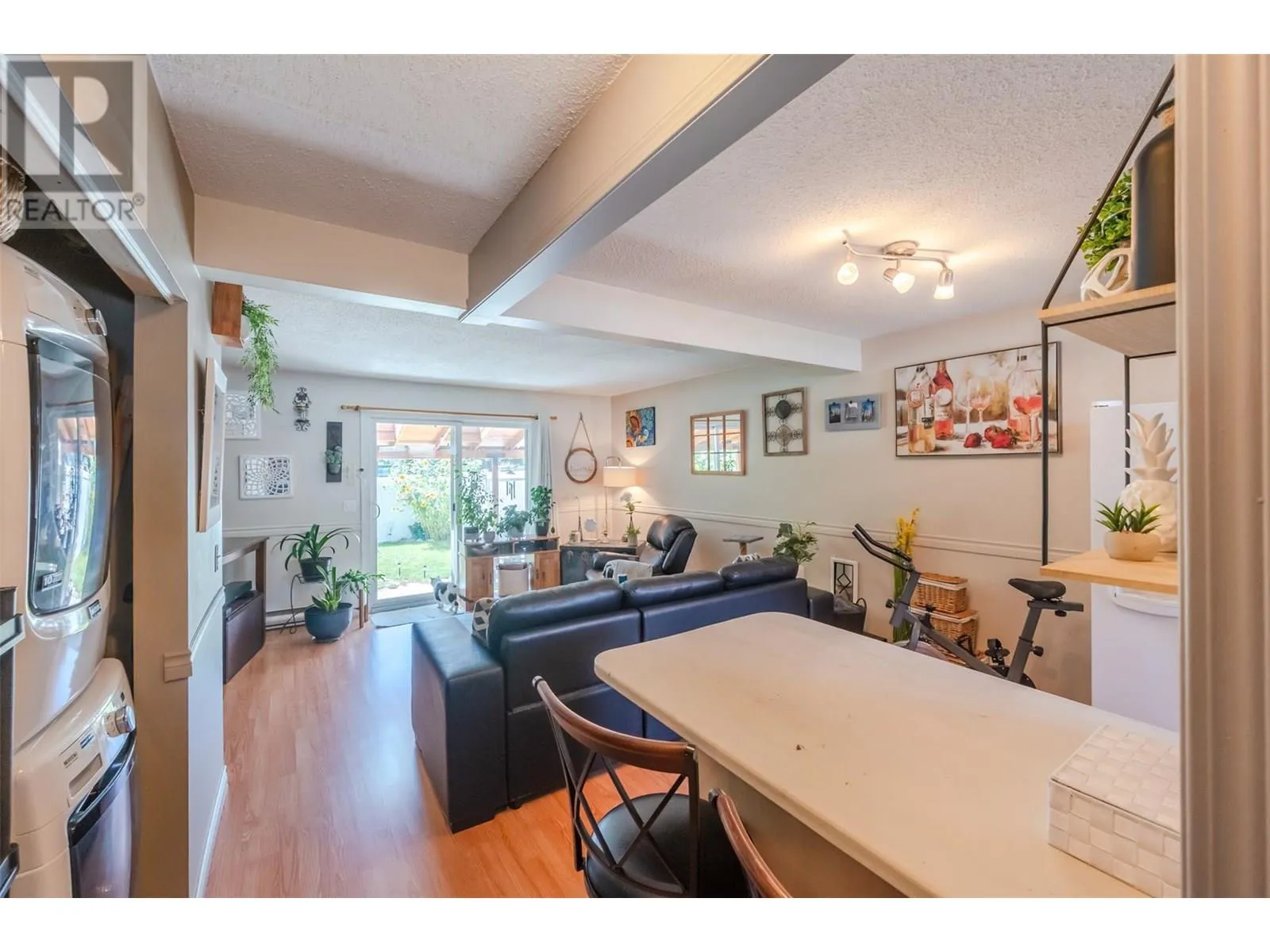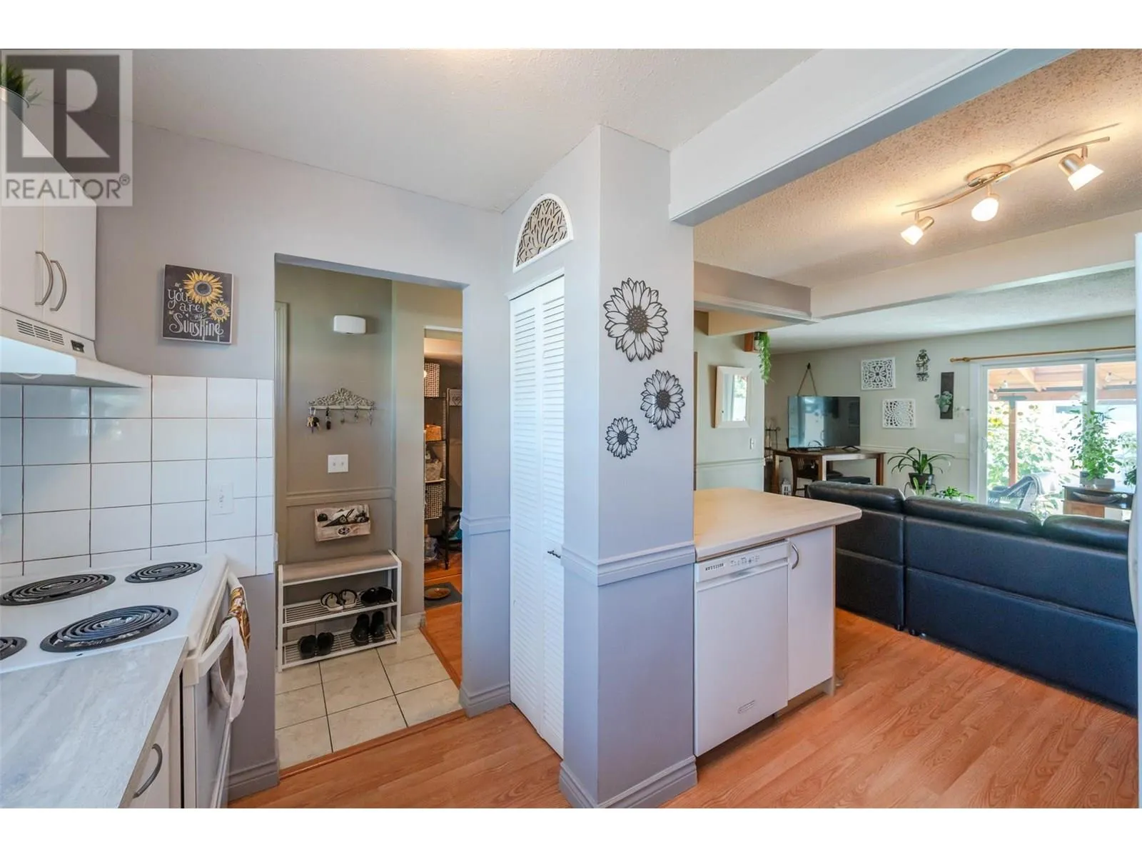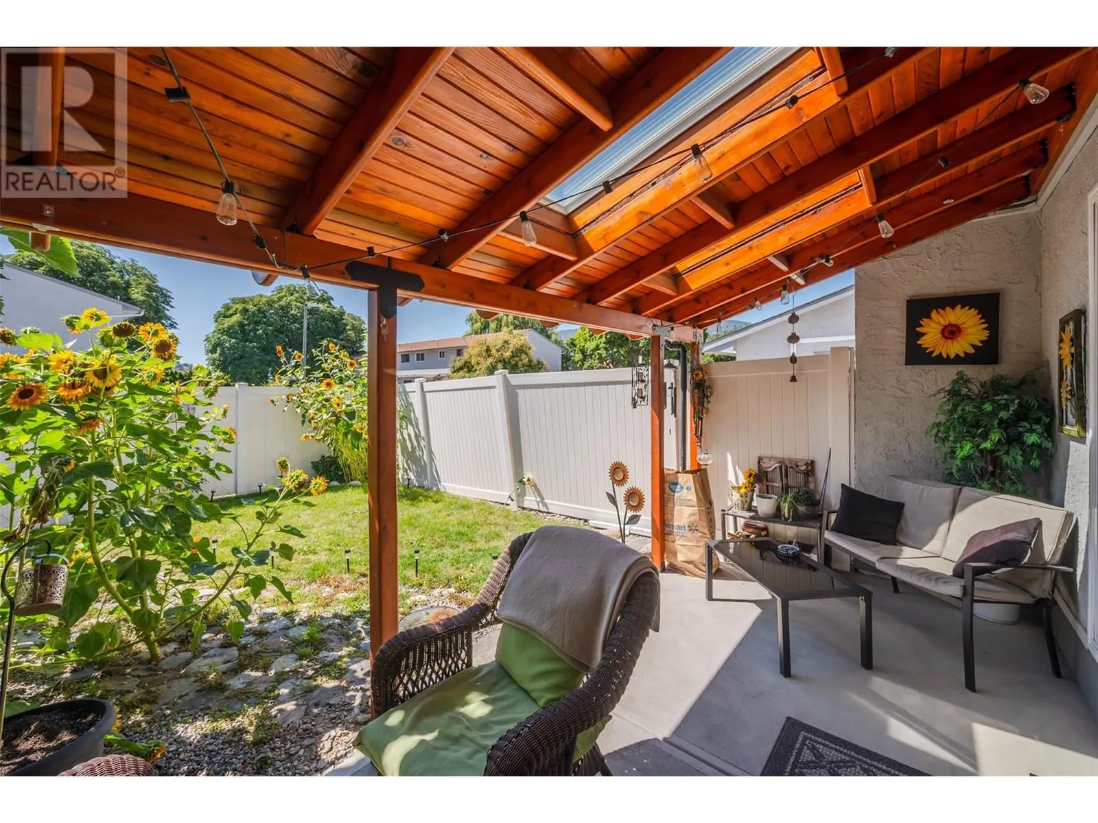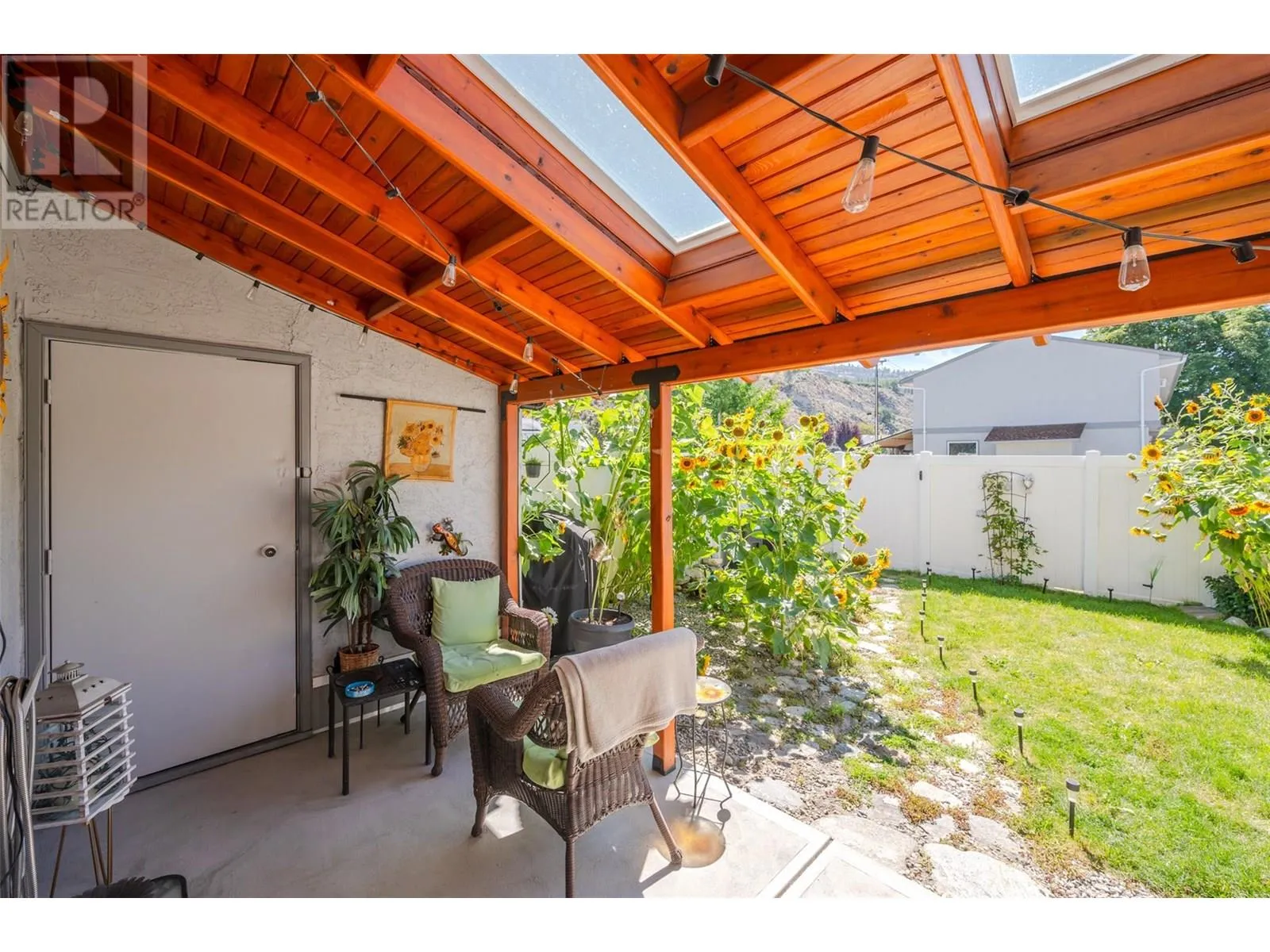 Just 5 minutes from Skaha Beach, this 3-bedroom, 2-bath home is part of the family-friendly, pet-welcoming Chateau Village community. The main floor offers a convenient 2-piece bath; features an open layout, with a fresh kitchen and built-in island that flows into the dining and living areas. Large south-facing patio doors fill the space with light and open to a newer built covered patio surrounded by cheerful sunflowers and easy-to-care-for garden bedsâperfect for enjoying warm summer evenings. Upstairs offers 3 comfortable bedrooms, a 4-piece bath, and plenty of storage. Parking is conveniently right out front, and the location is close to parks, schools, and shops. Monthly strata fee:$494.83. Find Yourself Living Here! (id:27476)