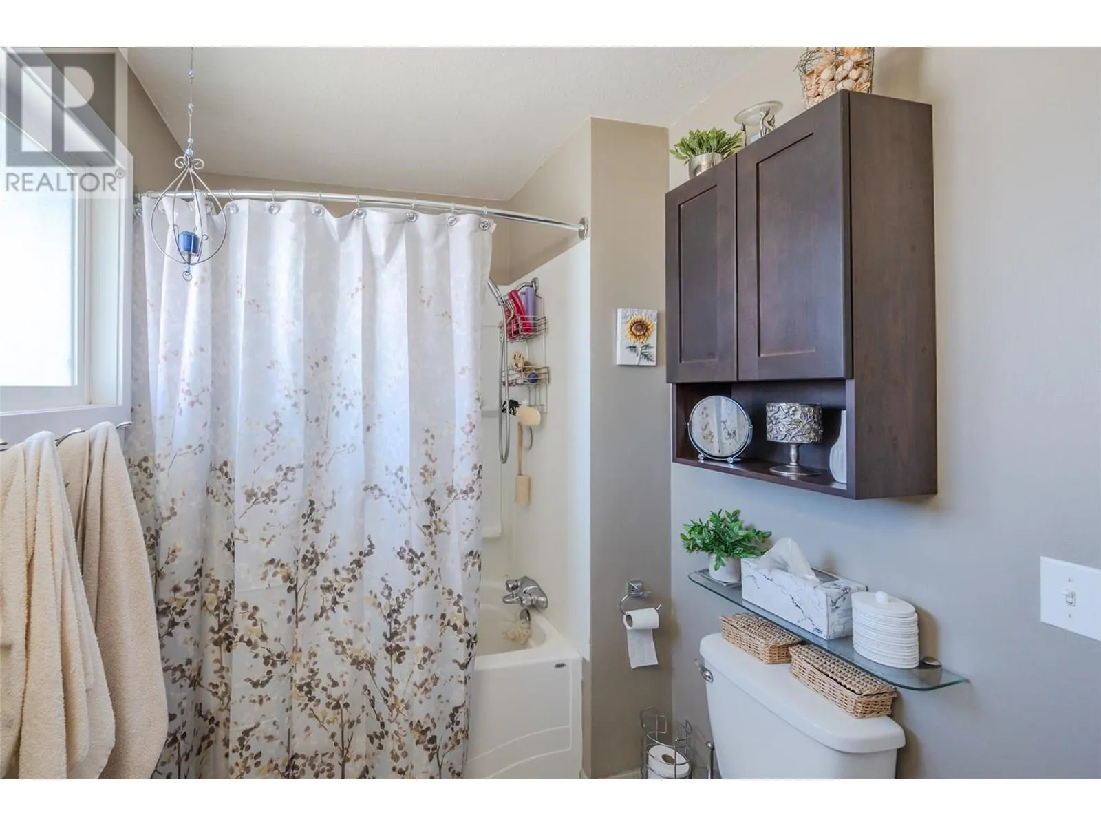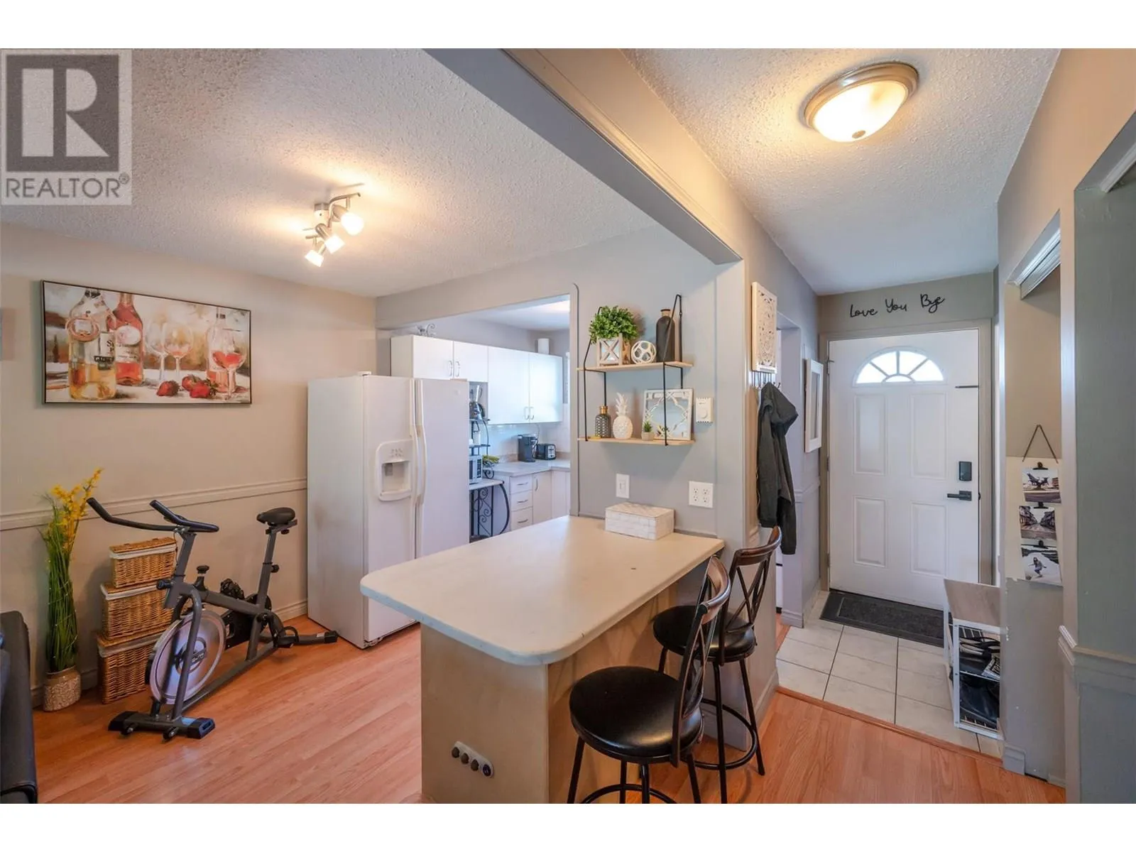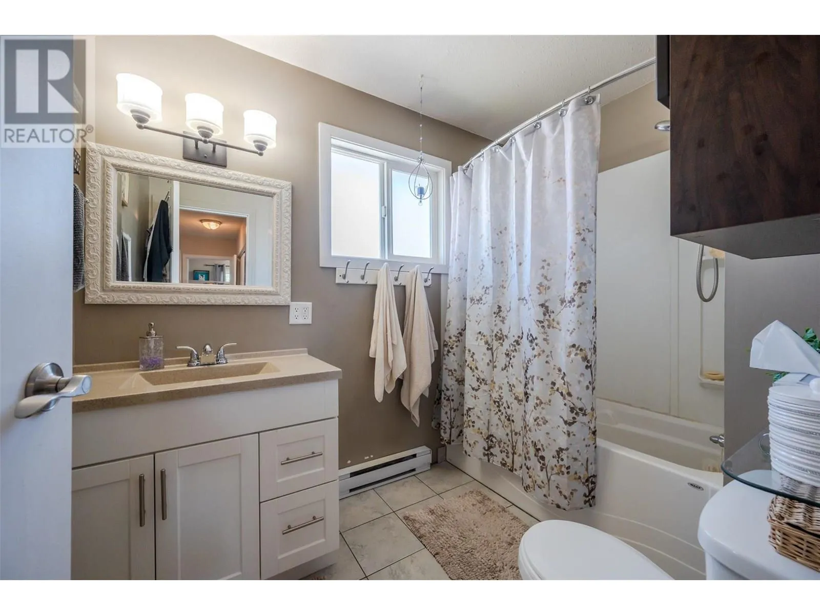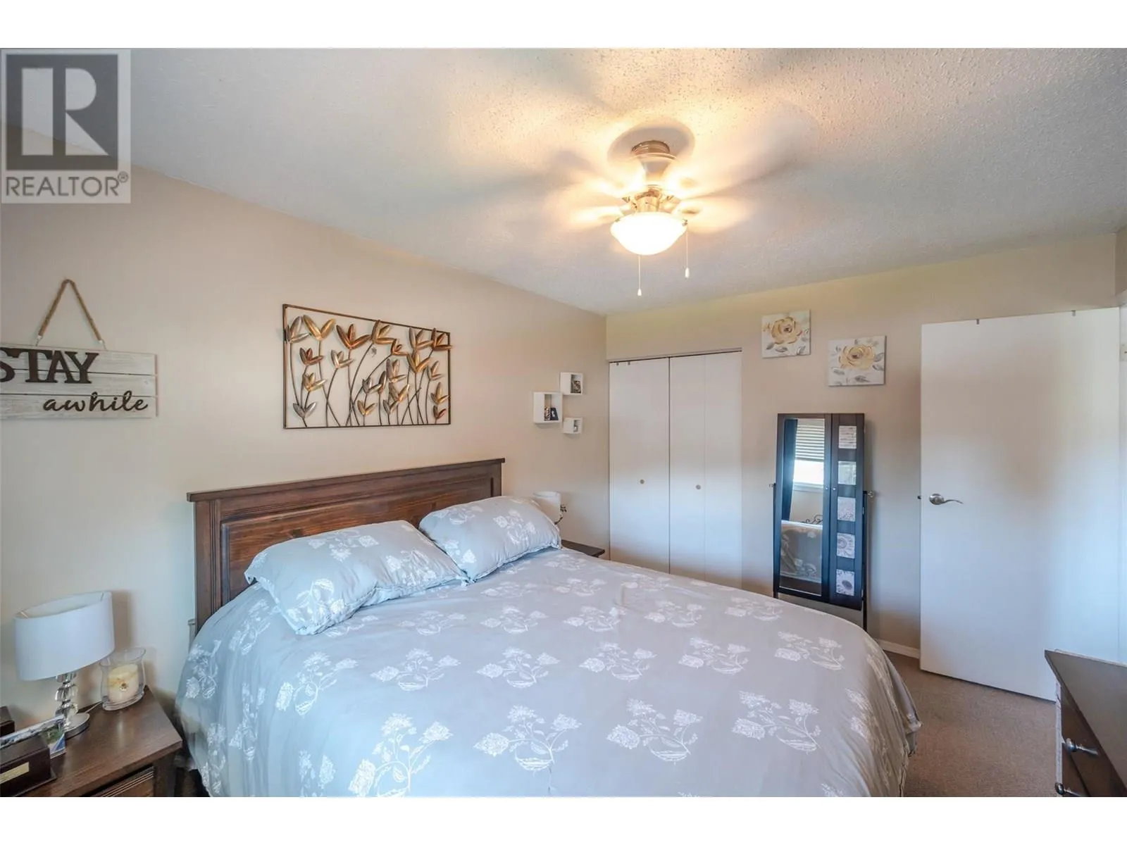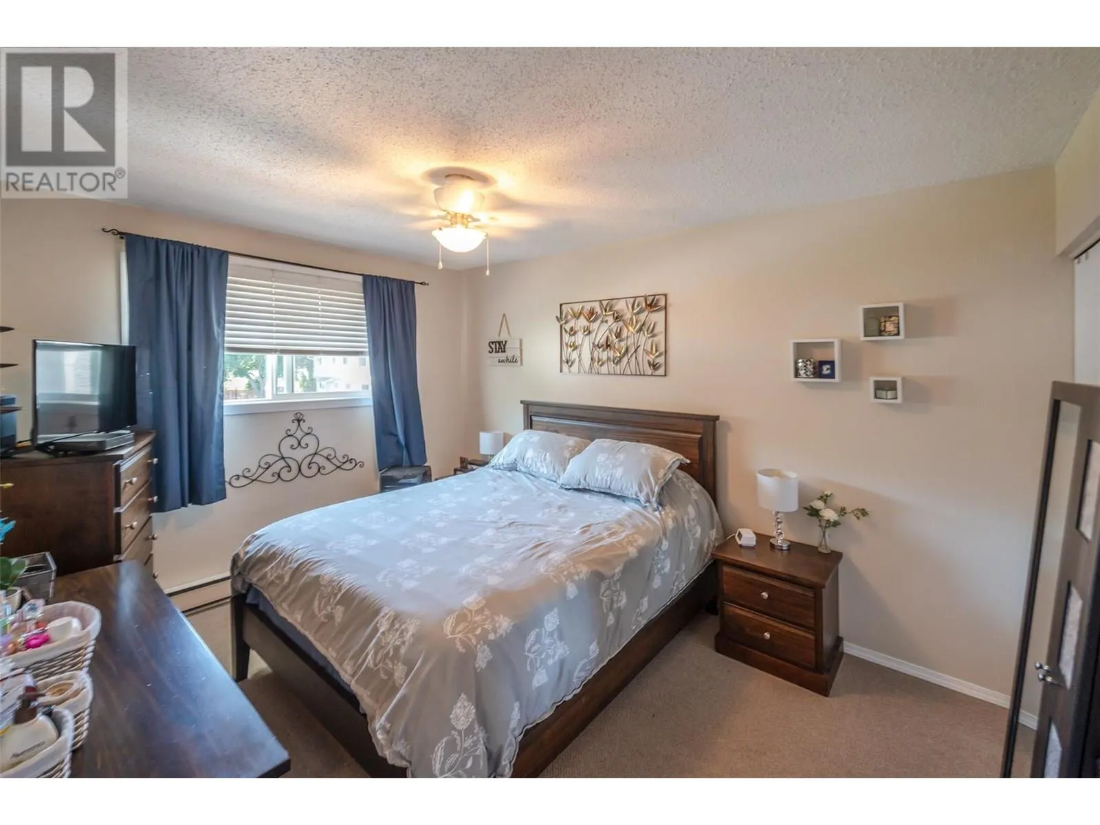 Just 5 minutes from Skaha Beach, this 3-bedroom, 2-bath home is part of the family-friendly, pet-welcoming Chateau Village community. The main floor offers a convenient 2-piece bath; features an open layout, with a fresh kitchen and built-in island that flows into the dining and living areas. Large south-facing patio doors fill the space with light and open to a newer built covered patio surrounded by cheerful sunflowers and easy-to-care-for garden bedsâperfect for enjoying warm summer evenings. Upstairs offers 3 comfortable bedrooms, a 4-piece bath, and plenty of storage. Parking is conveniently right out front, and the location is close to parks, schools, and shops. Monthly strata fee:$494.83. Find Yourself Living Here! (id:27476)