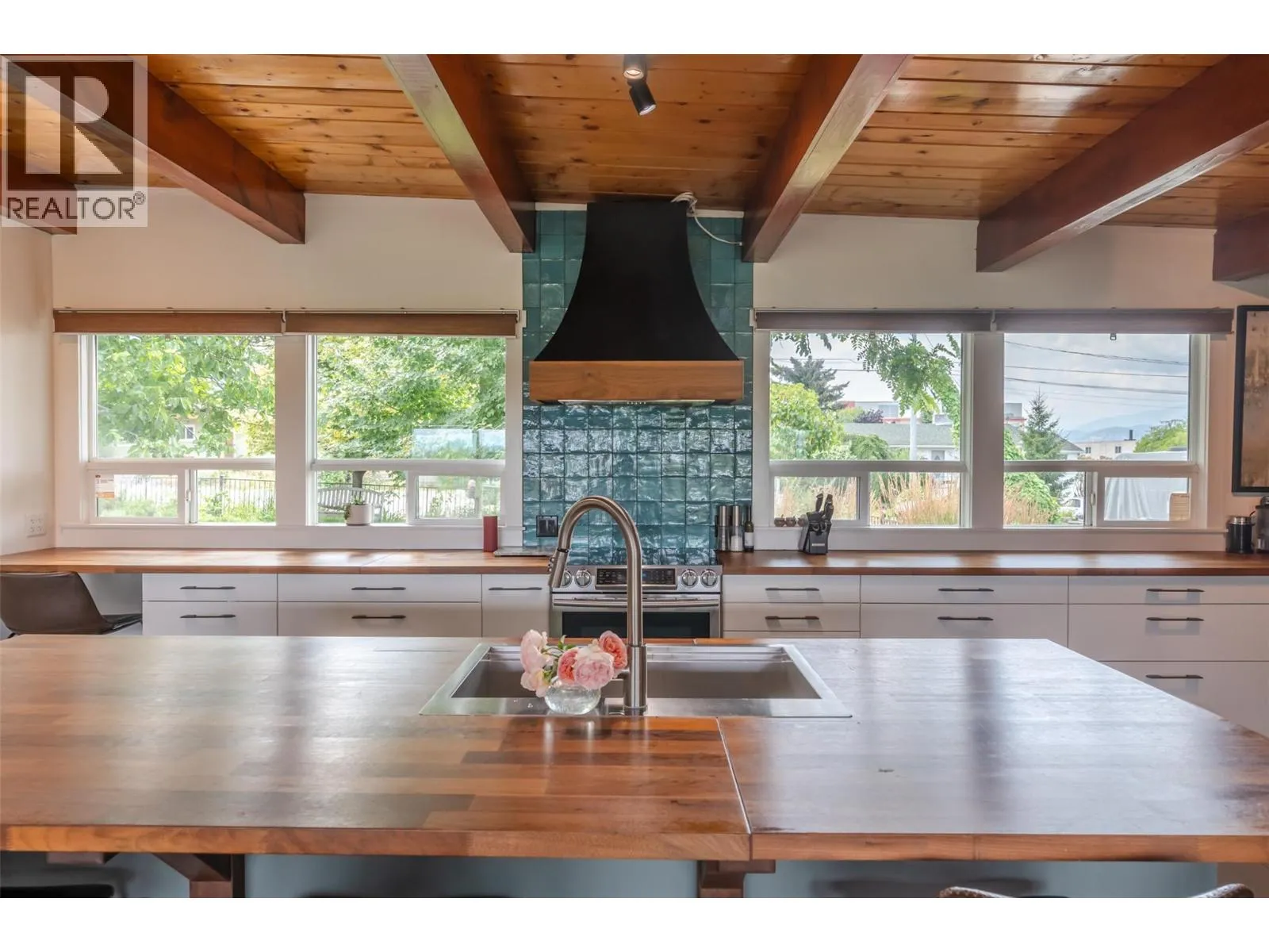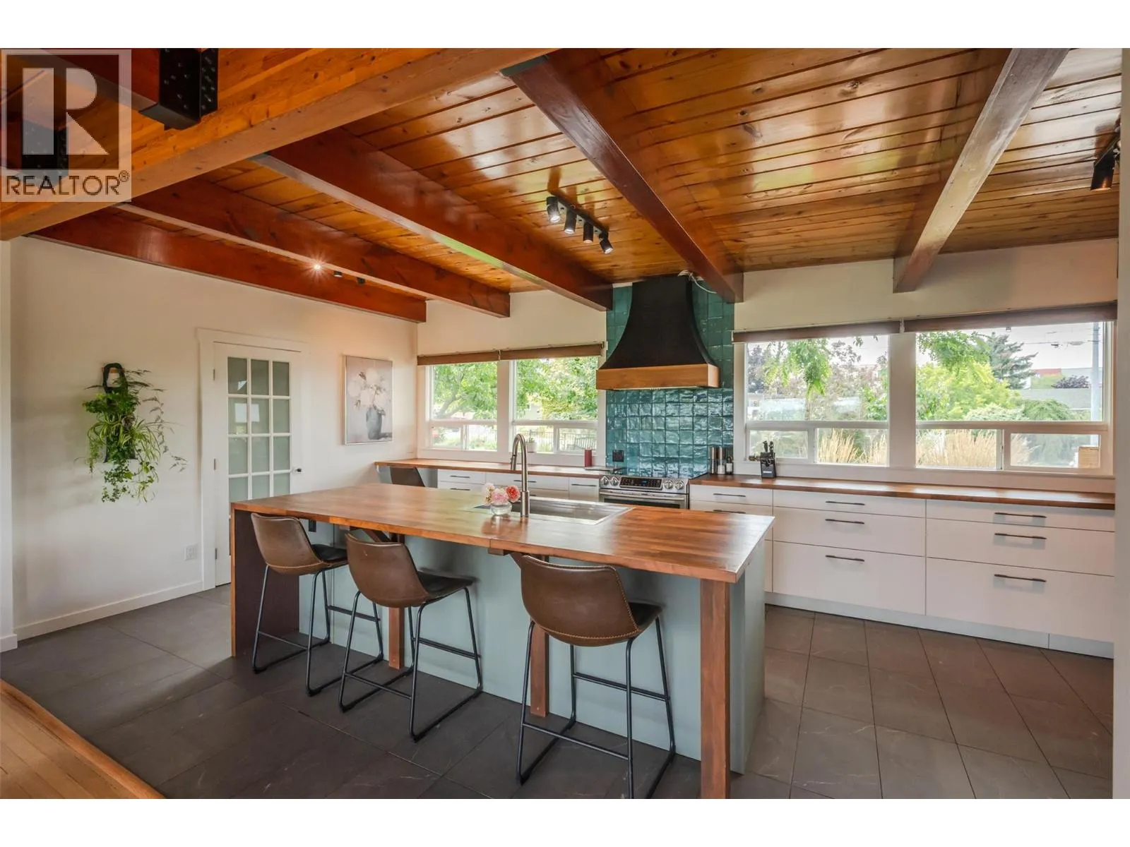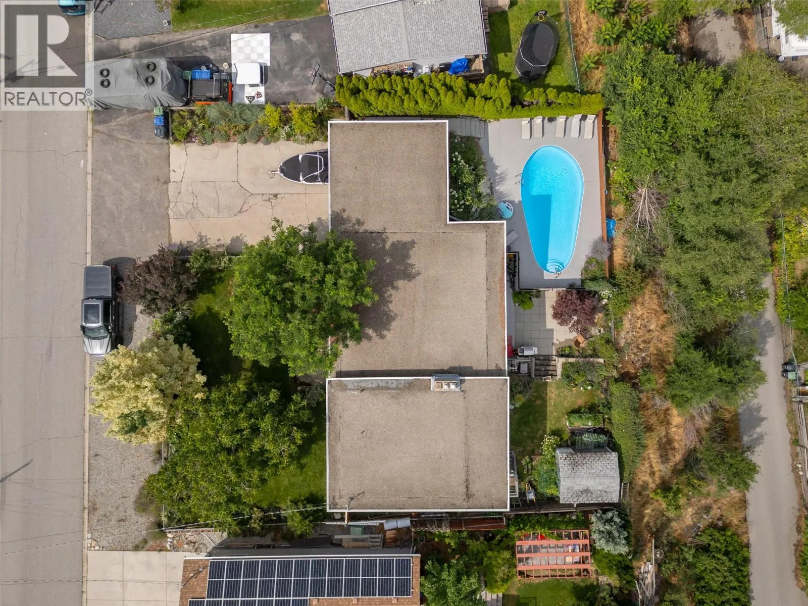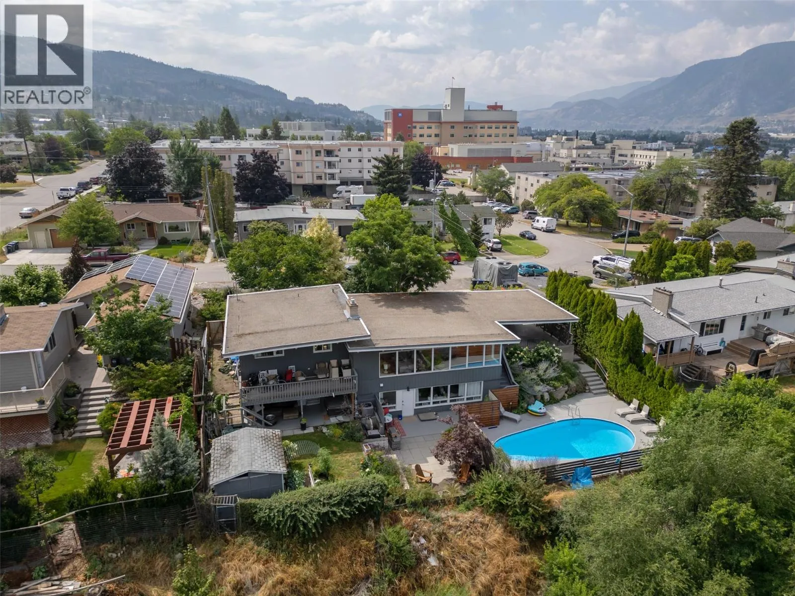This 5-bedroom, 3 bath home offers a legal suite, expansive views, inground pool, a central location and a large lot. Entering the main level, the architectural design takes advantage of the open concept, mid-century modern design and the gorgeous exposed beams. The full wall of windows in both the living/dining room as well as in the kitchen captures all of the natural light. Entertaining is a breeze as the guests gather around the oversized island in the beautifully updated kitchen. The main portion of the house offers 3 (or 4) bedrooms plus a den and two bathrooms, one of which is privately located off the large den. The legal suite is versatile with the option to use it as a studio suite or a studio suite plus an additional bedroom. Each level of this four-level split design has something to offer. The outside space is just as inviting as the inside. This lot is over a quarter of an acre with a fully fenced front yard, a private fenced pool area, a patio area for the suite, a deck off the living area and parking for 6-8 vehicles on the property. Located walking distance to Penticton Regional Hospital. This property will accommodate multigenerational living or allow for a steady income in the legal suite. Check out the virtual tour online and call your preferred agent to arrange viewing. (id:27476)
