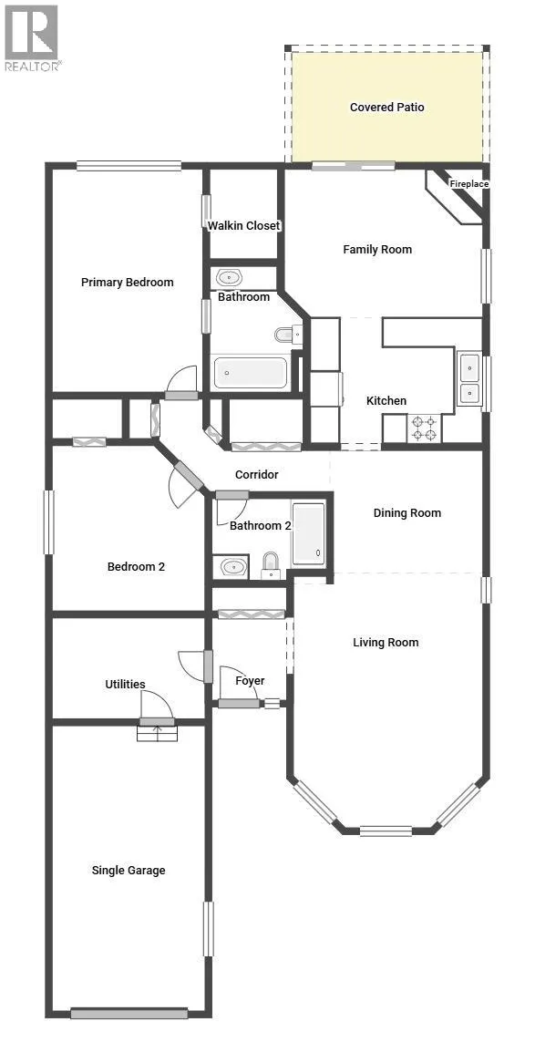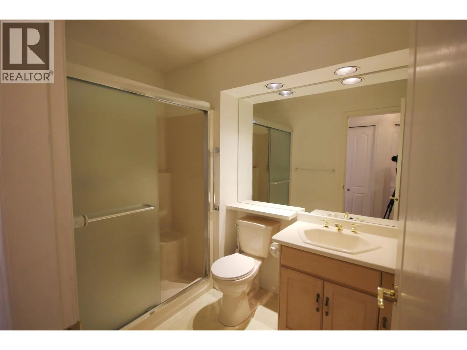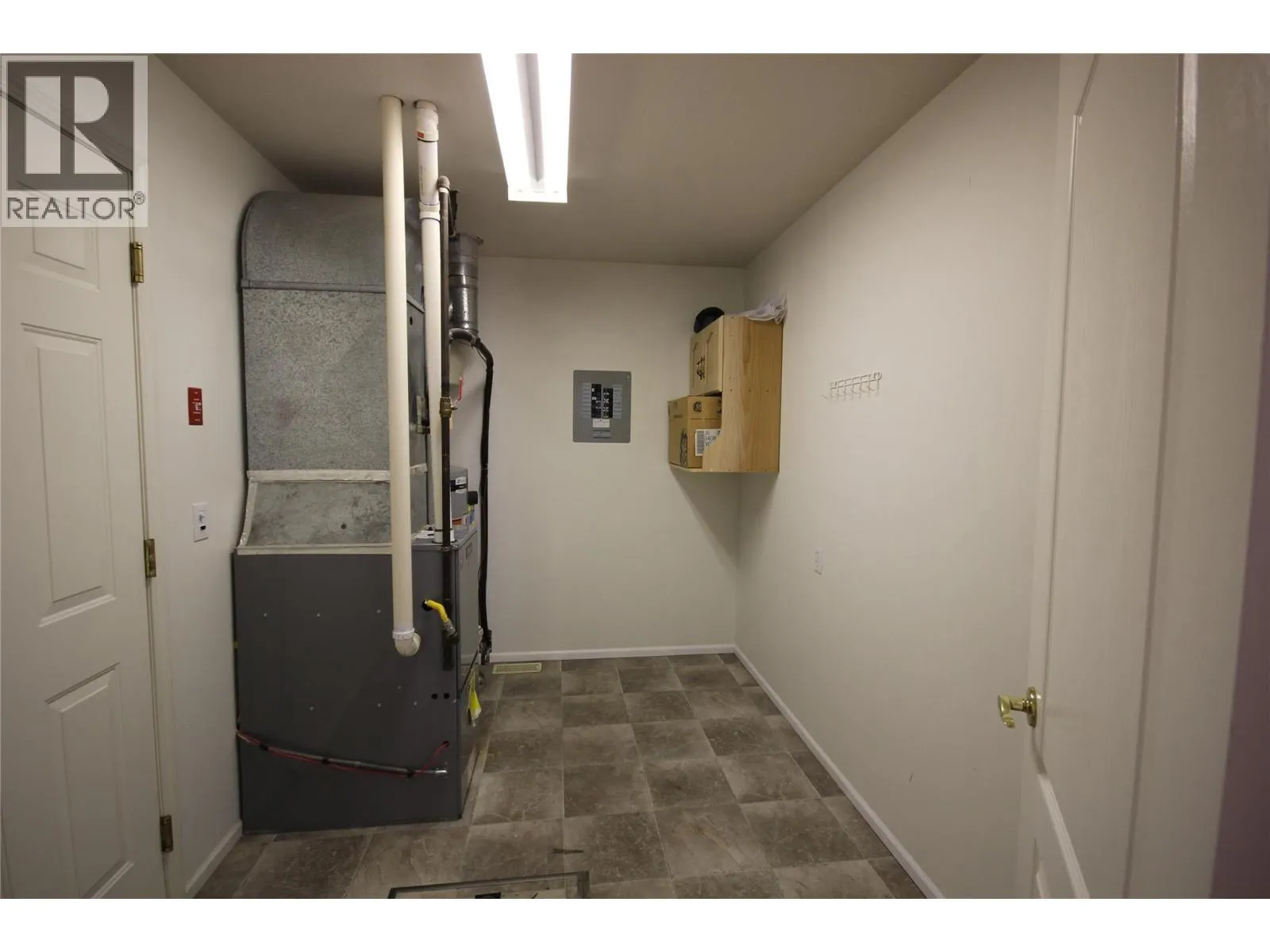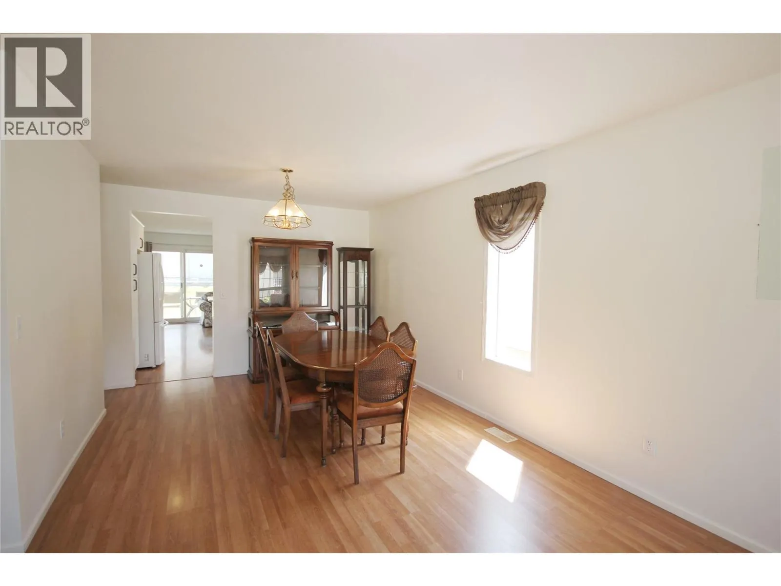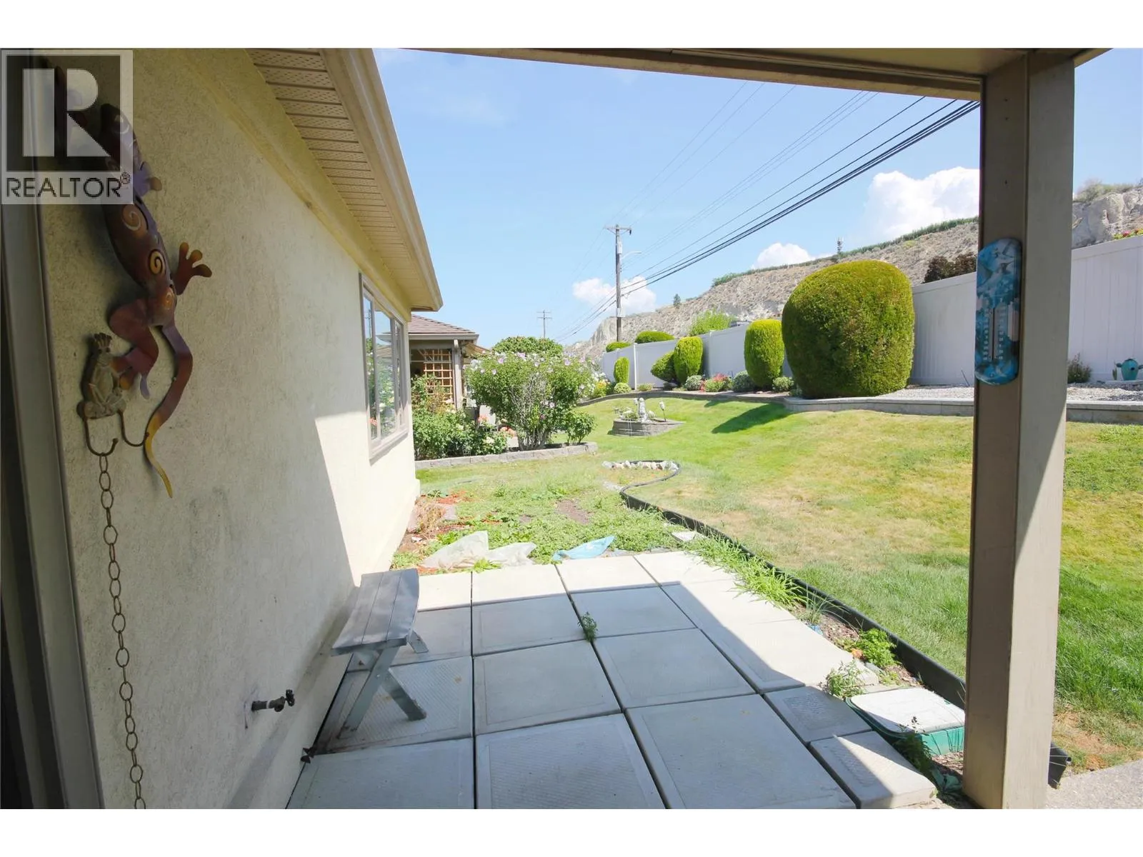 Welcome to prestigious Sandbridge, a sought-after gated community featuring stunning waterways, lush landscaping, and a charming clubhouse with a hot tub and pool. This 1,374 sq ft rancher is move-in ready. Enter through the foyer to an open living and dining area with easy-care laminate floors, abundant natural light, and ample space for your furniture, creating a warm, inviting atmosphere. Enjoy tranquil views of foliage and waterway from your living room window whenever you wish. An adjacent door leads to a spacious utility room with extra storage and garage access. The home boasts a generous primary suite with a walk-in closet and a 4-piece ensuite, along with a guest bedroom and a main bathroom with a walk-in shower. The renovated kitchen features modern cabinets, white appliances, and room for three at the counter. A cozy family room with a gas fireplace provides the perfect space for relaxing evenings. The family room opens to a private, east-facing covered back patio and yardâideal for outdoor entertaining. Conveniently located near shopping, trails, parks, the beach, pubs, Skaha Lake, and the seniors center, all within a friendly, well-managed community. (id:27476)