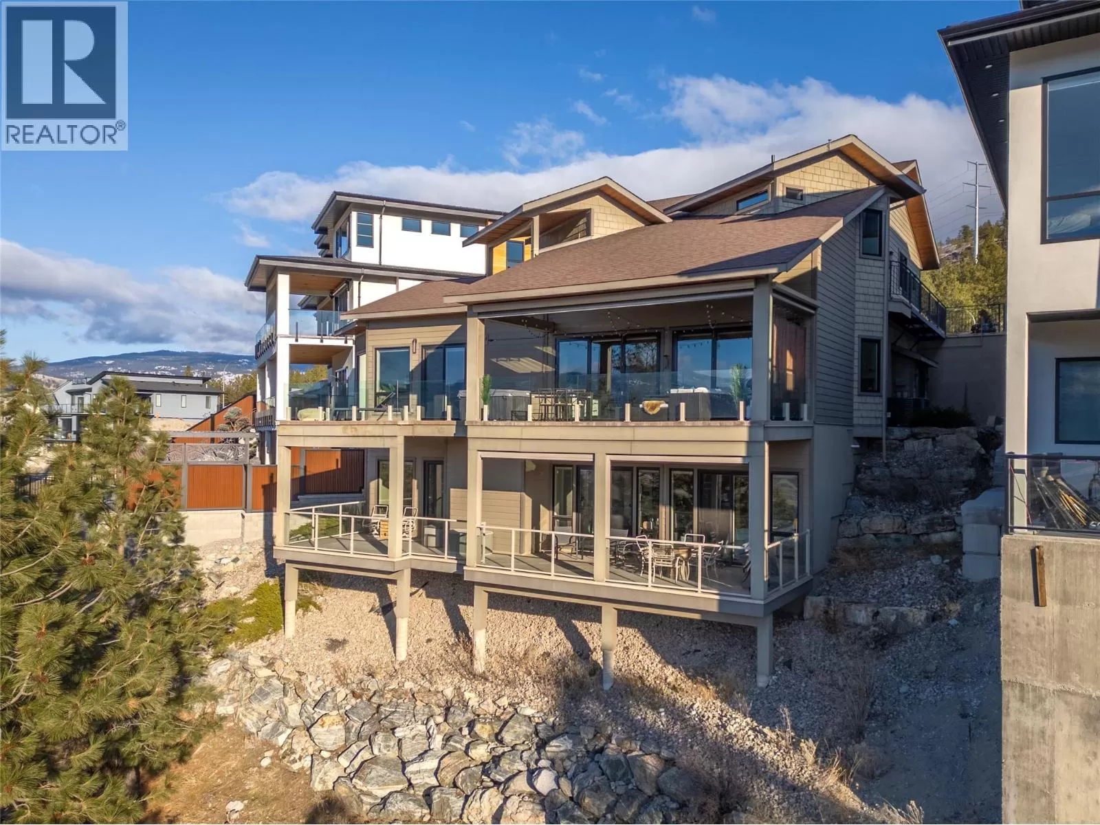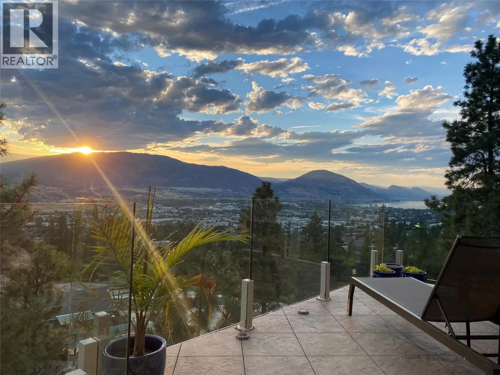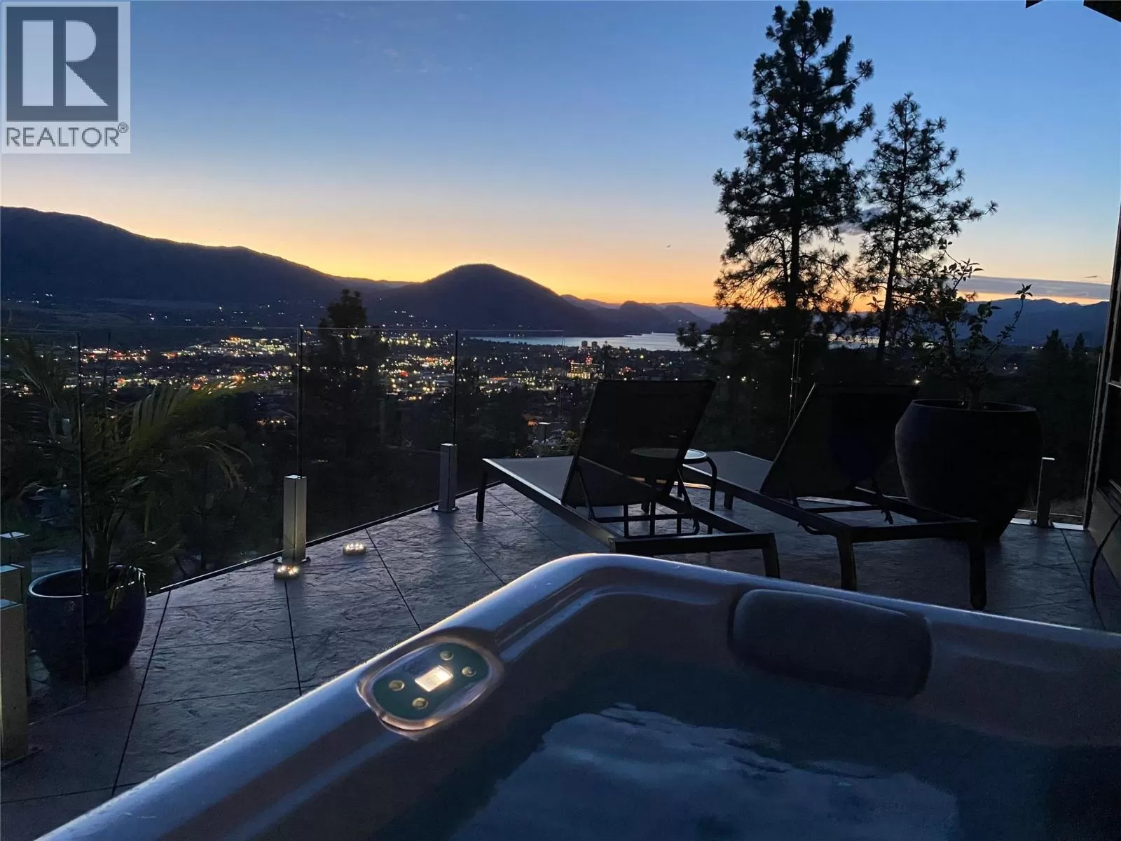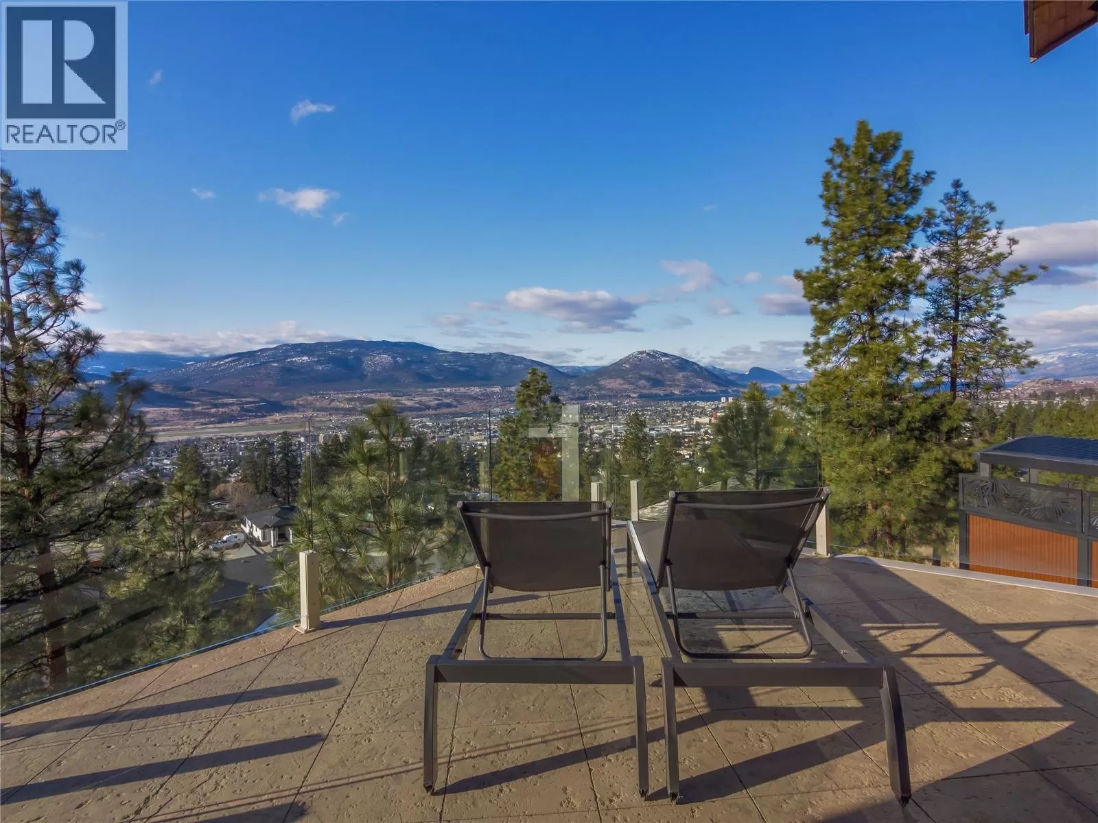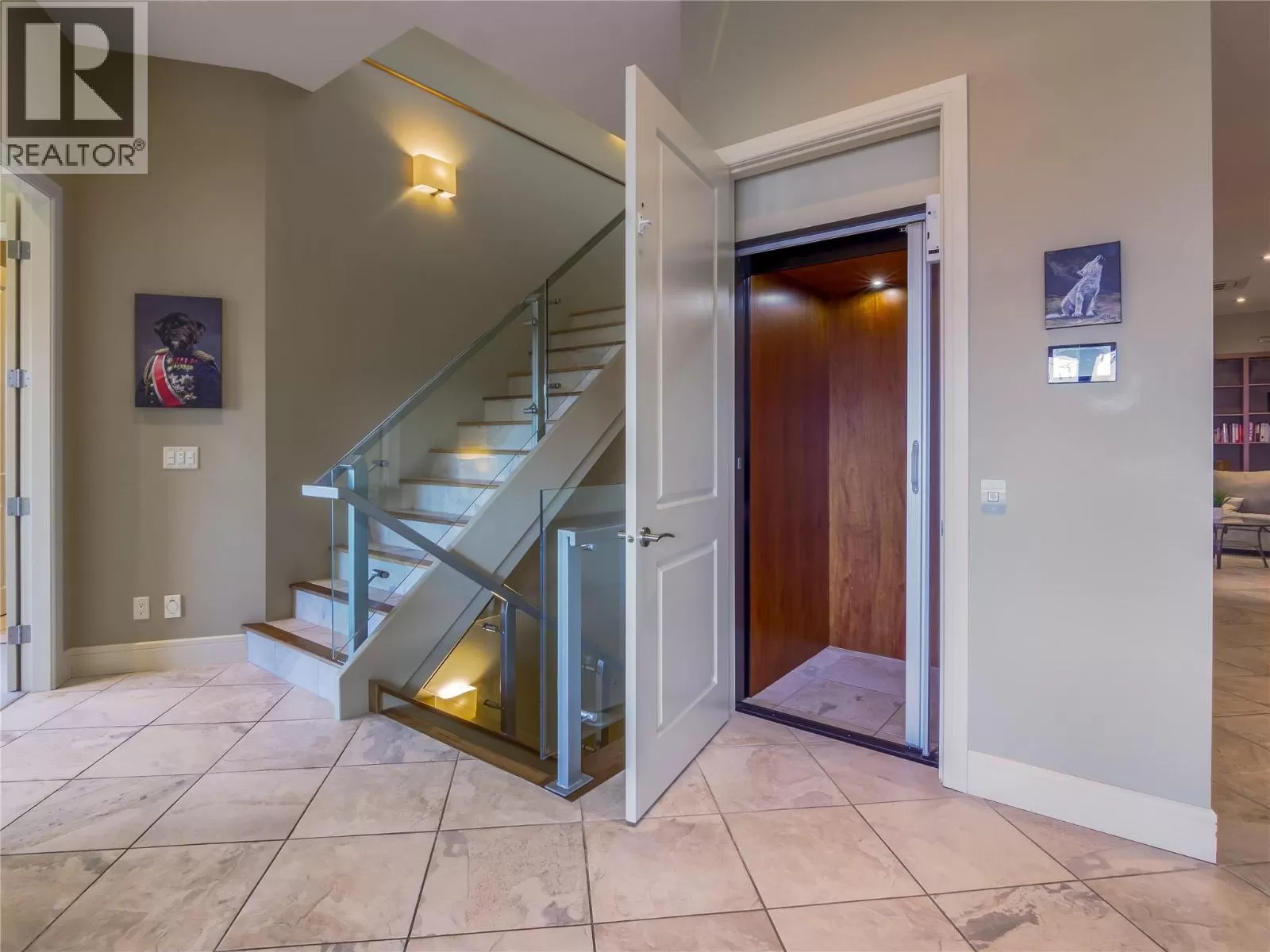 CLICK VIDEO. Welcome to an unparalleled oasis of luxury in the highly sought out Wiltse area where elegance meets breathtaking natural beauty. This extraordinary lakeview estate spans over 3800 square feet of meticulously crafted living space. The heart of the home is the expansive living room, adorned with beautiful accordion doors that lead you onto the deck, seamlessly expanding the space and blending the indoors with the breathtaking outdoors that overlook the mountains and both Okanagan Lake and Skaha Lake. Wheelchair friendly and has a RV hookup. Enjoy the library that includes built-in bookshelves and a wine rack. The gourmet kitchen, featuring granite countertops, dual built-in ovens, a sleek gas stove, and a pantry with custom pull-out drawers â a culinary masterpiece designed for both function and lavishness. This home features a private elevator that stops on all three floors. Indulge in the ultimate leisure experience in your theatre room, or rejuvenate in the luxurious steam room, sauna, or hot tub. With heated floors throughout, comfort meets luxury in every corner of this home. Even daily routines become a pleasure in the thoughtfully designed laundry room. Each of the four spacious bedrooms offers a serene sanctuary, while six appointed bathrooms provide a touch of luxury at every turn. The finished basement is perfect for guests, in-laws or a nanny suite with itâs own bedroom, bathroom and kitchenette. (id:27476)