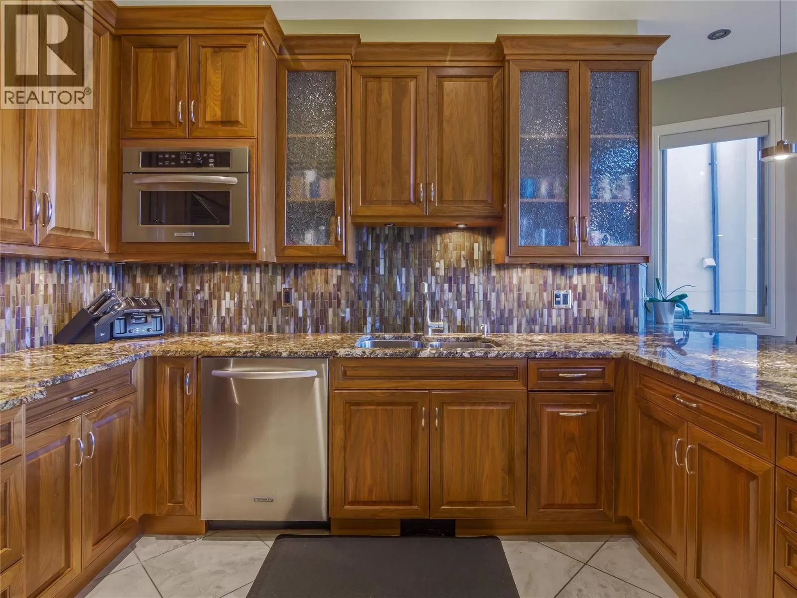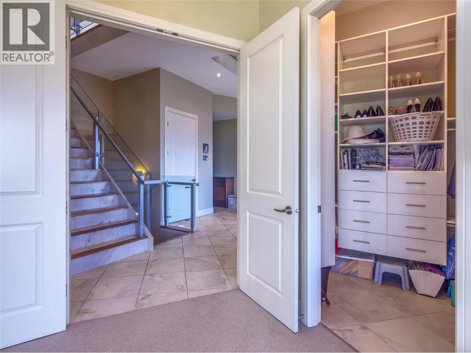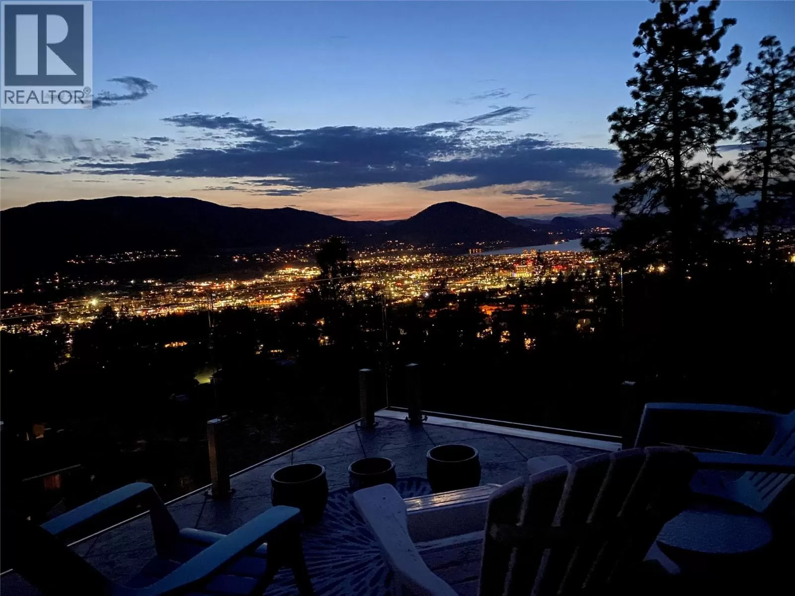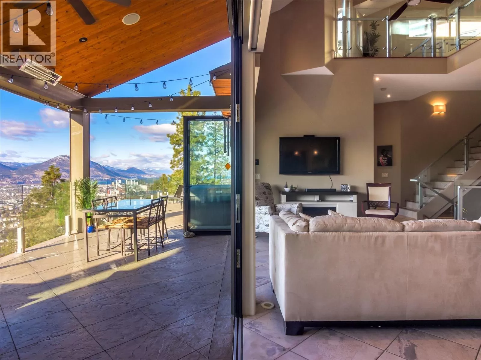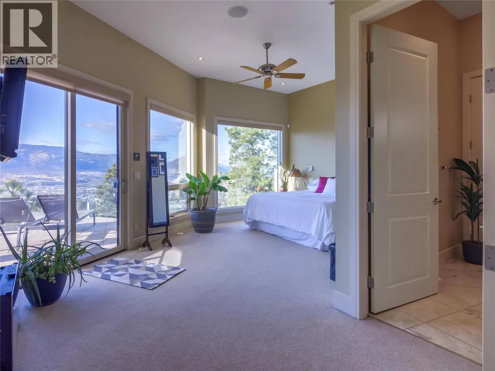 CLICK VIDEO. Welcome to an unparalleled oasis of luxury in the highly sought out Wiltse area where elegance meets breathtaking natural beauty. This extraordinary lakeview estate spans over 3800 square feet of meticulously crafted living space. The heart of the home is the expansive living room, adorned with beautiful accordion doors that lead you onto the deck, seamlessly expanding the space and blending the indoors with the breathtaking outdoors that overlook the mountains and both Okanagan Lake and Skaha Lake. Wheelchair friendly and has a RV hookup. Enjoy the library that includes built-in bookshelves and a wine rack. The gourmet kitchen, featuring granite countertops, dual built-in ovens, a sleek gas stove, and a pantry with custom pull-out drawers â a culinary masterpiece designed for both function and lavishness. This home features a private elevator that stops on all three floors. Indulge in the ultimate leisure experience in your theatre room, or rejuvenate in the luxurious steam room, sauna, or hot tub. With heated floors throughout, comfort meets luxury in every corner of this home. Even daily routines become a pleasure in the thoughtfully designed laundry room. Each of the four spacious bedrooms offers a serene sanctuary, while six appointed bathrooms provide a touch of luxury at every turn. The finished basement is perfect for guests, in-laws or a nanny suite with itâs own bedroom, bathroom and kitchenette. (id:27476)