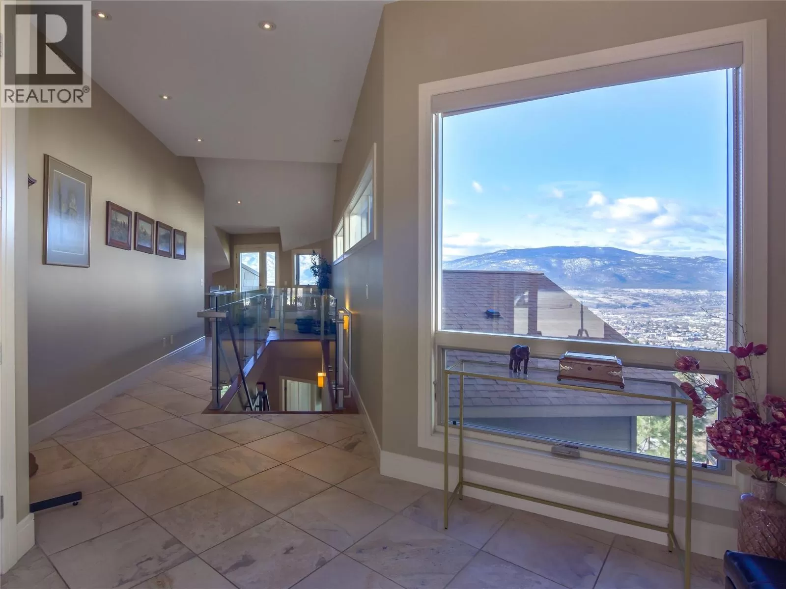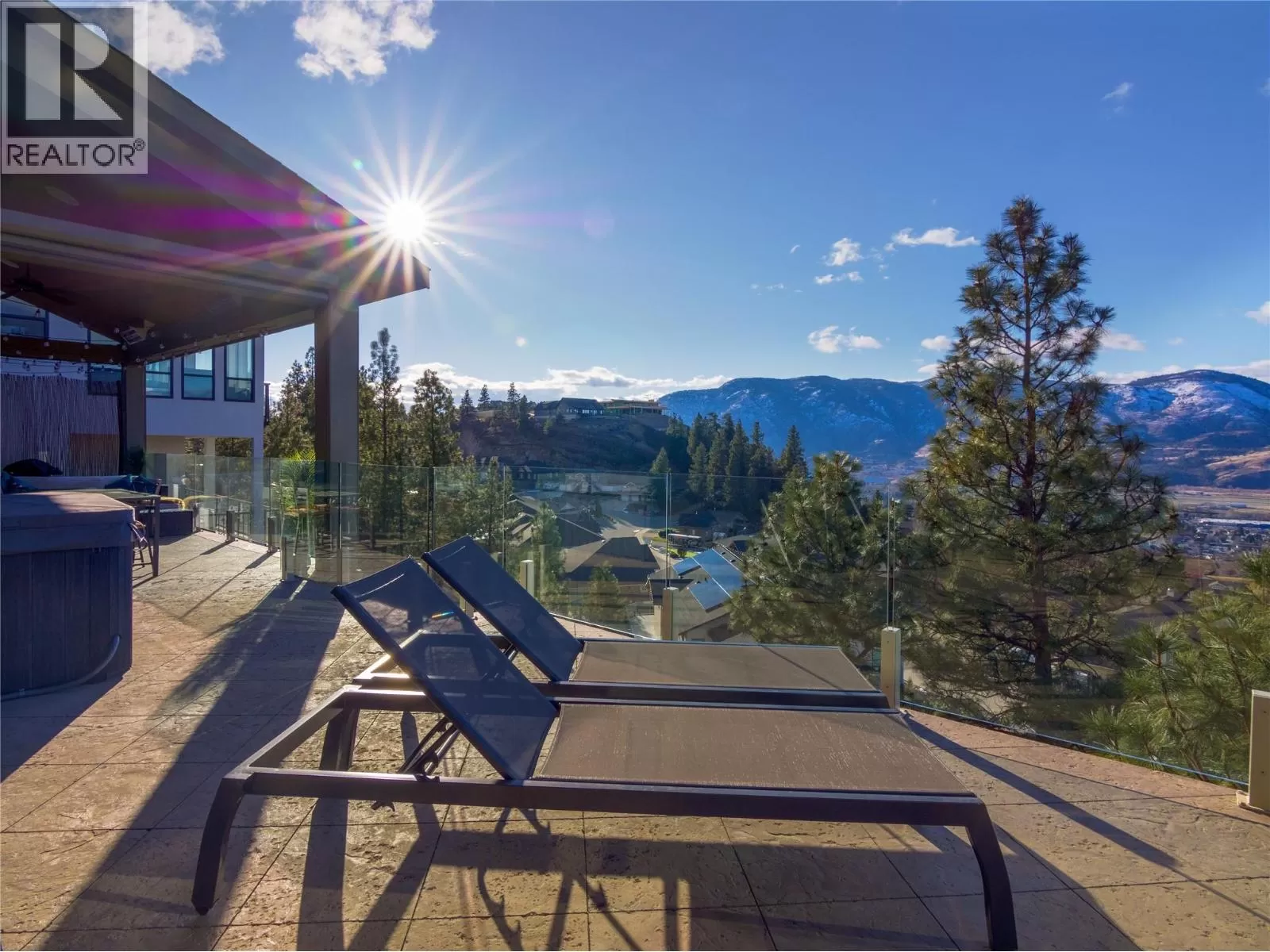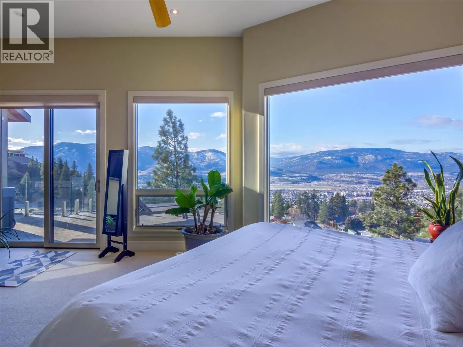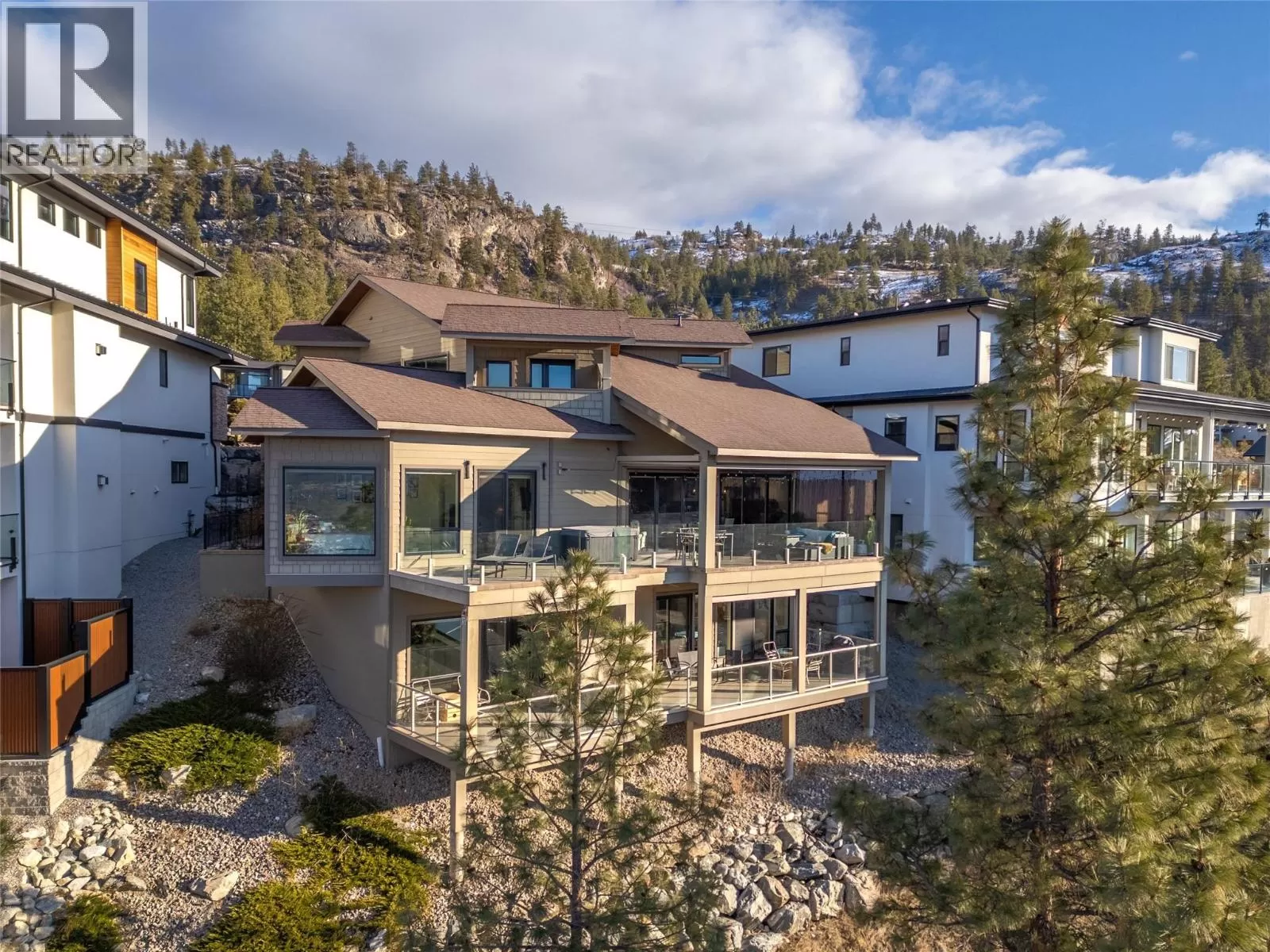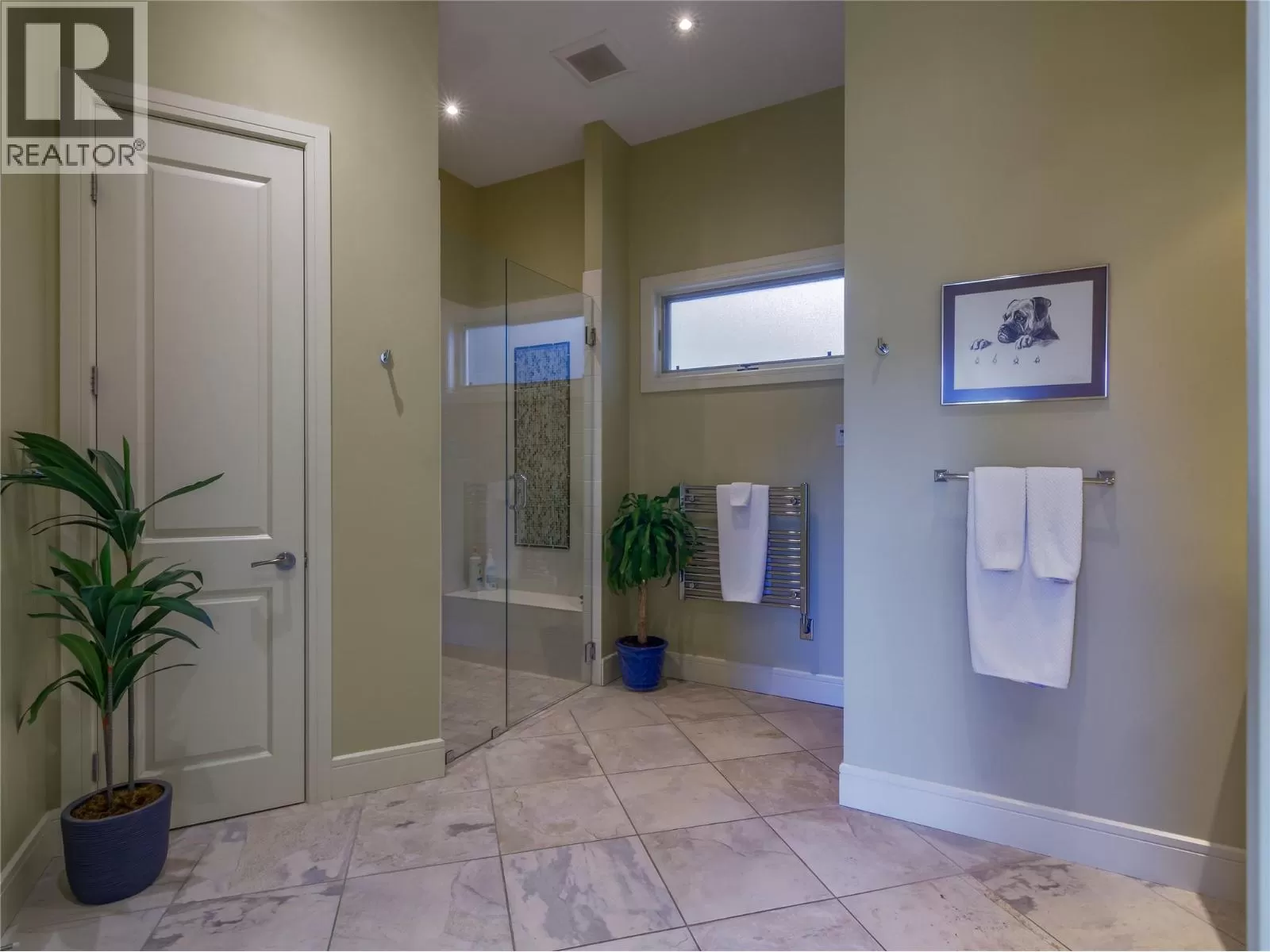 CLICK VIDEO. Welcome to an unparalleled oasis of luxury in the highly sought out Wiltse area where elegance meets breathtaking natural beauty. This extraordinary lakeview estate spans over 3800 square feet of meticulously crafted living space. The heart of the home is the expansive living room, adorned with beautiful accordion doors that lead you onto the deck, seamlessly expanding the space and blending the indoors with the breathtaking outdoors that overlook the mountains and both Okanagan Lake and Skaha Lake. Wheelchair friendly and has a RV hookup. Enjoy the library that includes built-in bookshelves and a wine rack. The gourmet kitchen, featuring granite countertops, dual built-in ovens, a sleek gas stove, and a pantry with custom pull-out drawers â a culinary masterpiece designed for both function and lavishness. This home features a private elevator that stops on all three floors. Indulge in the ultimate leisure experience in your theatre room, or rejuvenate in the luxurious steam room, sauna, or hot tub. With heated floors throughout, comfort meets luxury in every corner of this home. Even daily routines become a pleasure in the thoughtfully designed laundry room. Each of the four spacious bedrooms offers a serene sanctuary, while six appointed bathrooms provide a touch of luxury at every turn. The finished basement is perfect for guests, in-laws or a nanny suite with itâs own bedroom, bathroom and kitchenette. (id:27476)