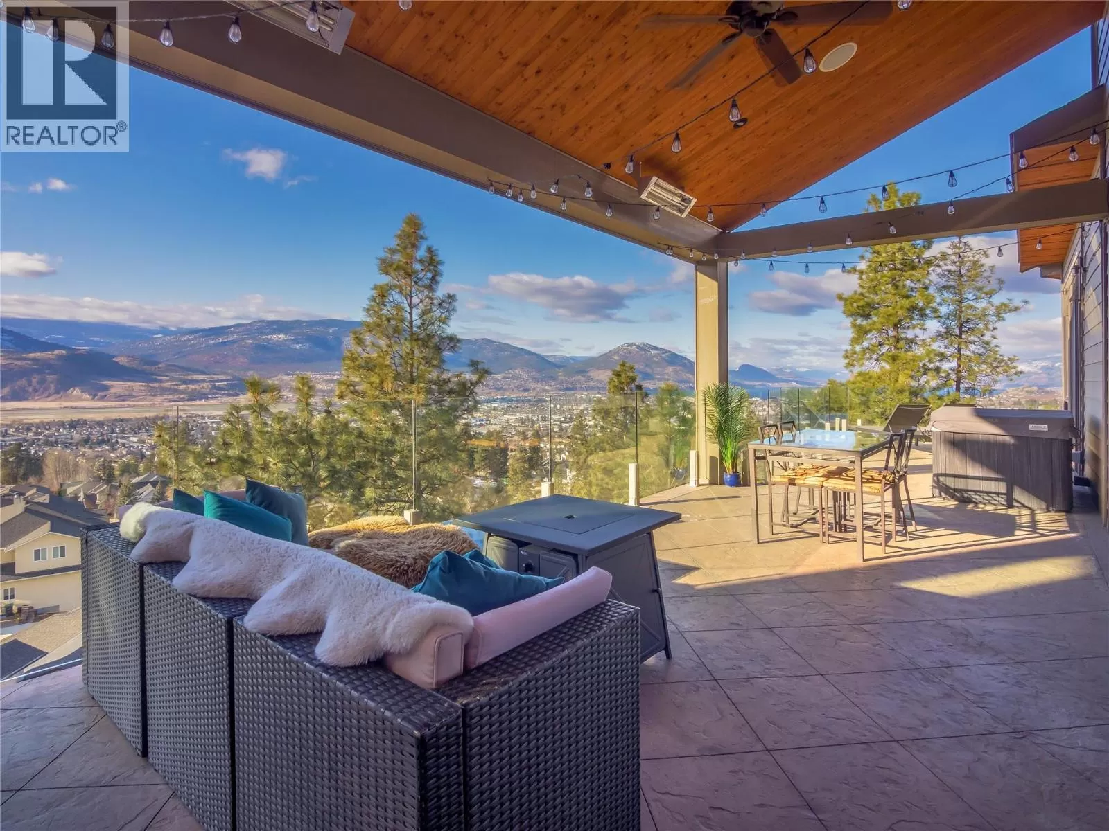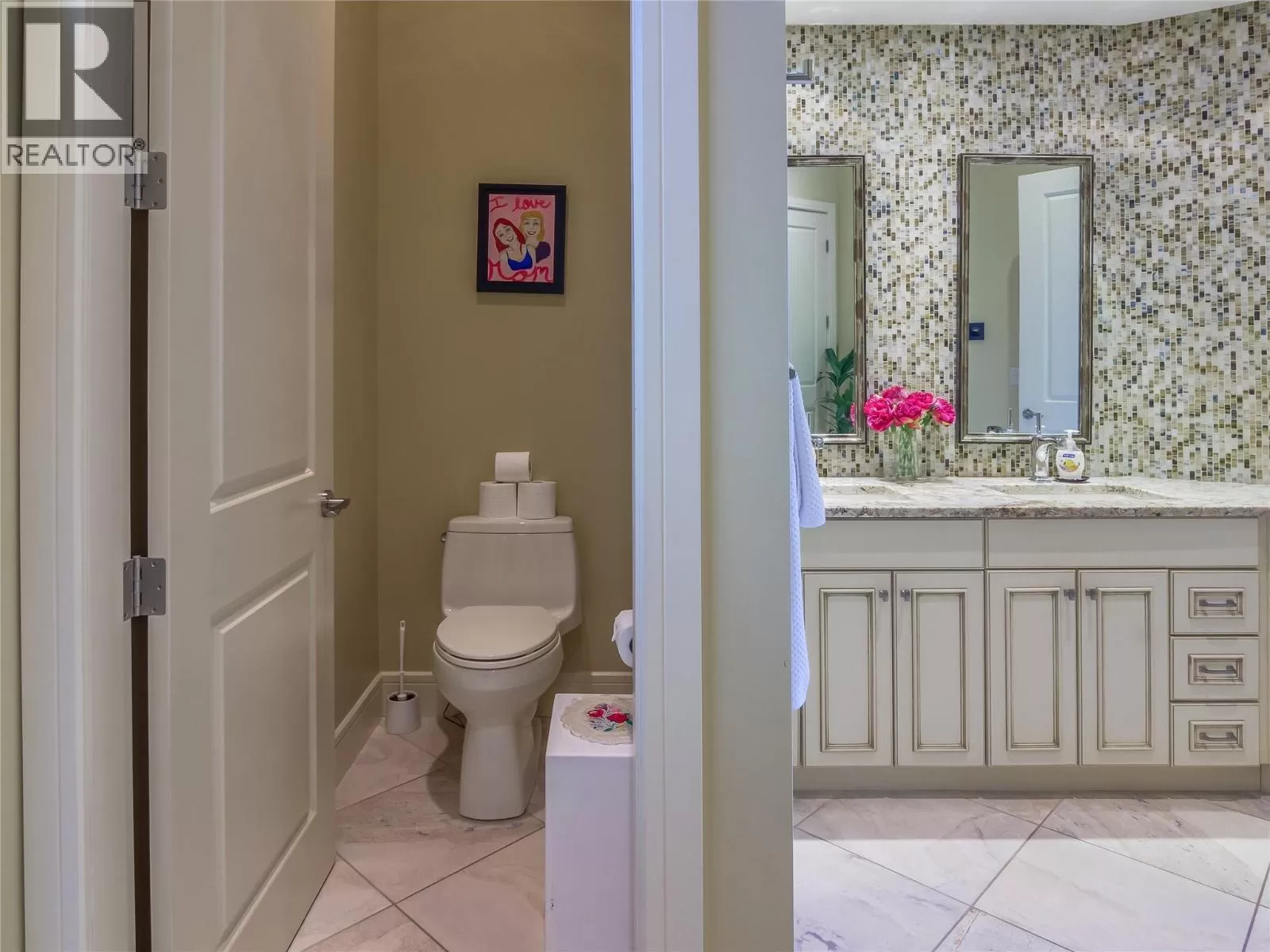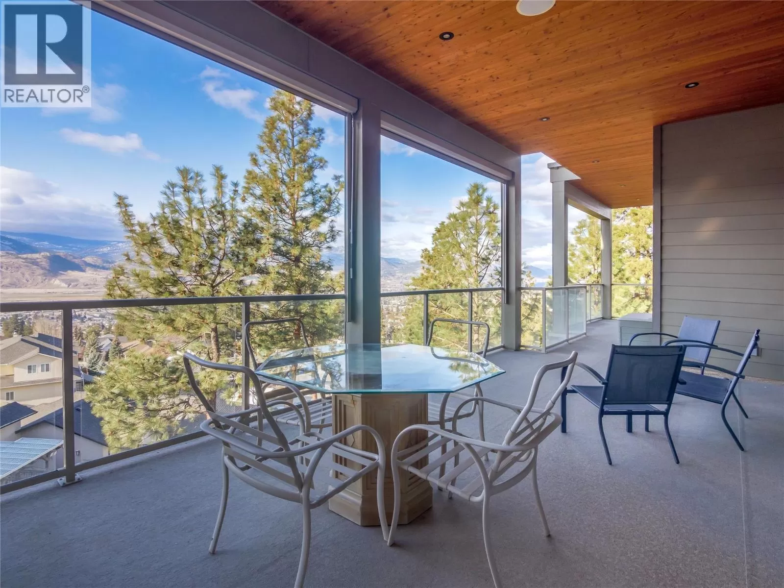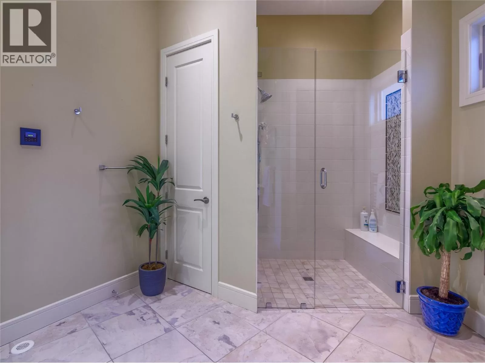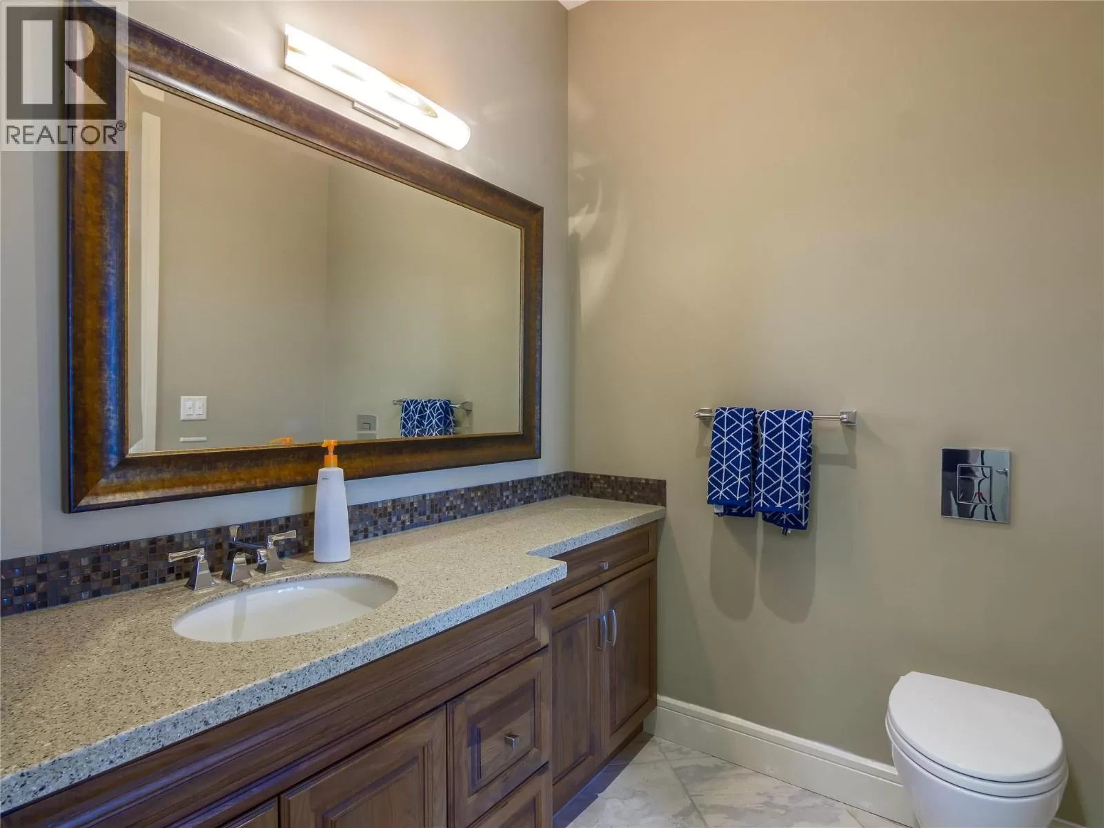 CLICK VIDEO. Welcome to an unparalleled oasis of luxury in the highly sought out Wiltse area where elegance meets breathtaking natural beauty. This extraordinary lakeview estate spans over 3800 square feet of meticulously crafted living space. The heart of the home is the expansive living room, adorned with beautiful accordion doors that lead you onto the deck, seamlessly expanding the space and blending the indoors with the breathtaking outdoors that overlook the mountains and both Okanagan Lake and Skaha Lake. Wheelchair friendly and has a RV hookup. Enjoy the library that includes built-in bookshelves and a wine rack. The gourmet kitchen, featuring granite countertops, dual built-in ovens, a sleek gas stove, and a pantry with custom pull-out drawers â a culinary masterpiece designed for both function and lavishness. This home features a private elevator that stops on all three floors. Indulge in the ultimate leisure experience in your theatre room, or rejuvenate in the luxurious steam room, sauna, or hot tub. With heated floors throughout, comfort meets luxury in every corner of this home. Even daily routines become a pleasure in the thoughtfully designed laundry room. Each of the four spacious bedrooms offers a serene sanctuary, while six appointed bathrooms provide a touch of luxury at every turn. The finished basement is perfect for guests, in-laws or a nanny suite with itâs own bedroom, bathroom and kitchenette. (id:27476)