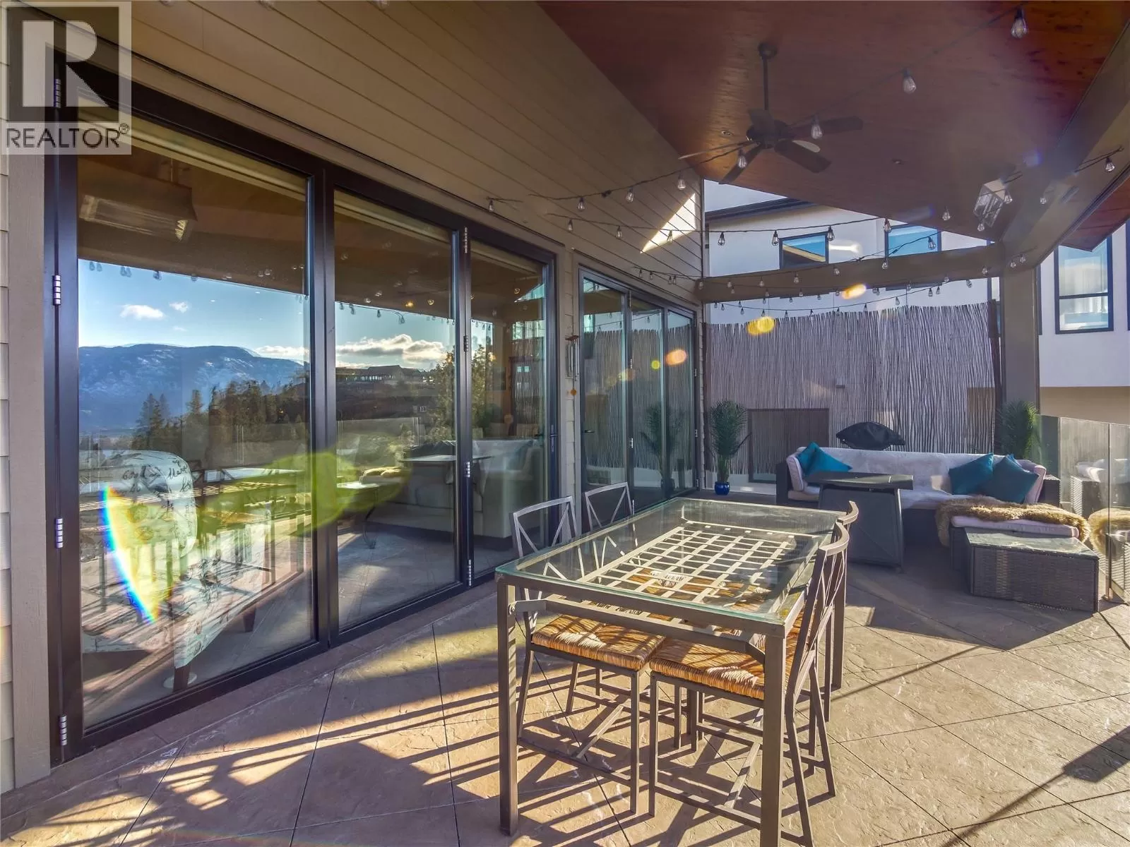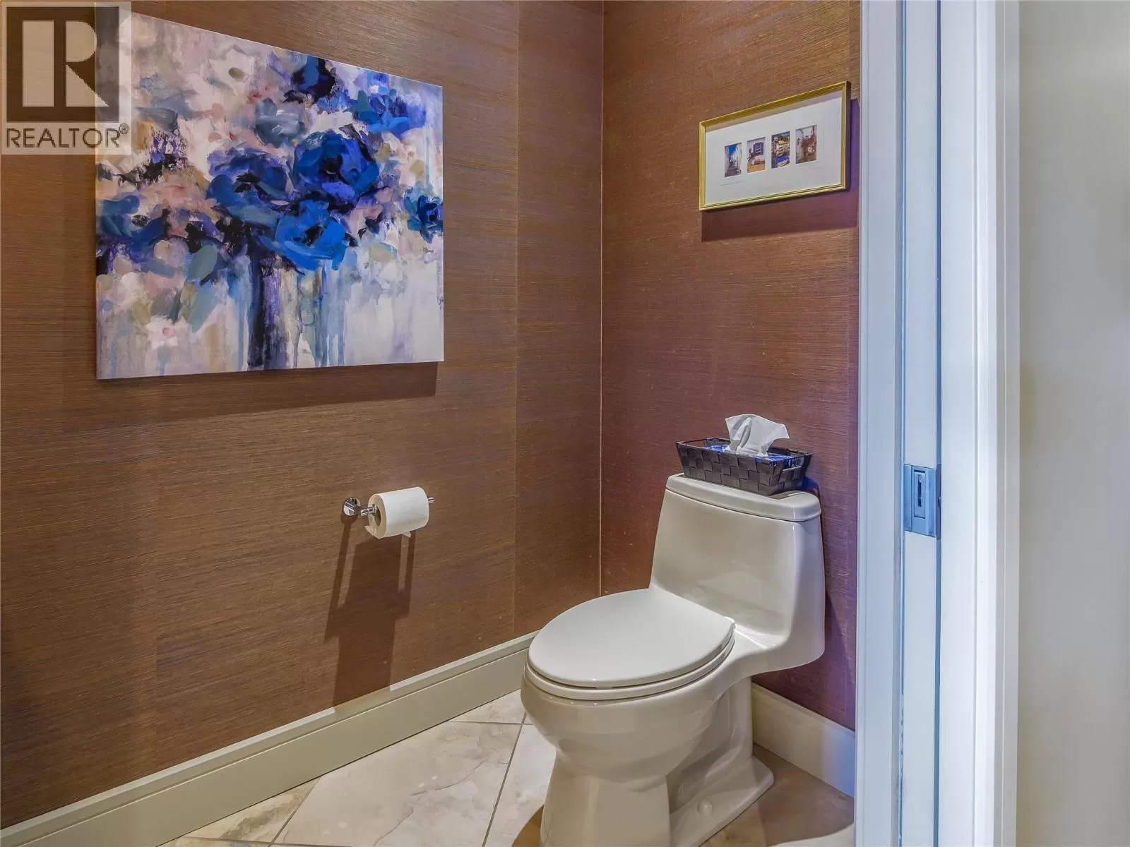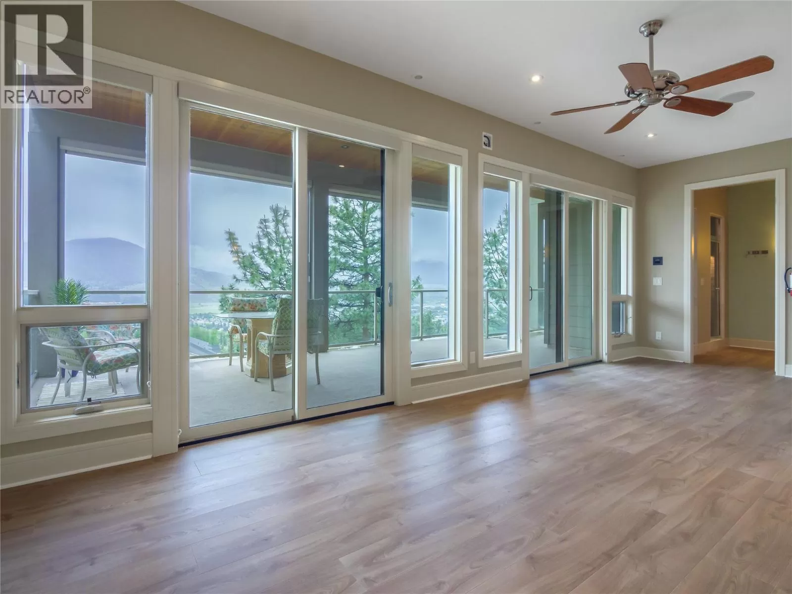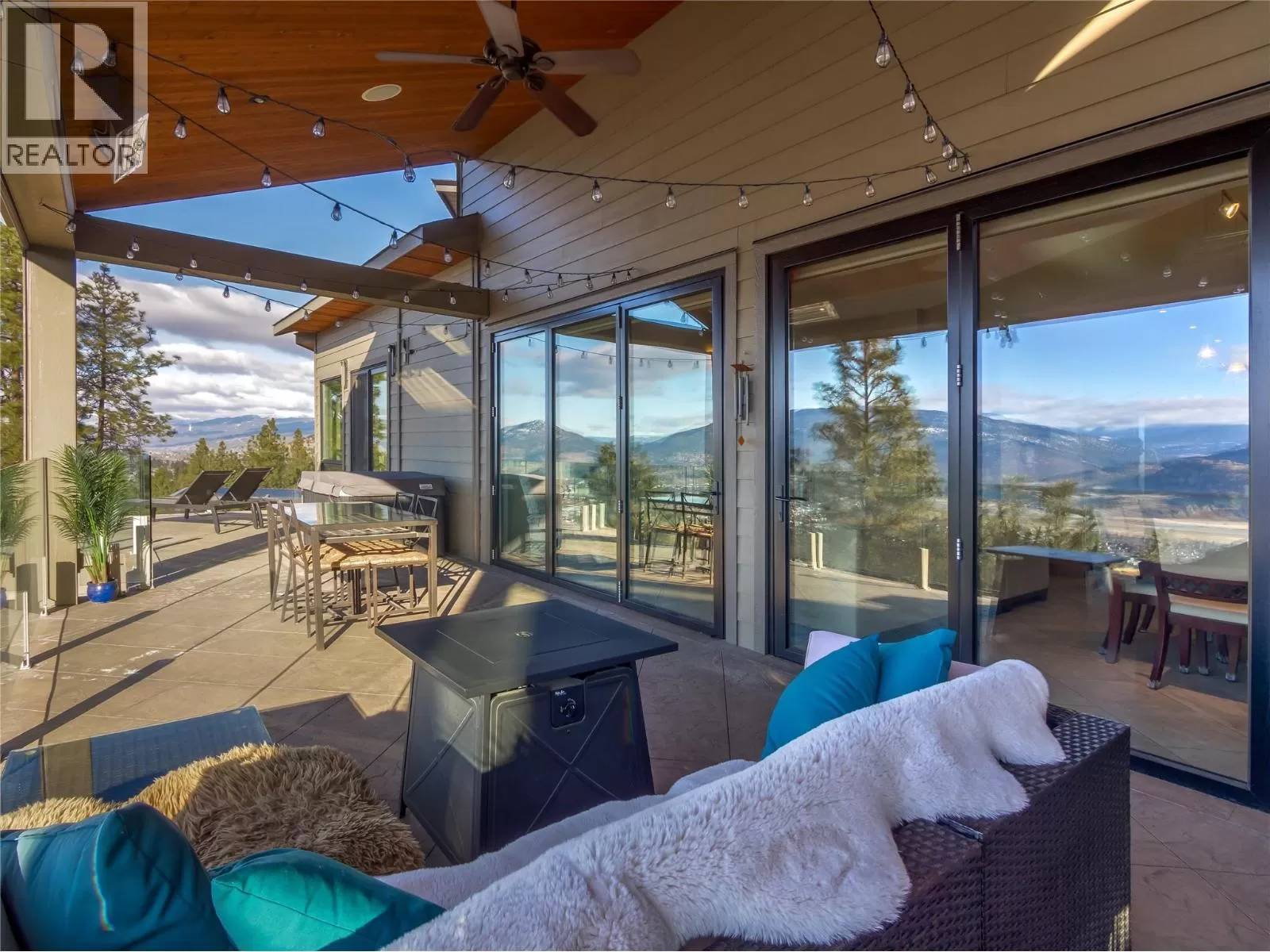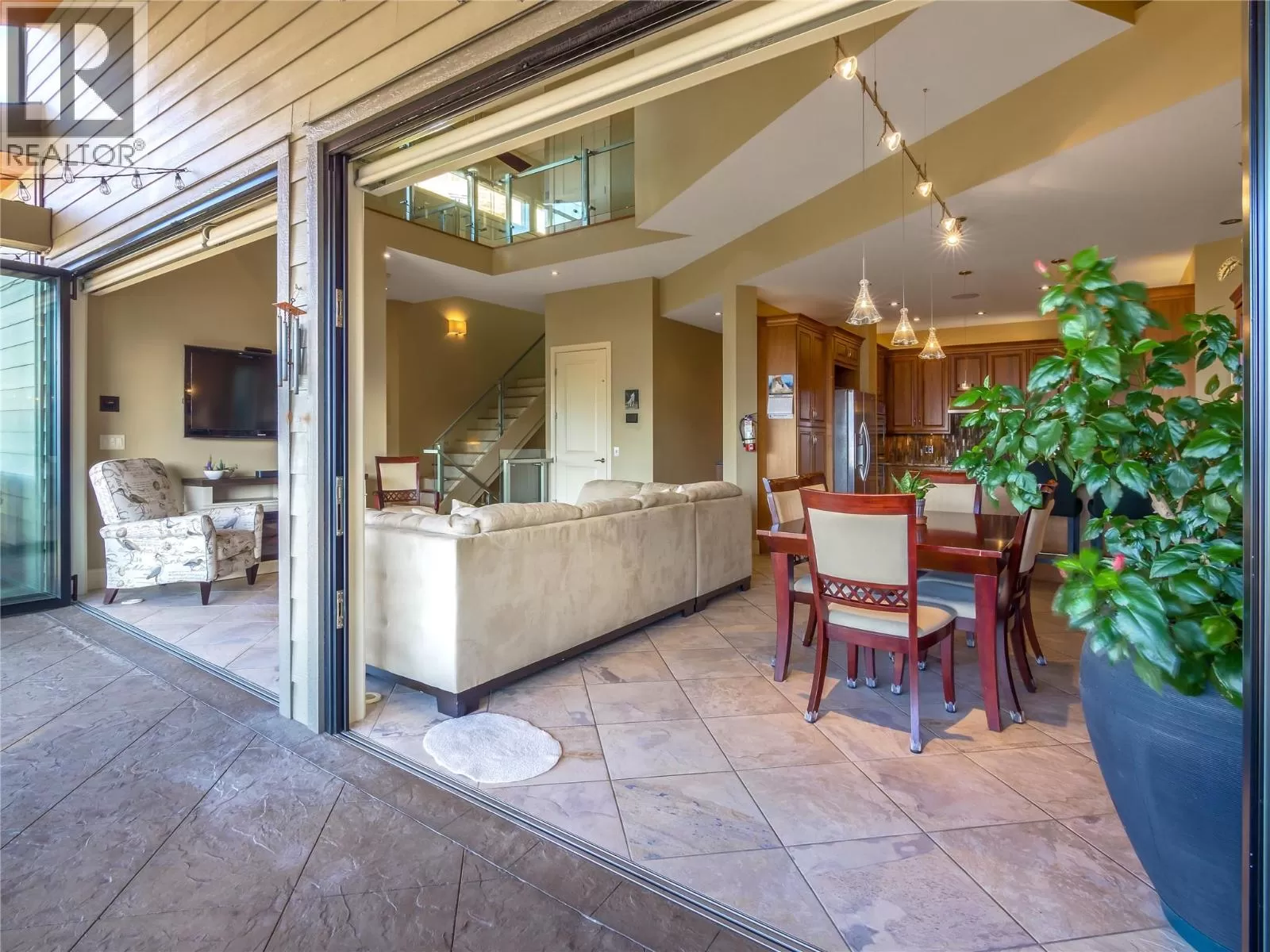 CLICK VIDEO. Welcome to an unparalleled oasis of luxury in the highly sought out Wiltse area where elegance meets breathtaking natural beauty. This extraordinary lakeview estate spans over 3800 square feet of meticulously crafted living space. The heart of the home is the expansive living room, adorned with beautiful accordion doors that lead you onto the deck, seamlessly expanding the space and blending the indoors with the breathtaking outdoors that overlook the mountains and both Okanagan Lake and Skaha Lake. Wheelchair friendly and has a RV hookup. Enjoy the library that includes built-in bookshelves and a wine rack. The gourmet kitchen, featuring granite countertops, dual built-in ovens, a sleek gas stove, and a pantry with custom pull-out drawers â a culinary masterpiece designed for both function and lavishness. This home features a private elevator that stops on all three floors. Indulge in the ultimate leisure experience in your theatre room, or rejuvenate in the luxurious steam room, sauna, or hot tub. With heated floors throughout, comfort meets luxury in every corner of this home. Even daily routines become a pleasure in the thoughtfully designed laundry room. Each of the four spacious bedrooms offers a serene sanctuary, while six appointed bathrooms provide a touch of luxury at every turn. The finished basement is perfect for guests, in-laws or a nanny suite with itâs own bedroom, bathroom and kitchenette. (id:27476)
