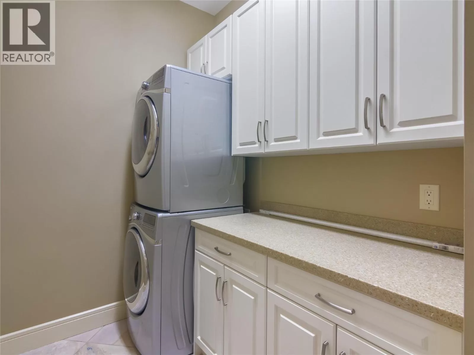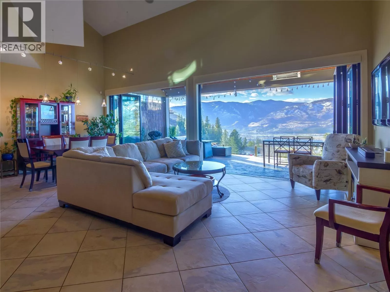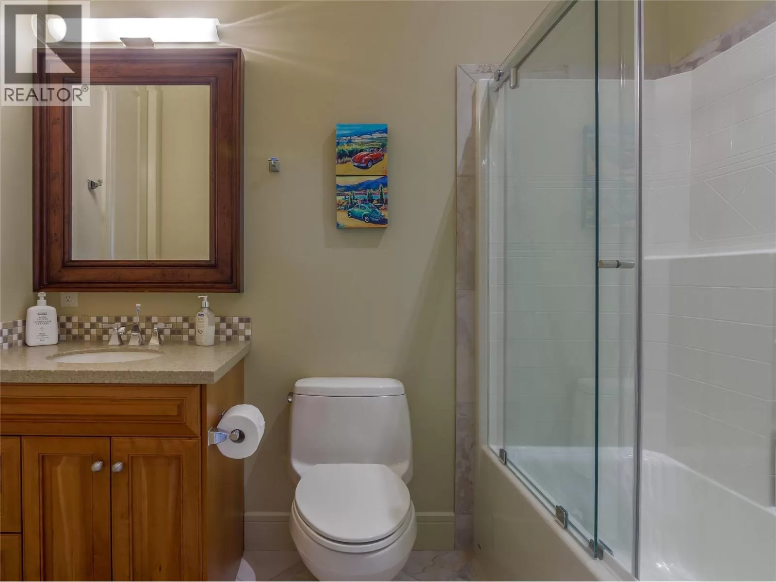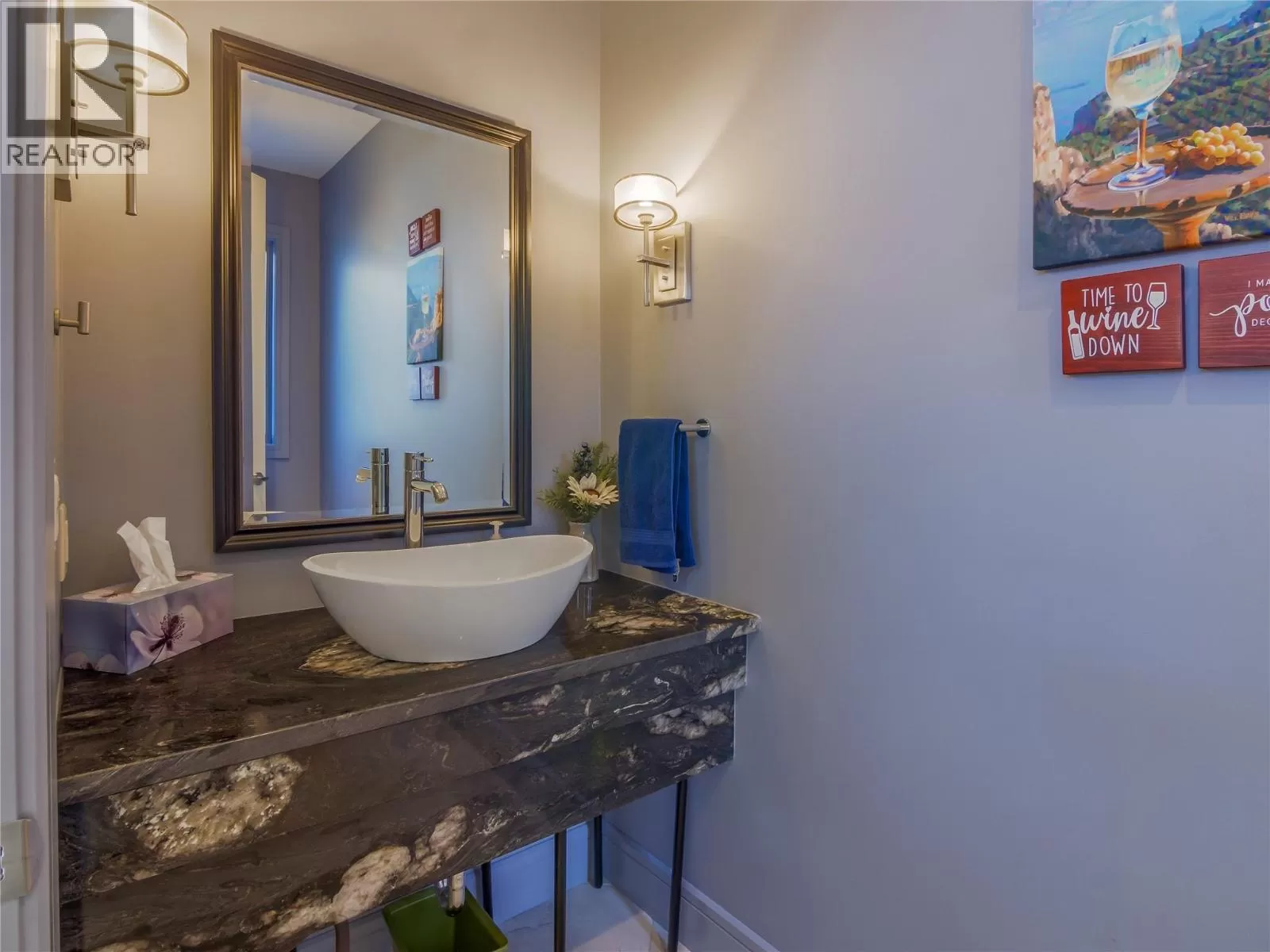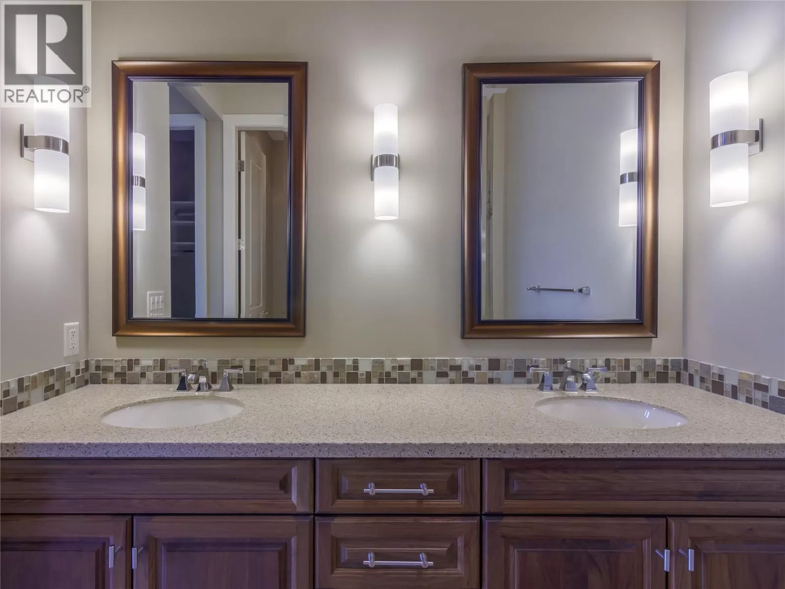 CLICK VIDEO. Welcome to an unparalleled oasis of luxury in the highly sought out Wiltse area where elegance meets breathtaking natural beauty. This extraordinary lakeview estate spans over 3800 square feet of meticulously crafted living space. The heart of the home is the expansive living room, adorned with beautiful accordion doors that lead you onto the deck, seamlessly expanding the space and blending the indoors with the breathtaking outdoors that overlook the mountains and both Okanagan Lake and Skaha Lake. Wheelchair friendly and has a RV hookup. Enjoy the library that includes built-in bookshelves and a wine rack. The gourmet kitchen, featuring granite countertops, dual built-in ovens, a sleek gas stove, and a pantry with custom pull-out drawers â a culinary masterpiece designed for both function and lavishness. This home features a private elevator that stops on all three floors. Indulge in the ultimate leisure experience in your theatre room, or rejuvenate in the luxurious steam room, sauna, or hot tub. With heated floors throughout, comfort meets luxury in every corner of this home. Even daily routines become a pleasure in the thoughtfully designed laundry room. Each of the four spacious bedrooms offers a serene sanctuary, while six appointed bathrooms provide a touch of luxury at every turn. The finished basement is perfect for guests, in-laws or a nanny suite with itâs own bedroom, bathroom and kitchenette. (id:27476)