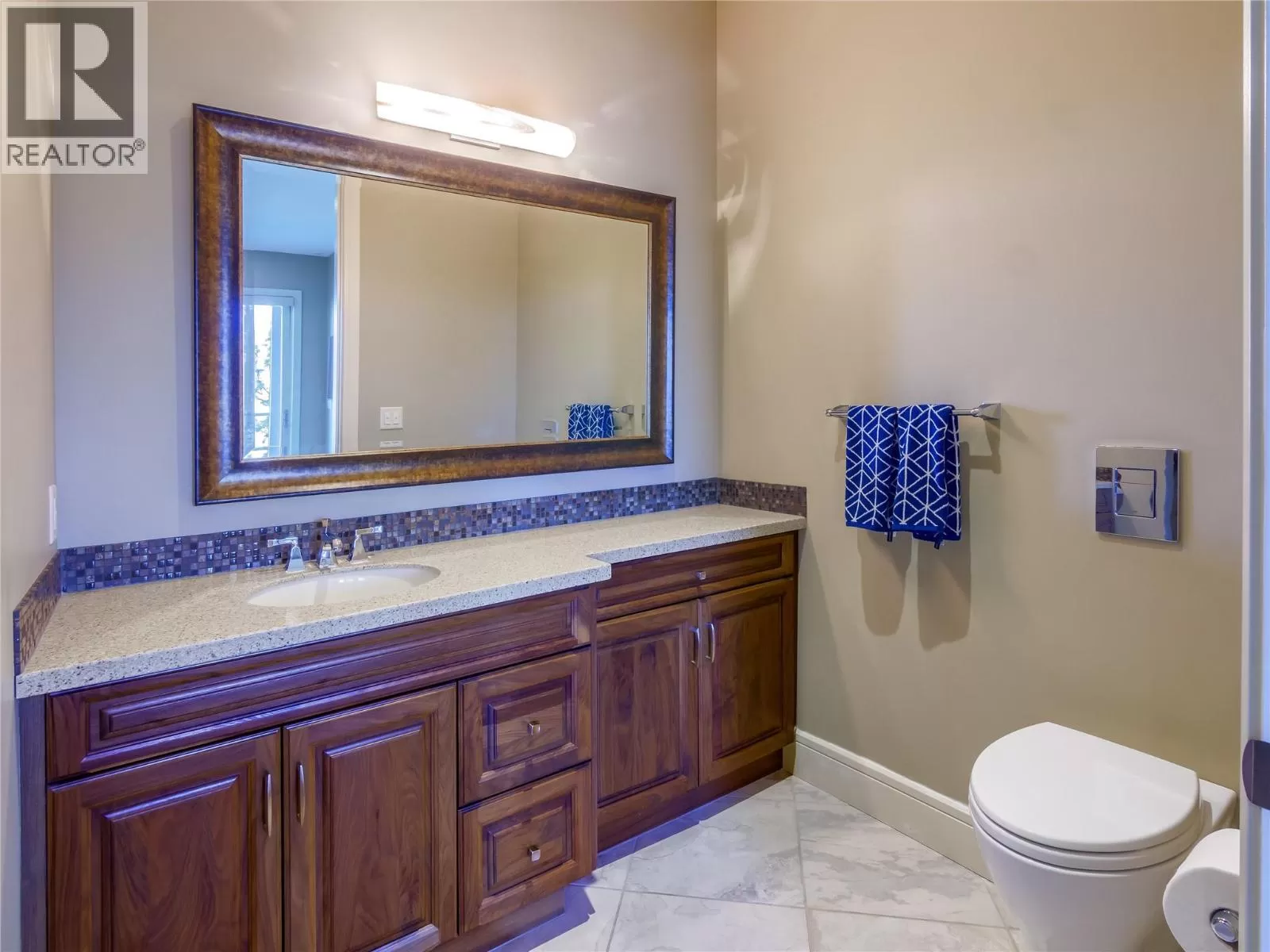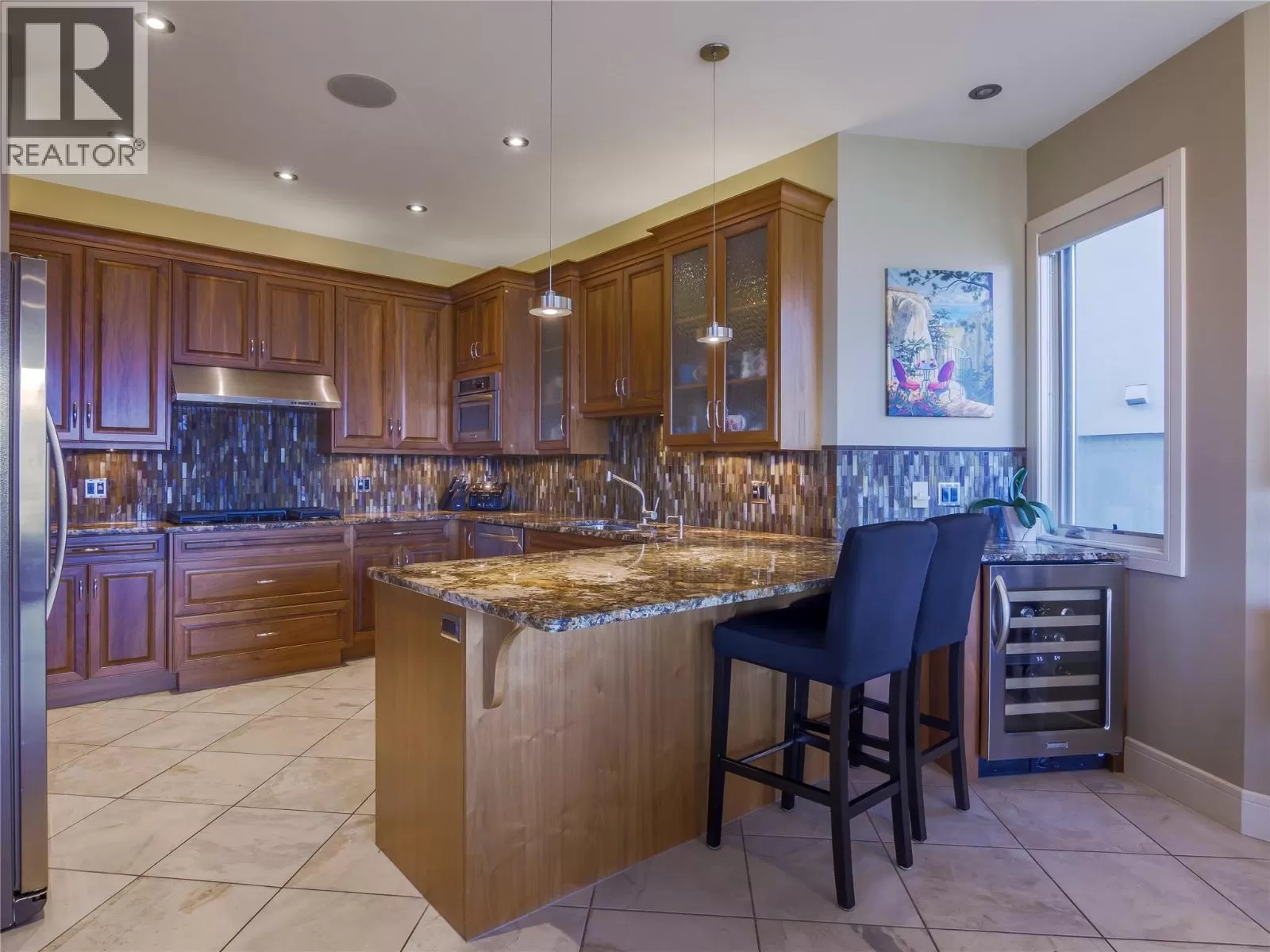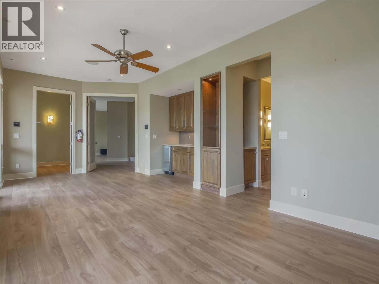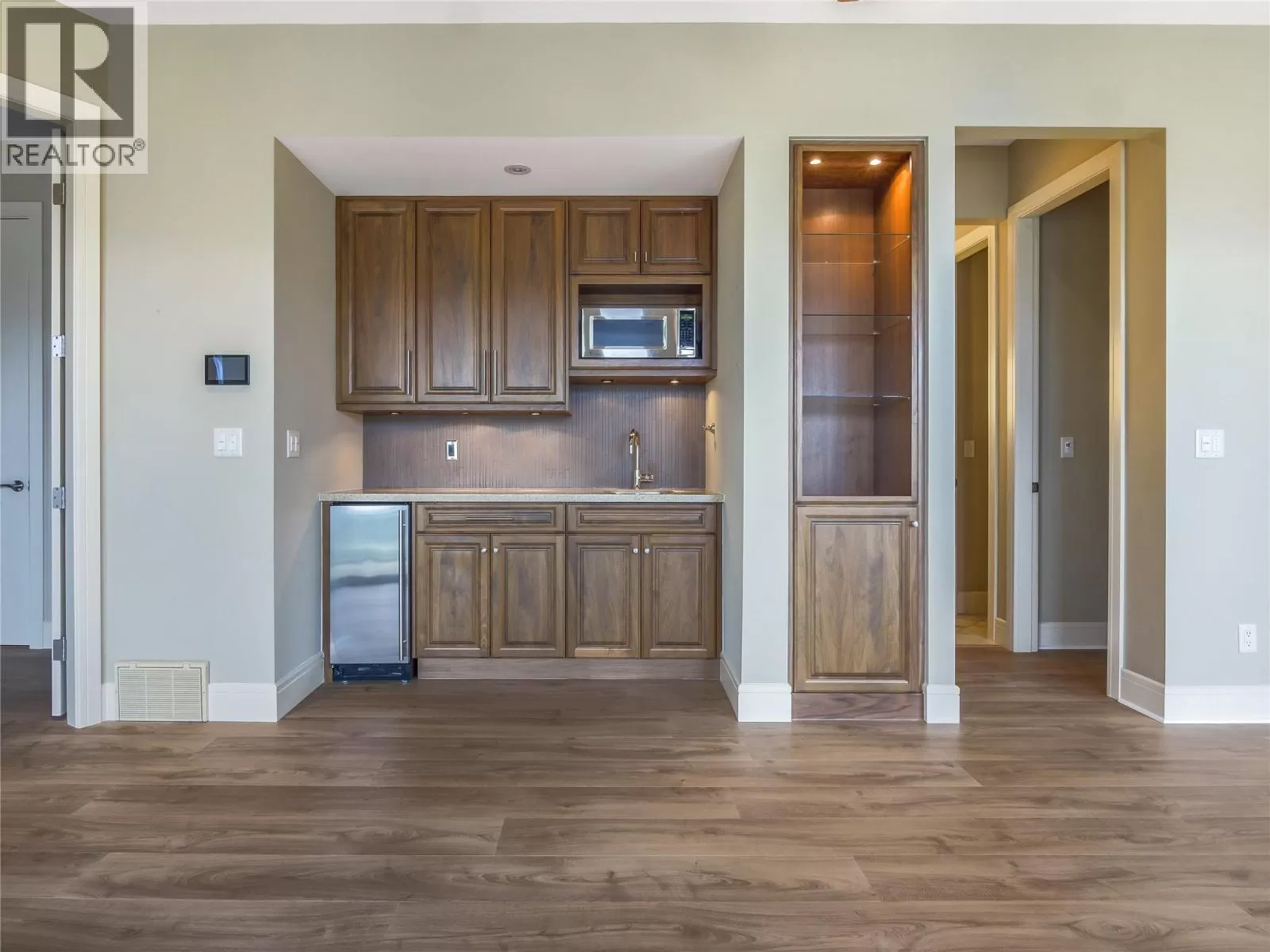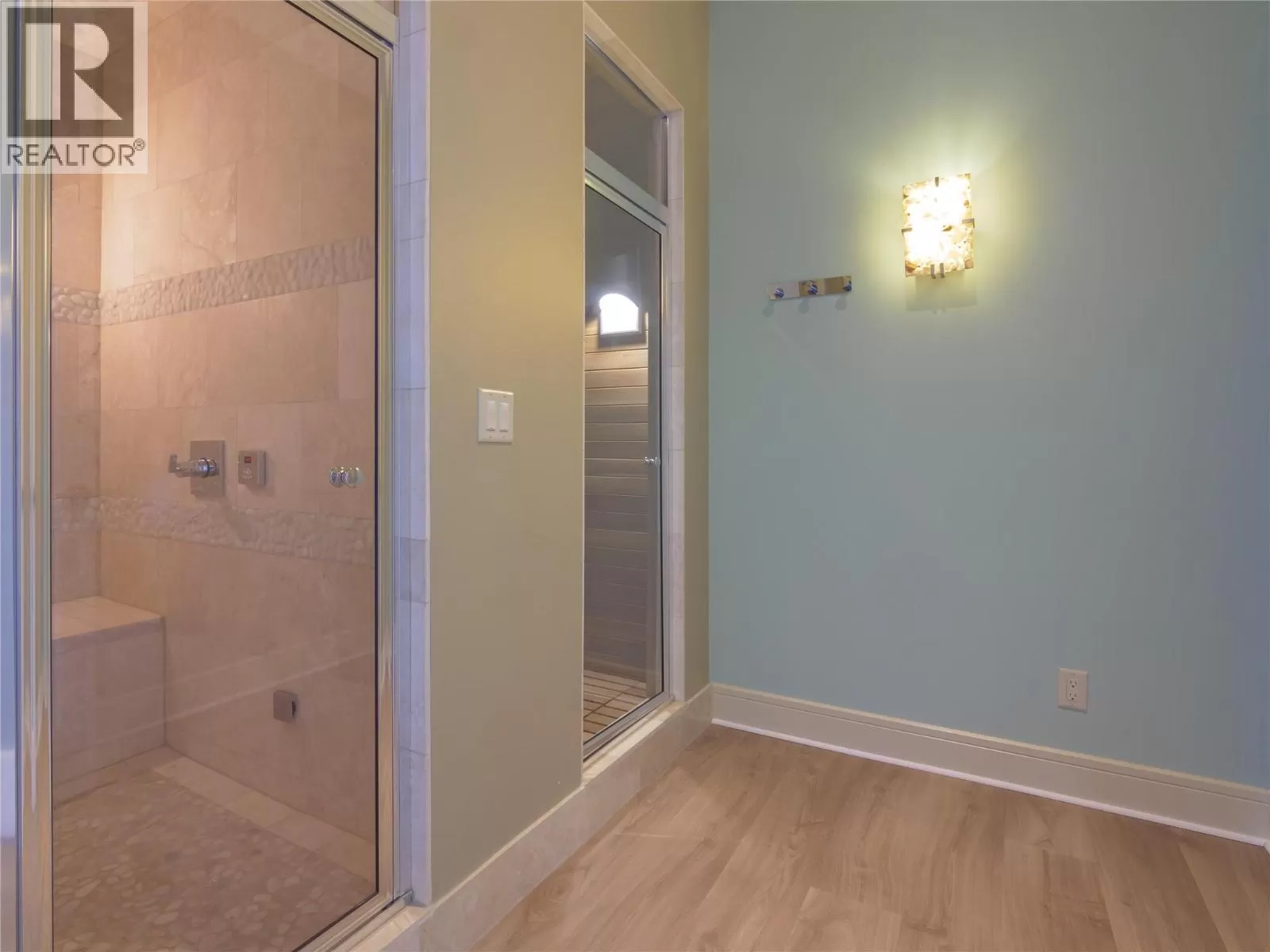 CLICK VIDEO. Welcome to an unparalleled oasis of luxury in the highly sought out Wiltse area where elegance meets breathtaking natural beauty. This extraordinary lakeview estate spans over 3800 square feet of meticulously crafted living space. The heart of the home is the expansive living room, adorned with beautiful accordion doors that lead you onto the deck, seamlessly expanding the space and blending the indoors with the breathtaking outdoors that overlook the mountains and both Okanagan Lake and Skaha Lake. Wheelchair friendly and has a RV hookup. Enjoy the library that includes built-in bookshelves and a wine rack. The gourmet kitchen, featuring granite countertops, dual built-in ovens, a sleek gas stove, and a pantry with custom pull-out drawers â a culinary masterpiece designed for both function and lavishness. This home features a private elevator that stops on all three floors. Indulge in the ultimate leisure experience in your theatre room, or rejuvenate in the luxurious steam room, sauna, or hot tub. With heated floors throughout, comfort meets luxury in every corner of this home. Even daily routines become a pleasure in the thoughtfully designed laundry room. Each of the four spacious bedrooms offers a serene sanctuary, while six appointed bathrooms provide a touch of luxury at every turn. The finished basement is perfect for guests, in-laws or a nanny suite with itâs own bedroom, bathroom and kitchenette. (id:27476)