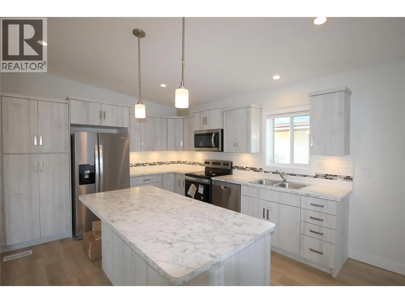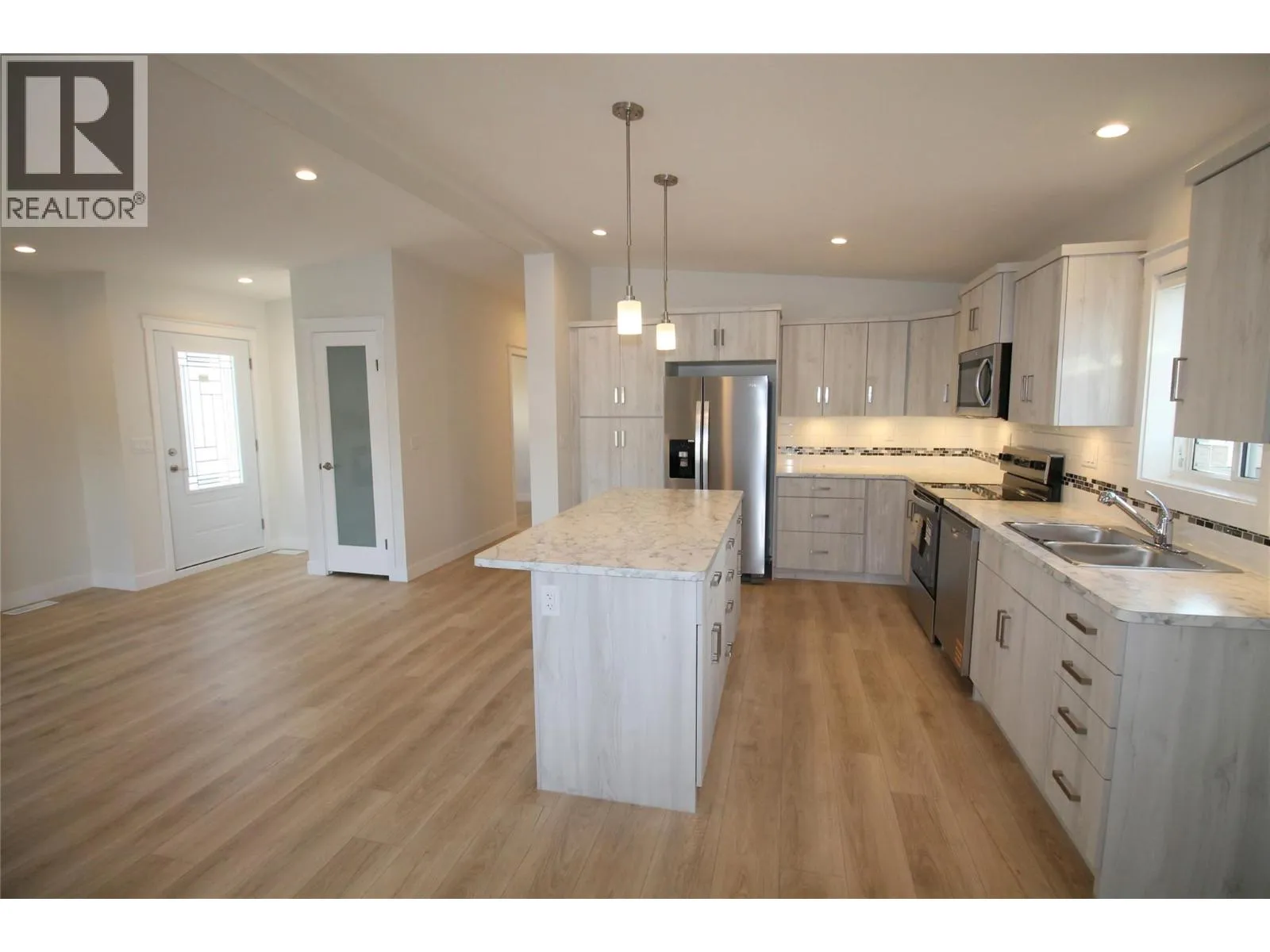 Welcome to Cara Villa Estates, where you own the land (no pad rent/Bare Land Strata Lot) while enjoying the comfort & convenience of a 55+ community. This exclusive PRE -SALE Moduline Double-Wide Manufactured Home is currently in the final stages of construction by Lakeridge Homes in Penticton. Featuring 2 spacious bedrooms PLUS DEN, 3-piece Ensuite , 4-piece Main Bathroom. The bright, open floorplan features a modern kitchen with stainless steel Whirlpool appliances side by side Fridge with Icemaker , Electric Smooth Top Range, Spacesaver Microwave & Dishwasher. Enjoy the spacious dining area & living room with Legacy Fireplace and stylish Monaco floor-to-ceiling mantle. With newly-finished driveway & fully-landscaped yard out front. The home will be completed early December 2025. Cara Villa Estates offers a well-maintained environment, promoting a peaceful, friendly community, no pets or rentals. Embrace the vibrant Okanagan lifestyle with nearby amenities such as the Senior Drop-in Center with pickle ball courts, beaches, park, tennis courts, golf courses & shopping. Bare land Strata fees are 207.88/month, access to the clubhouse with social room, indoor pool & well-kept park. Sale price plus GST. Full one-year Lakeridge Home Warranty plus 10-year Pacific Warranty. Quick possession possible. (id:27476)