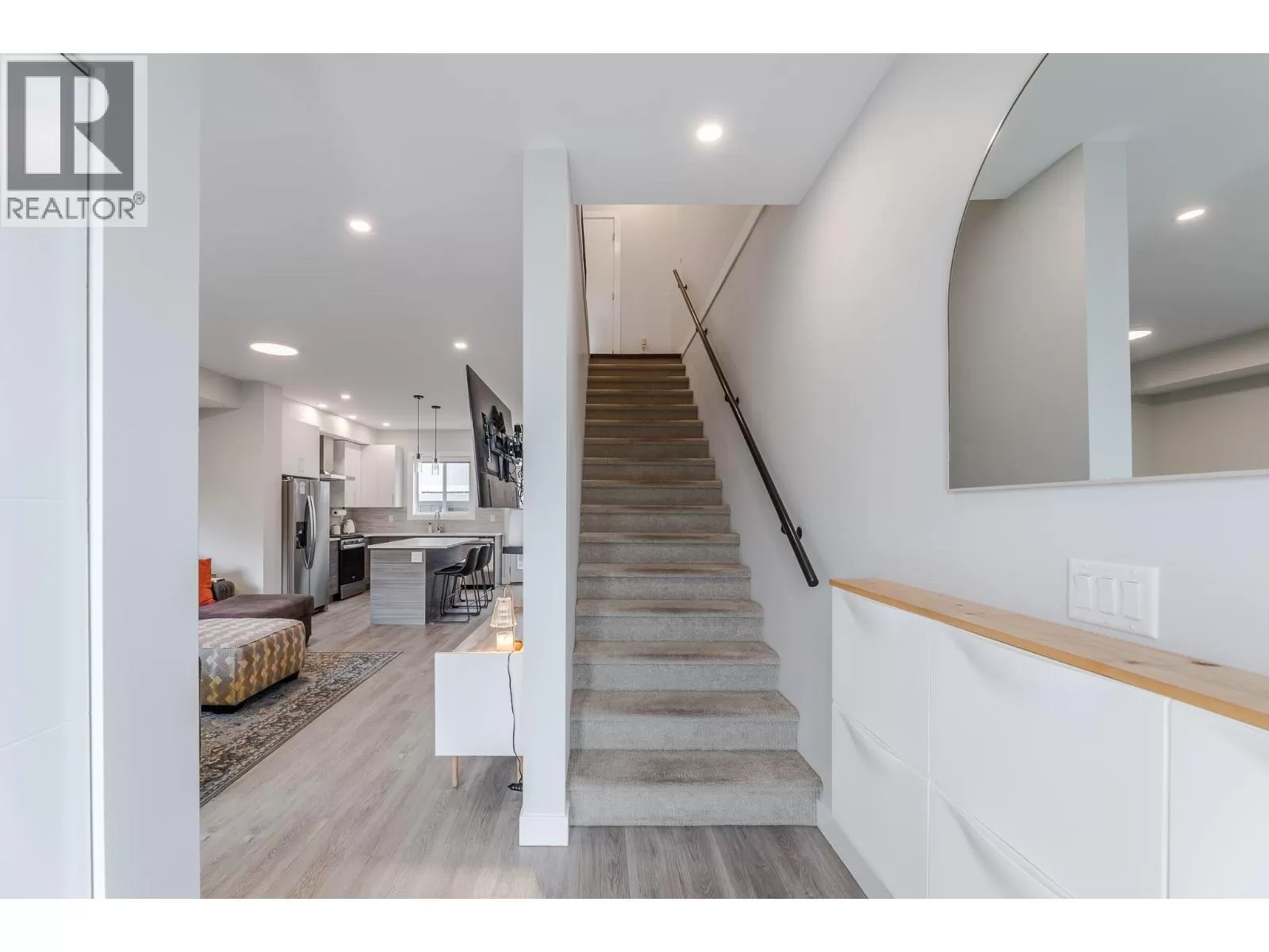 Discover the perfect blend of style, space, and location in this beautifully crafted 4 bedroom, 3 bathroom townhome - just steps from downtown Penticton yet quietly tucked away on a peaceful laneway. Designed for families, entertainers, and lovers of the Okanagan lifestyle, this home offers a bright, open-concept main floor with a spacious living area and a sleek kitchen ideal for hosting or easy dining. Step out onto your large private patio, complete with a gas hookup, and enjoy summer BBQs or unwind under the stars on warm valley evenings. Upstairs, retreat to a generous primary suite featuring a walk-in closet and a private 3-piece ensuite. 2 additional bedrooms, a full 4-piece bathroom, and a convenient laundry room complete the upper levelâall enhanced by upgraded flooring and quality finishings throughout. The lower level adds versatility with a rec room, 4th bedroom and 3rd bathroom - perfect for guests, a growing family, or your dream media room. With pet-friendly policies, no age restrictions, low strata fees($210), & ample storage, this home checks every box. Prime central location near the KVR Trail, farmers markets, beaches, and parks, quiet laneway setting for added privacy, spacious layout across 3 levels, private patio with gas hookup, This is your chance to own a true gem in the heart of the South Okanagan. Come see why this townhome is more than just a place to liveâitâs a lifestyle. Square footage based on exterior dimensions; buyer to verify if important. (id:27476)