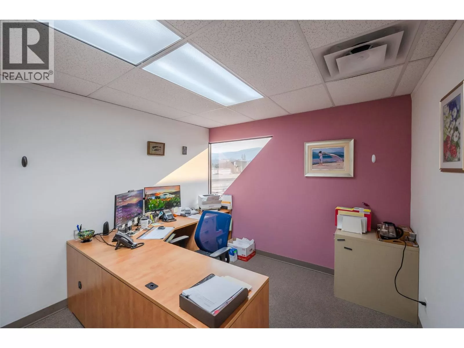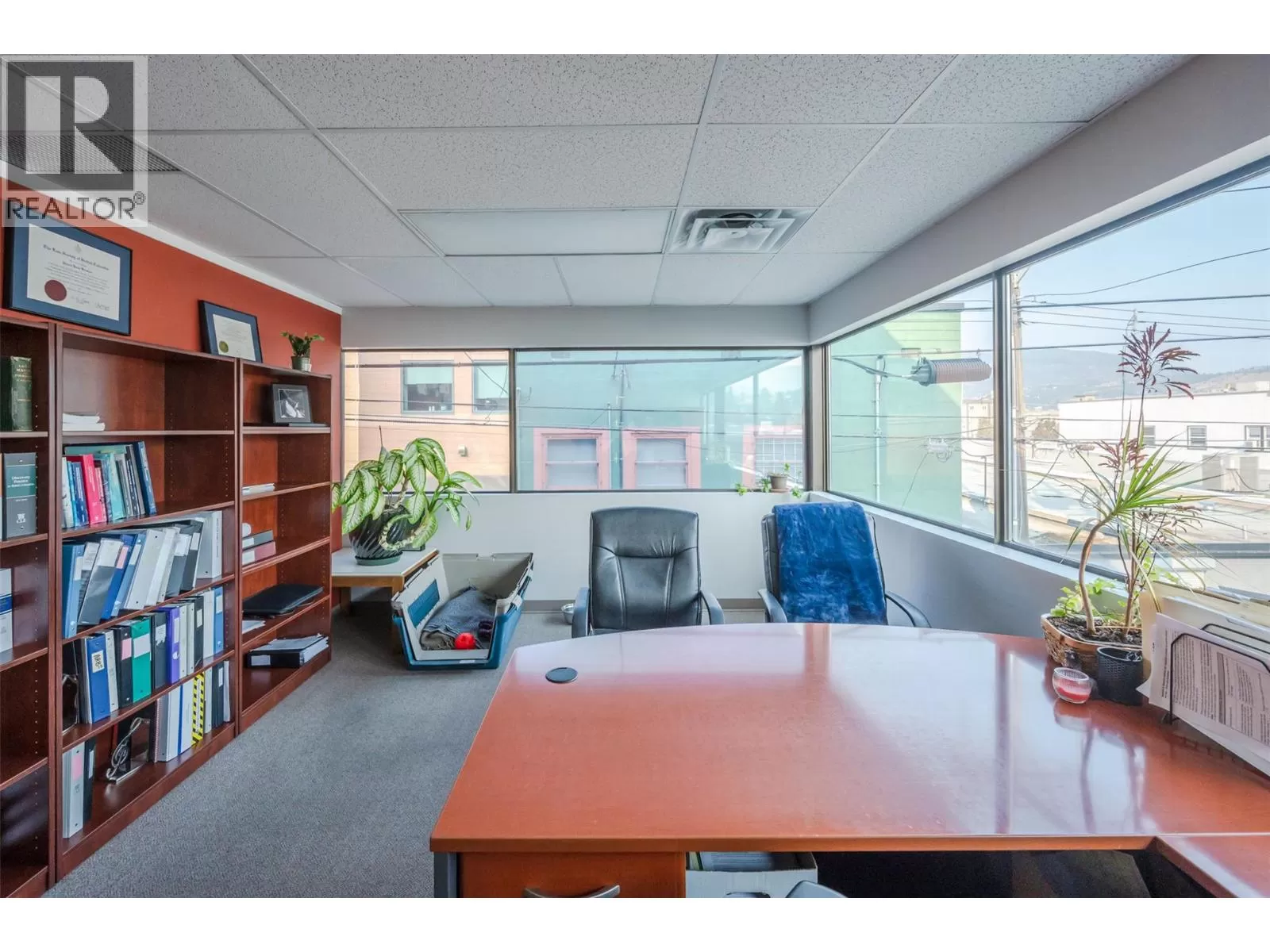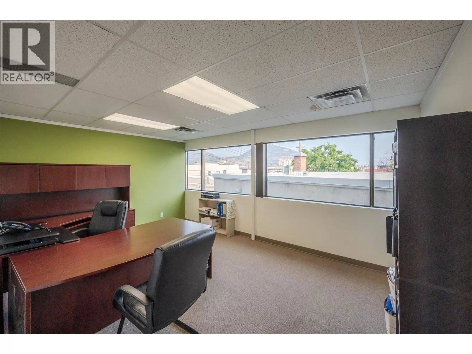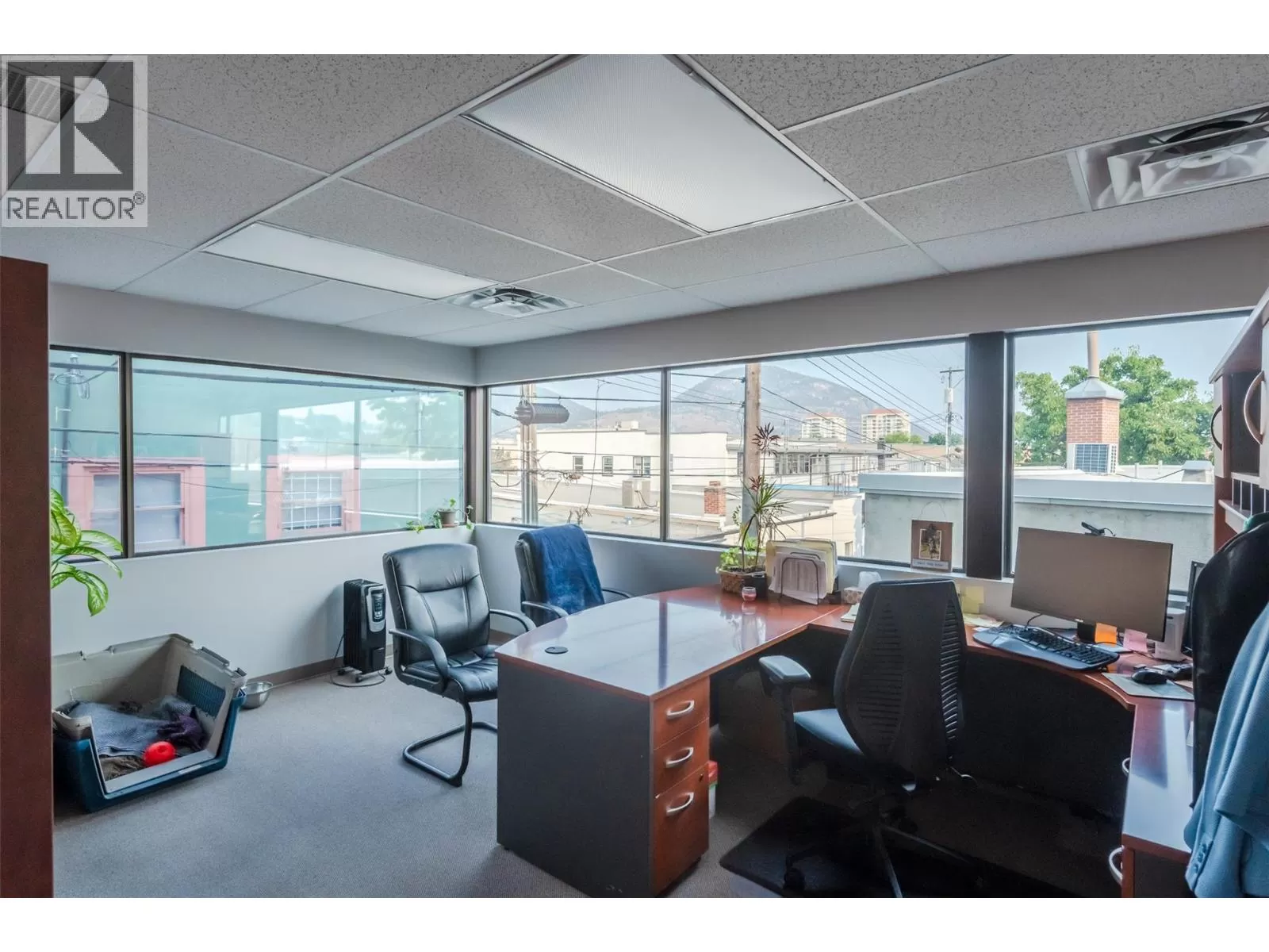 Opportunity to lease 2,366 sq ft of office space in The Ellis Professional Building, located on a high profile corner location in downtown Penticton. With a flexible layout, these combined spaces present a versatile solution for your office requirements. The floorplan offers 7 office spaces, reception, kitchenette, and plenty of storage space. Ideal for a legal or accounting firm. Bring your ideas. Basic rent is $2,500 per month plus parking, storage, triple net expenses and GST. 7 reserved parking spaces available. Most of the office furniture can stay during the duration of the remaining lease, if required. Measurements taken from i-Guide. Call listing agent today for a viewing. (id:27476)