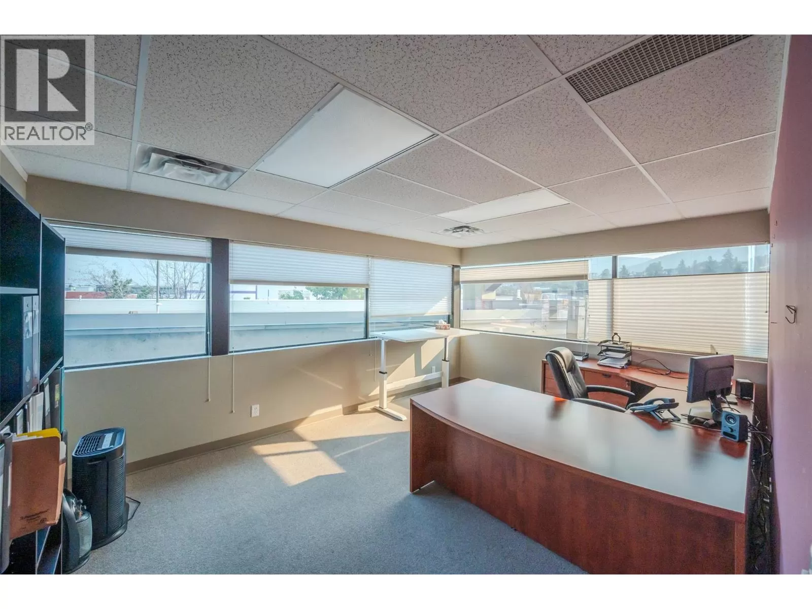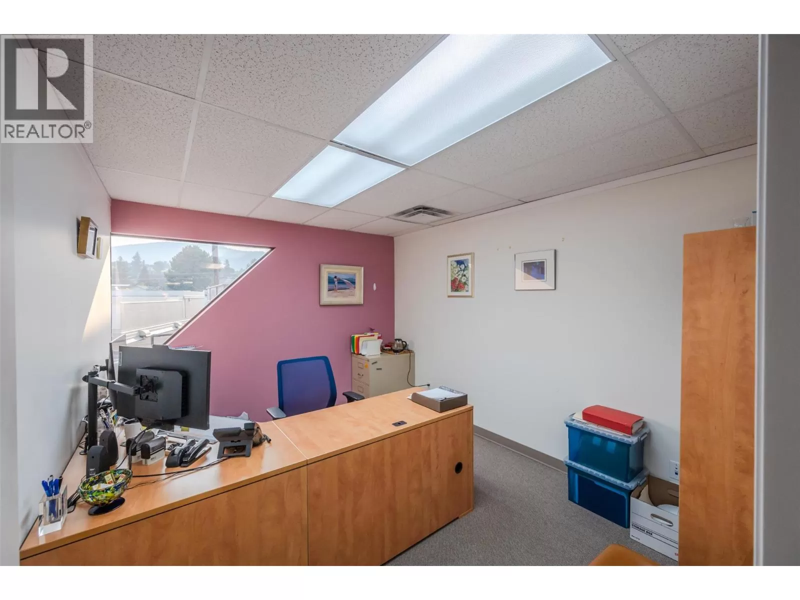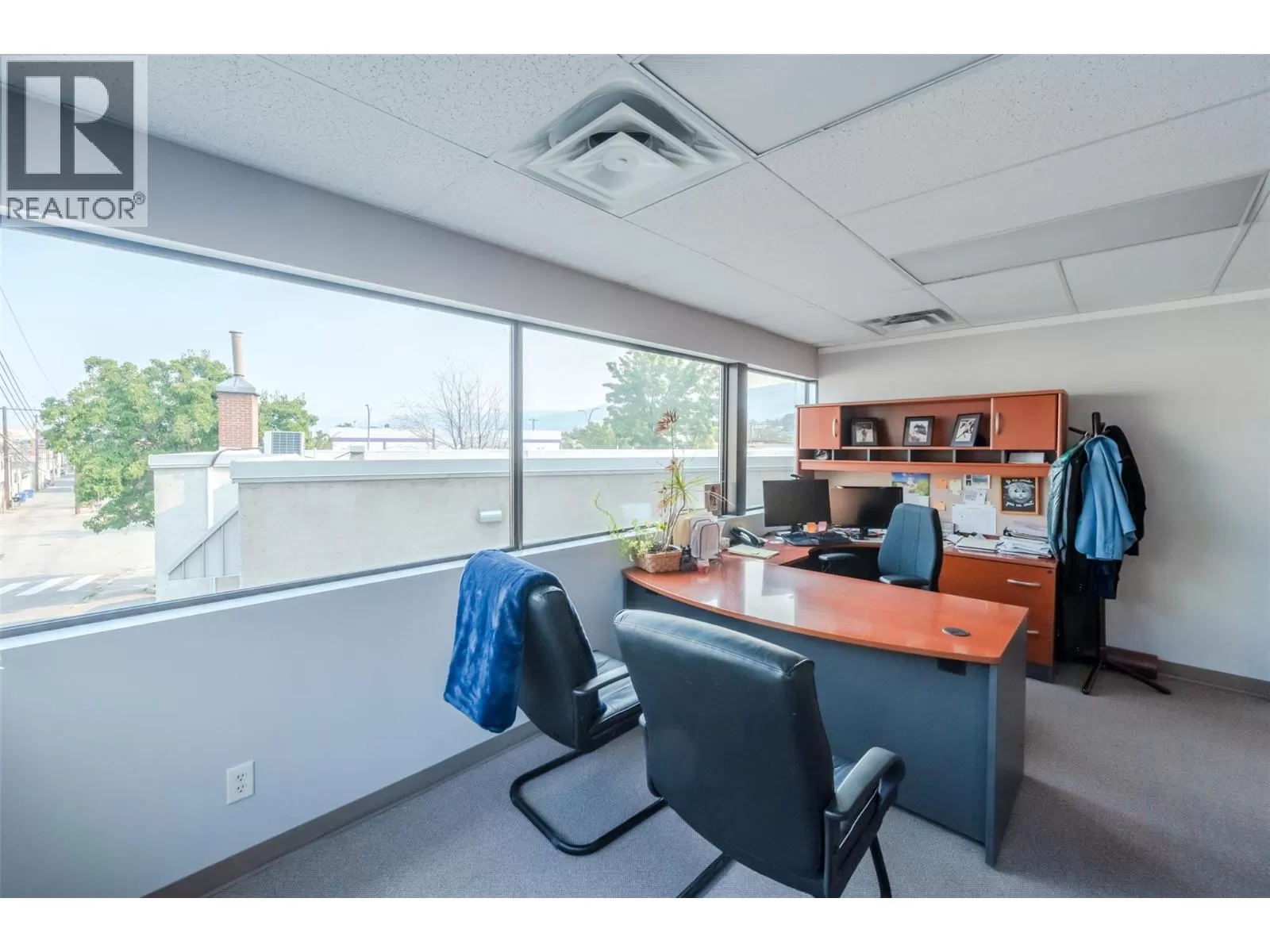 Opportunity to lease 2,366 sq ft of office space in The Ellis Professional Building, located on a high profile corner location in downtown Penticton. With a flexible layout, these combined spaces present a versatile solution for your office requirements. The floorplan offers 7 office spaces, reception, kitchenette, and plenty of storage space. Ideal for a legal or accounting firm. Bring your ideas. Basic rent is $2,500 per month plus parking, storage, triple net expenses and GST. 7 reserved parking spaces available. Most of the office furniture can stay during the duration of the remaining lease, if required. Measurements taken from i-Guide. Call listing agent today for a viewing. (id:27476)