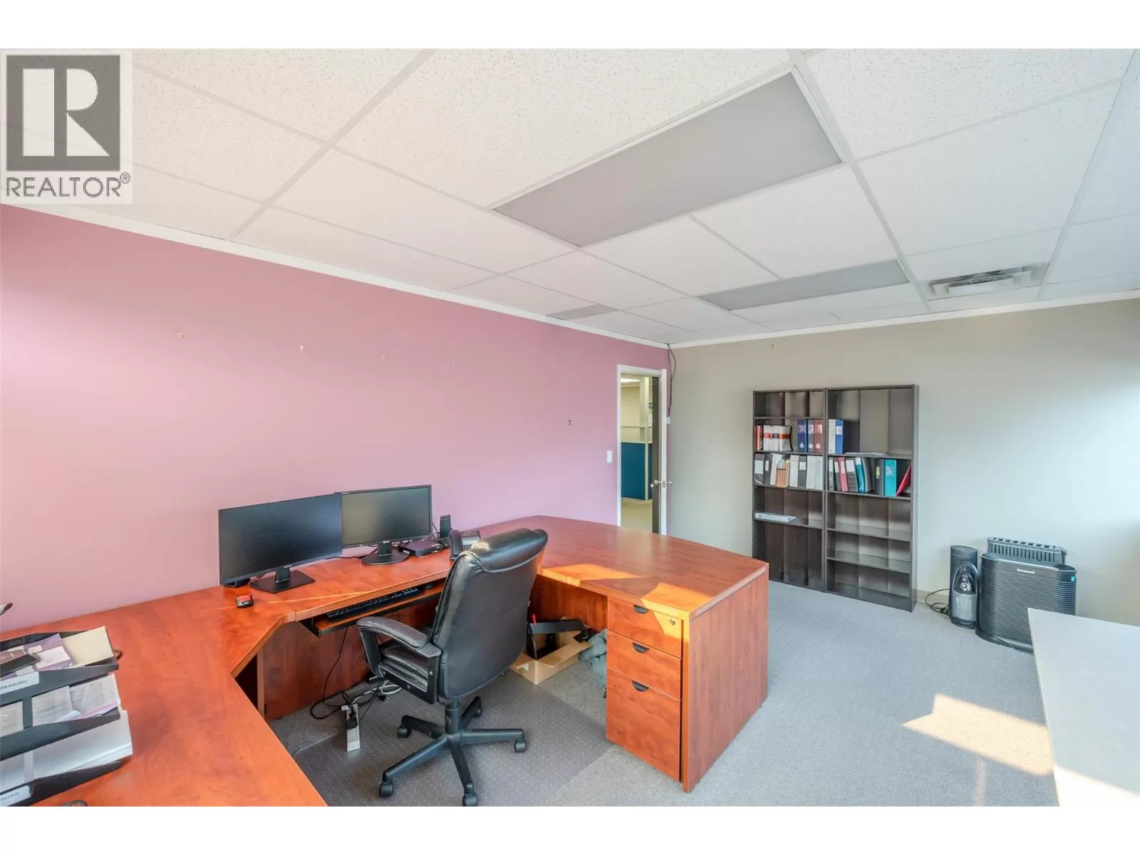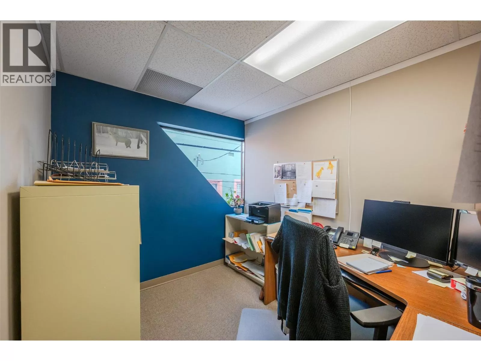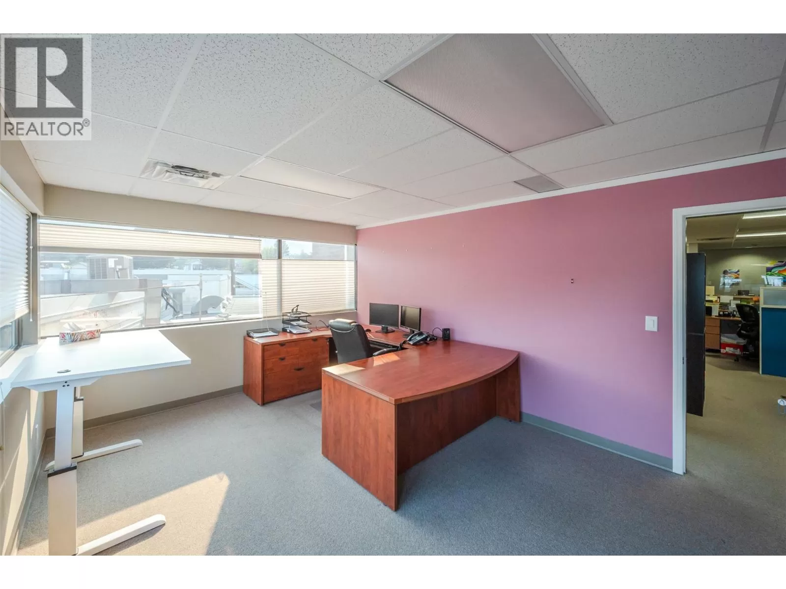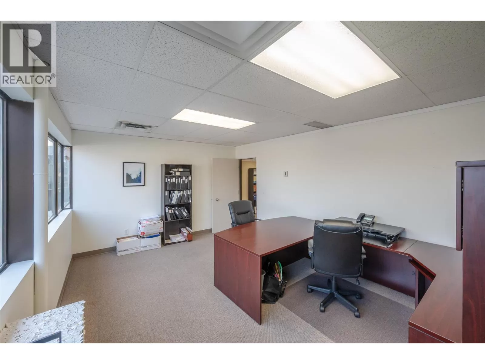 Opportunity to lease 2,366 sq ft of office space in The Ellis Professional Building, located on a high profile corner location in downtown Penticton. With a flexible layout, these combined spaces present a versatile solution for your office requirements. The floorplan offers 7 office spaces, reception, kitchenette, and plenty of storage space. Ideal for a legal or accounting firm. Bring your ideas. Basic rent is $2,500 per month plus parking, storage, triple net expenses and GST. 7 reserved parking spaces available. Most of the office furniture can stay during the duration of the remaining lease, if required. Measurements taken from i-Guide. Call listing agent today for a viewing. (id:27476)