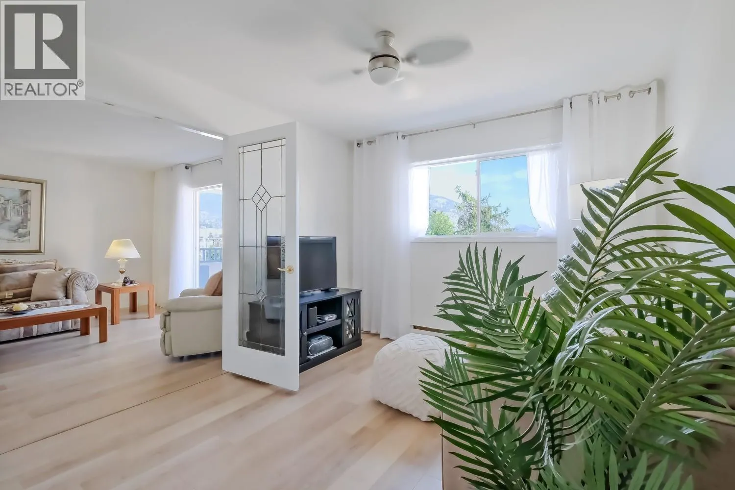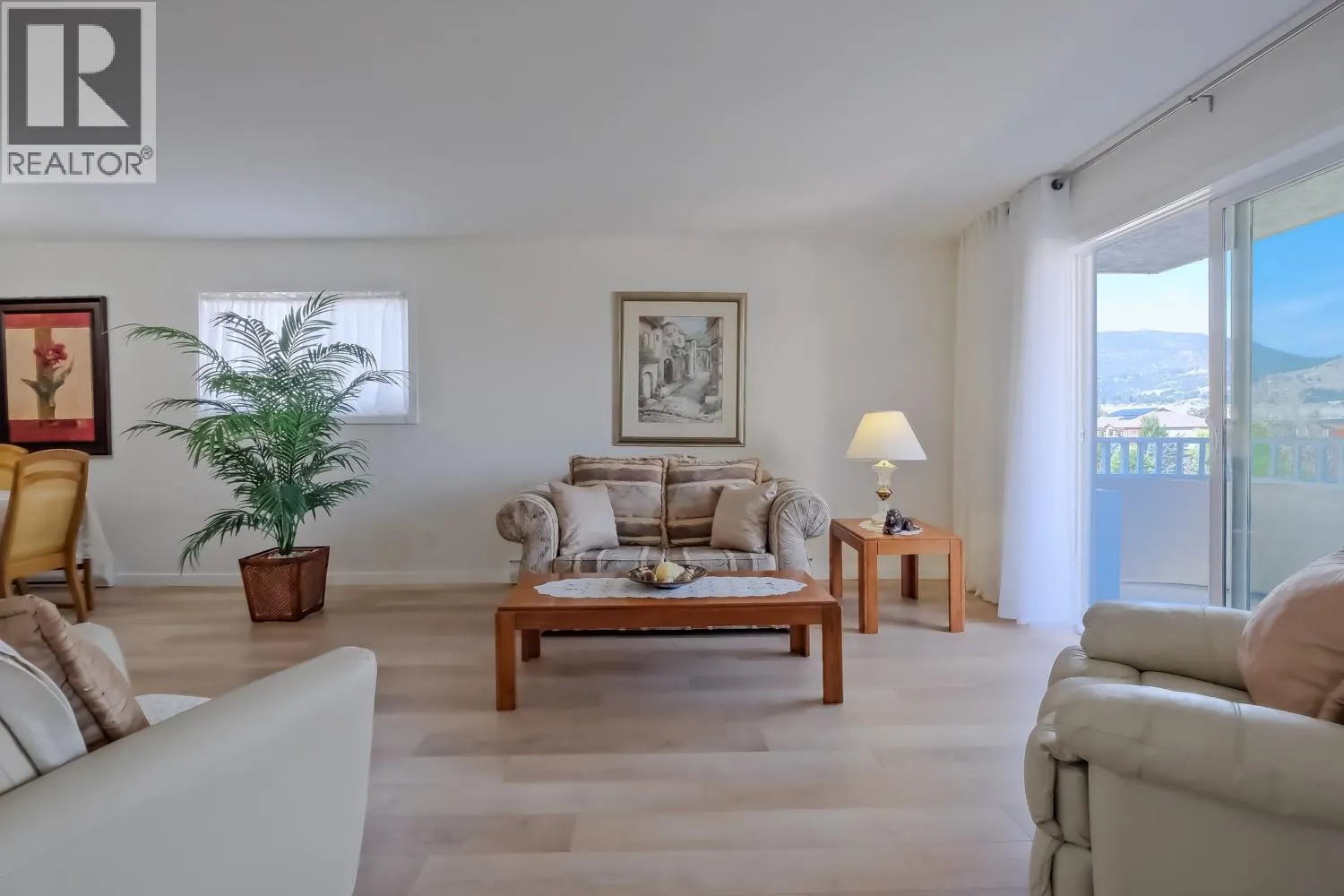 Top-Floor Corner Condo by Okanagan Lake! Welcome to this bright and spacious northwest corner unit, perfectly positioned just steps from the sandy shores of Okanagan Lake. Offering 1,112 sq. ft. of comfortable living, this suite features 2 bedrooms, 2 full bathrooms, and the convenience of in-suite laundry. Recent updates include stylish flooring, fresh paint, a newer washer & dryer, plus a new hot water tank (late 2023). Natural light fills the open layout, creating a warm and inviting atmosphere. Step outside your door and enjoy everything Pentictonâs Lakeshore Drive has to offerâscenic boulevard walkways, award-winning restaurants, local breweries, and of course, the beach! This well-maintained building is age-restricted to 55+ and offers a quiet, relaxed lifestyle. Sorry, no pets. (id:27476)