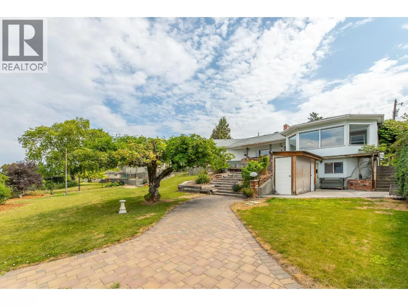 RARE DIAMOND in the rough with WATER VIEWS in one of Penticton's PREMIER neighbourhoods awaits its next owner. Open the front door and be instantly WOWED you guessed it by the VIEW! This charming home features an OVERSIZED FOYER with high ceilings, SUPER SIZED dining room with a 180 degree view of Okanagan Lake and the city, living room, family room, functional kitchen with oak cabinets, 3 bedrooms including a LARGE primary, and 2 bathrooms. The unfinished 1400 sq ft basement with walkout access gives you SUITE POTENTIAL. The generously sized BACKYARD features a viewing deck, PATIO, and garden area with a LILY POND. Just imagine having your private view of the Canada Day fireworks right from your HOT TUB, deck or dining room! This lovely home has a great walking score with close proximity to the Penticton Farmers Market, OKANAGAN BEACH, and ALL the amenities in the city while feeling like your living in your own charming country side retreat. Option two...R4 ZONING may allow you to build multiple units, live in one and sell the others to offset the cost of your build. Endless options here...call today to book your showing. (id:27476)