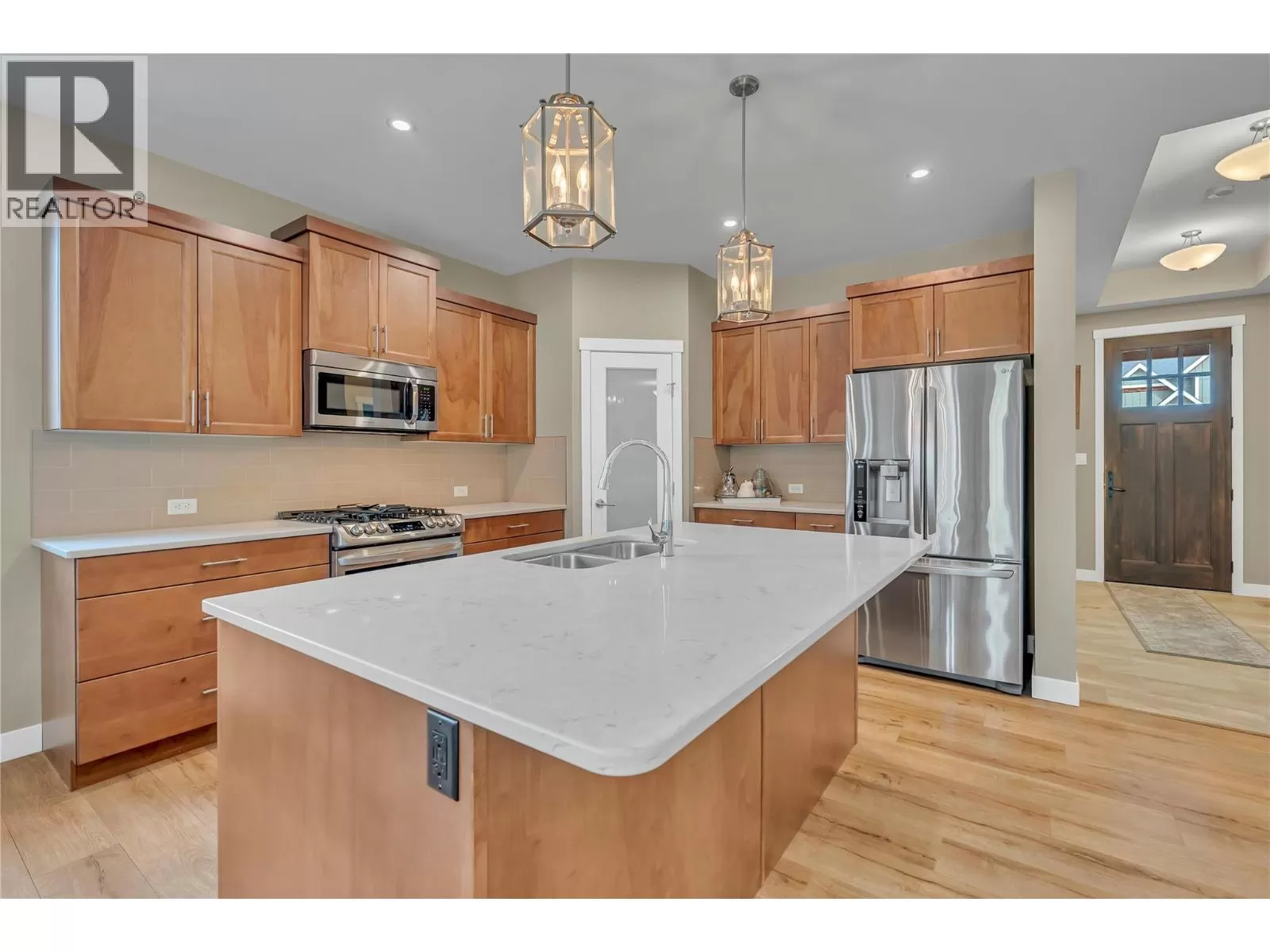 Welcome to Sendero Canyon. This beautifully cared-for, original-owner home features five bedrooms and quality finishes throughout. The main floor includes the primary suite with a walk-in closet and ensuite, a secondary bedroom, and a versatile den. The kitchen is thoughtfully designed with Caesarstone countertops, stainless steel appliances, soft-close cabinetry, and a spacious pantry. The lower level adds even more flexibility with three additional bedrooms, a large rec room, ample storage, and space that can easily be used for a gym, hobby area, or craftsâmaking this an ideal home for families of all sizes. Outside, the low maintenance landscaped backyard offers an oversized patio and underground irrigation, perfect for relaxing or entertaining. With trails, parks, and nature just steps from your door, this home offers not only comfort but also an exceptional lifestyle in the heart of Sendero Canyon. (id:27476)