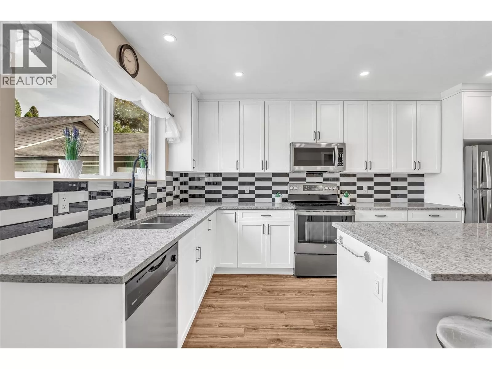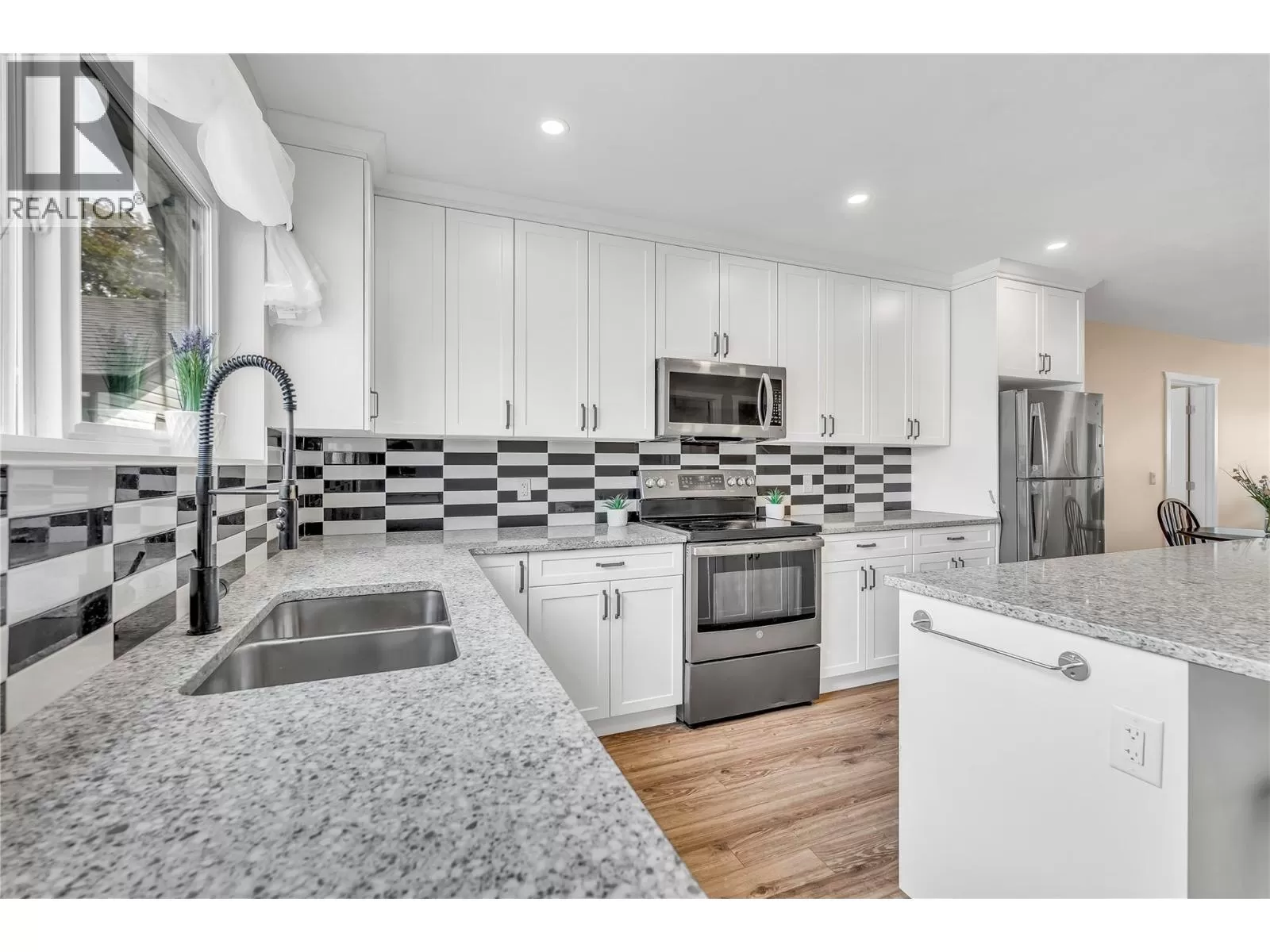 Spacious fully renovated 3 bdrm, 2 full bath rancher including Bonus detached 403 sq ft garage/studio with kitchen, heat and air conditioning creating additional useable space for year round use. Loft above studio allows for extra storage in addition to storage shed in back yard. The main house renovations include, new island kitchen, 4 pce and 5 pce bathroom, laundry, fresh paint, new siding, new flooring, new furnace and hotwater on demand, Added features are newer stainless steel appliances, stacking washer dryer, master bedroom with ensuite and large deck off kitchen for summer barbeques Low maintenance, fully fenced and irrigated flat yard for pets and kids. Additional parking with 2 driveways for boats and toys can accommodate up to 6 vehicles. RV parking area has sani dump for convenience. Studio may be converted back to covered parking with overhead door. Close to shopping, channel walkway and would suit retired couple or family. Book your appointment today. (id:27476)
