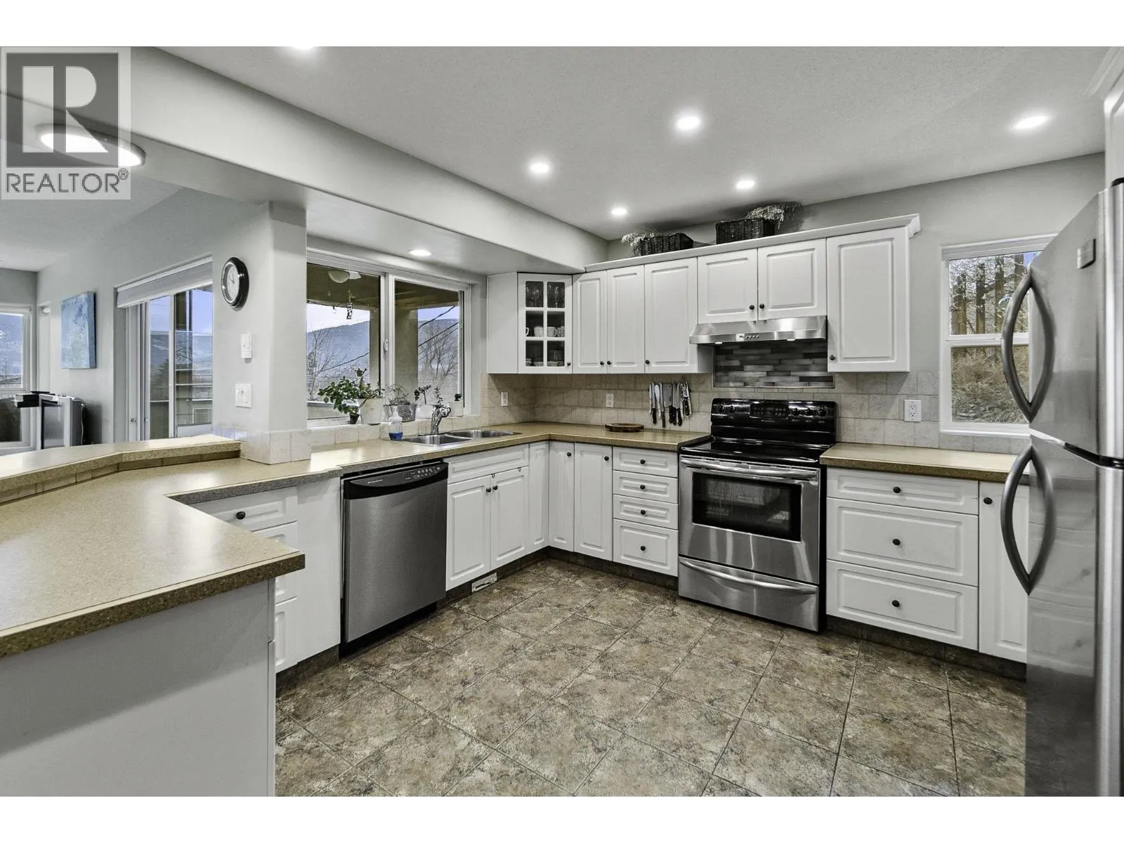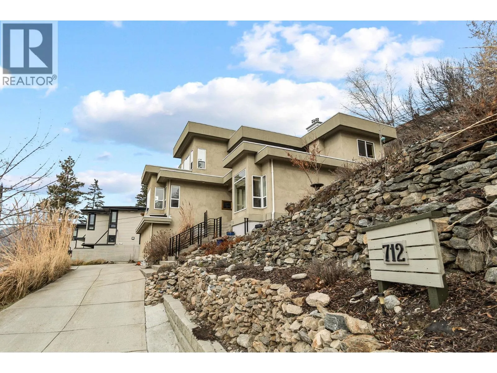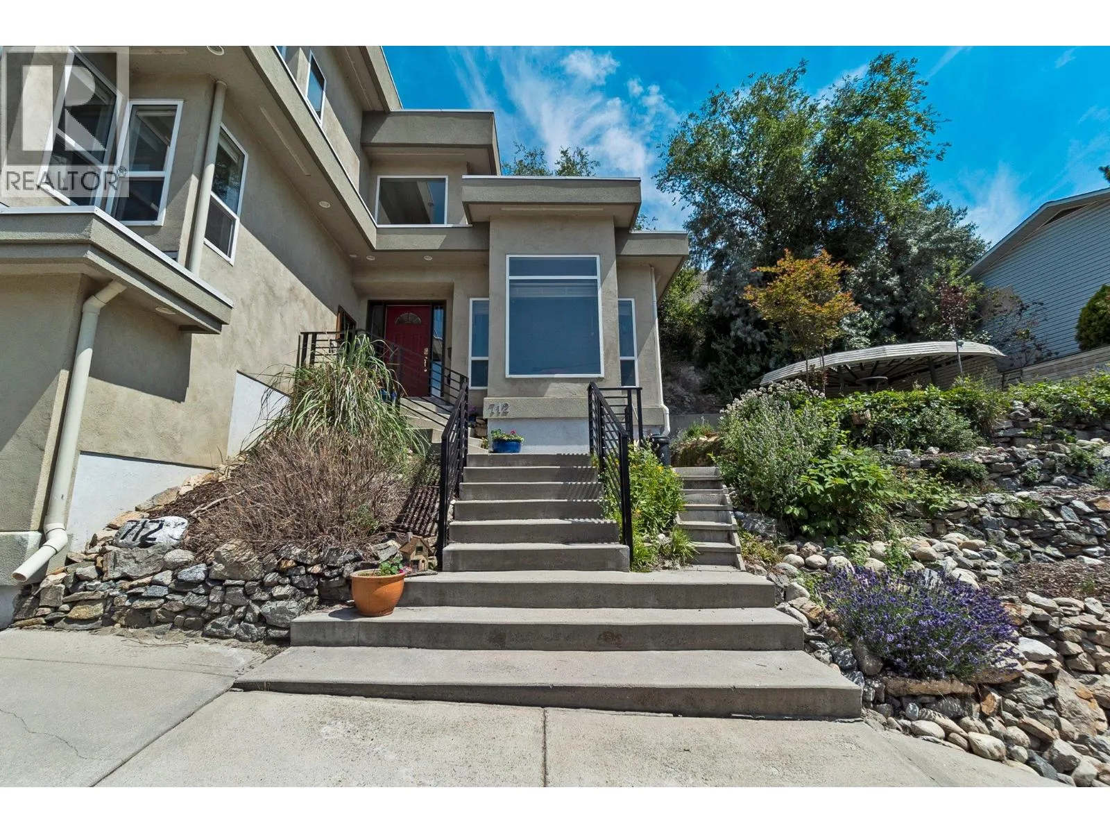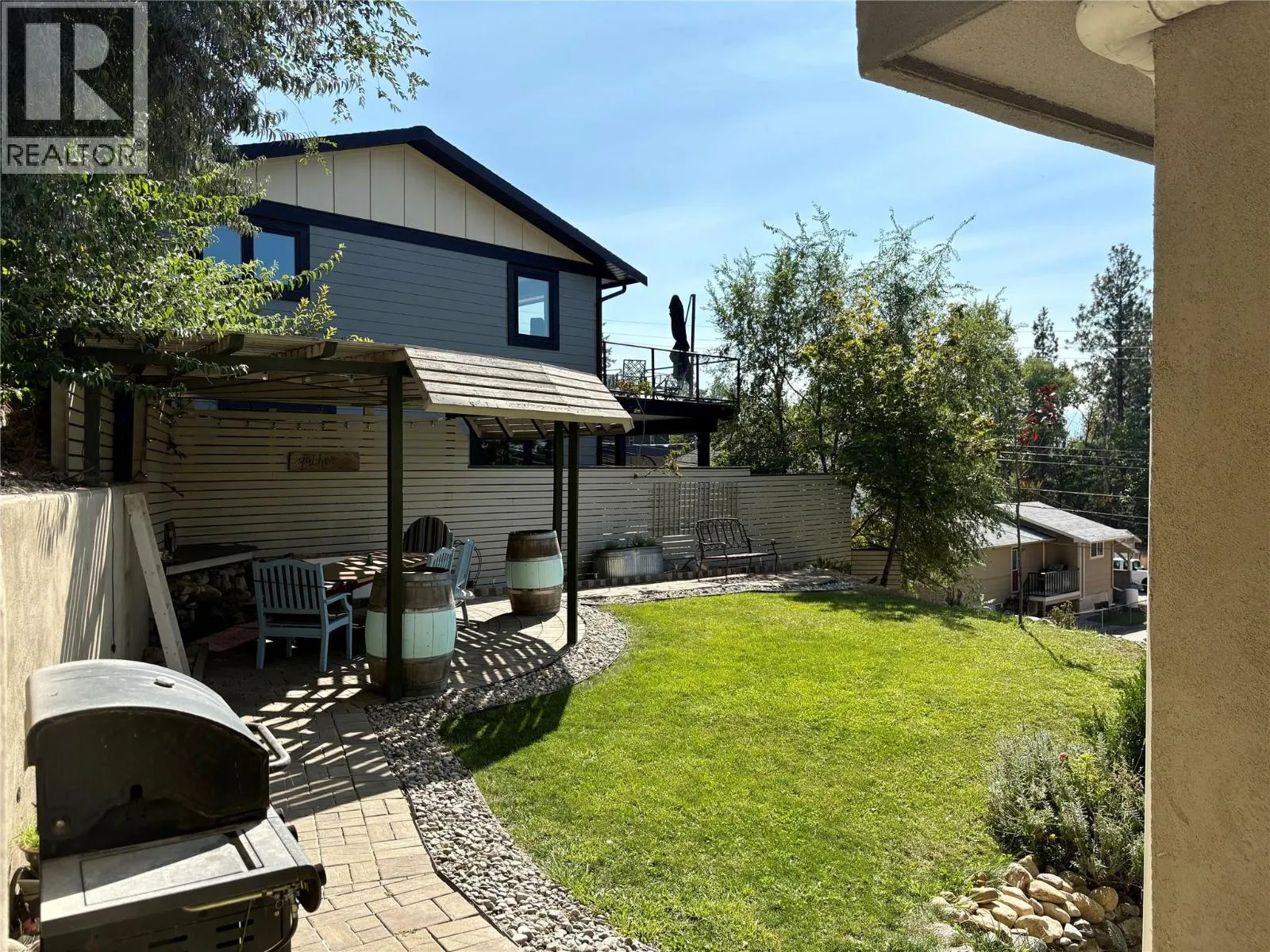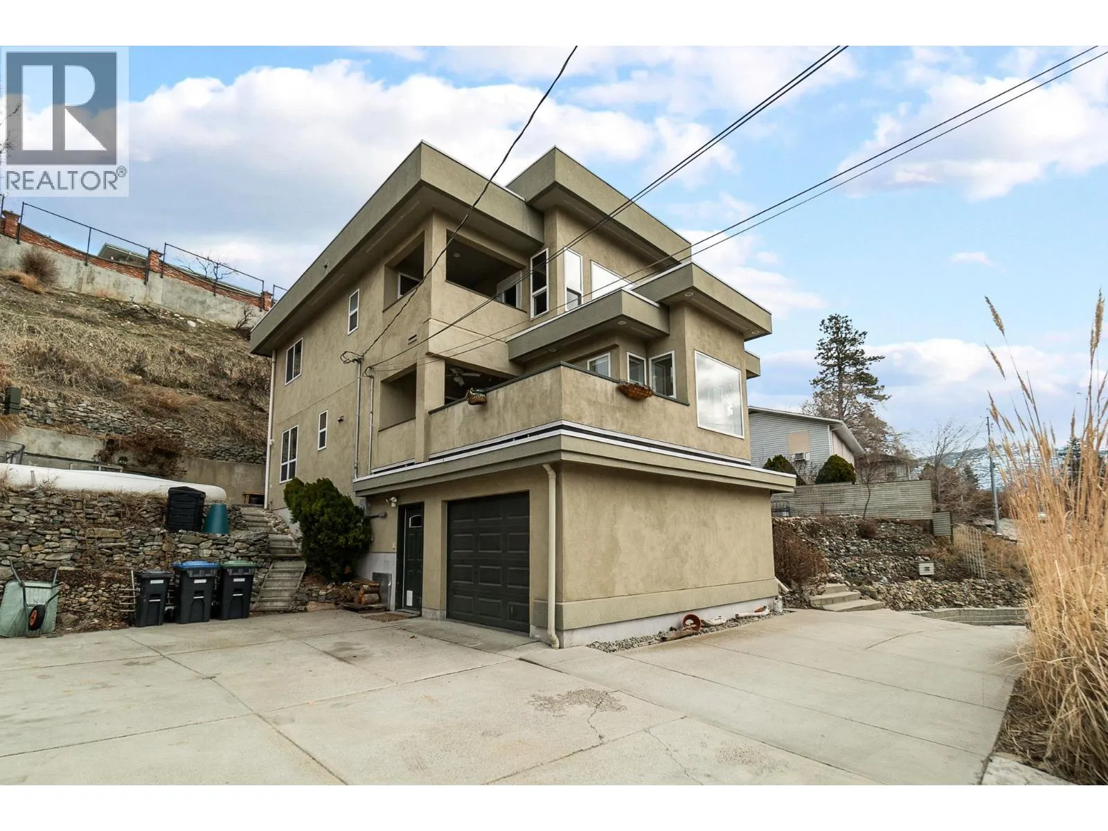 Welcome to your own private castle! This stunning & modern architecturally styled 5-bedroom, 4-bathroom house boasts wonderful city and sunset views and is located just steps away from walking/cycling trails accessing downtown shops, restaurants, beaches & breweries in the heart of Penticton. Spacious and contemporary, this home is perfect for large or growing families or those who love to entertain. With a beautifully designed floor plan, vaulted living room ceilings and plenty of large windows, this home is a dream come true. Imagine hosting dinner parties in the gourmet kitchen, cozying up fireside in the grand living room, relaxing in the luxurious master suite, or taking in the spectacular views from one of the multiple decks or the elevated garden gazebo. An ample garage means storage space for vehicles & toys with additional driveway parking. Don't miss your chance to live in one of Penticton's most desirable neighbourhoods. Supportive geotechnical report on file. All measurements approx. Contact your agent today (id:27476)