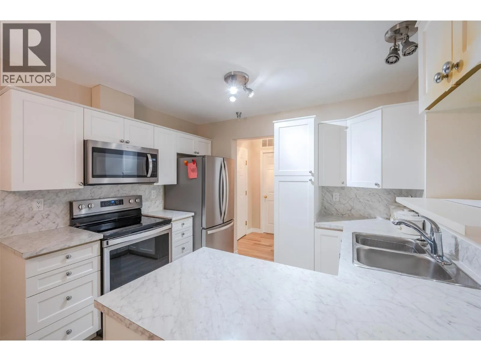 Cherry Lane Towers â A well-built concrete and steel 55+ complex, ideally located just steps from Cherry Lane Mall, offering easy access to banking, grocery stores, pharmacies, and more. Public transit and bike lanes are right outside the building. This bright 2nd-floor unit features 2 bedrooms and 2 bathrooms, with quick possession available. The recently updated kitchen sits next to a formal dining room, perfect for entertaining. The primary bedroom includes two closets and a full 4-piece ensuite, while the second bedroom is conveniently located near the second bathroom. The spacious living room has a cozy gas fireplace and opens onto a private, covered north-facing deck. Amenities include one secure underground parking stall, storage lockers, and a community room with a variety of activities. Pets are welcome with restrictions. (id:27476)