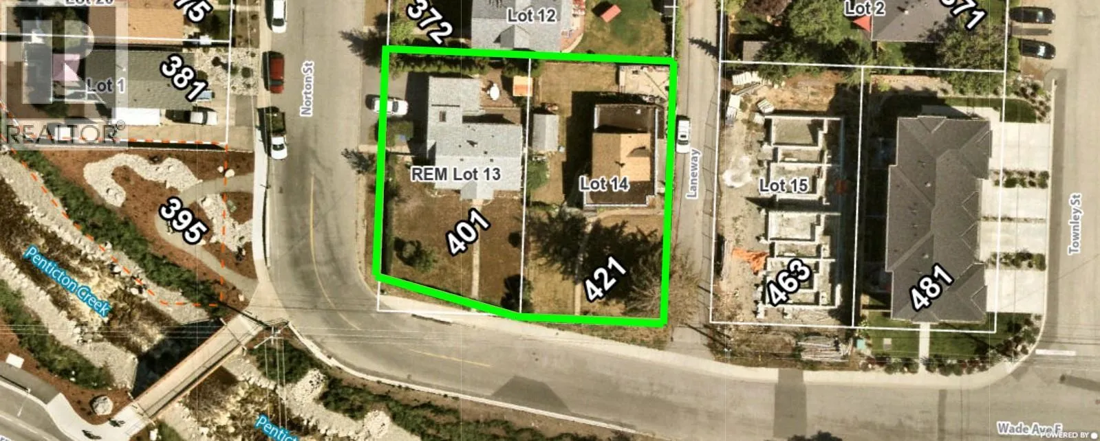 Creekside - Prime Development Opportunity in the Heart of Penticton. 421 Wade Avenue East presents an excellent opportunity for builders and investors. This prime .151 acre site offers 60 feet of street frontage & 110 feet of depth, with lane access on one side. Zoned R4-S, the property allows for multiple residential units, maximizing density and investment potential. The location is highly desirable, with easy walking access to the KVR Trail, Okanagan Lake, downtown Penticton, shops and restaurants. The neighborhood already shows strong precedent for multi-lot developments, making this property a smart addition to the growing area. Home is being Sold as Is Where Is. (id:27476)