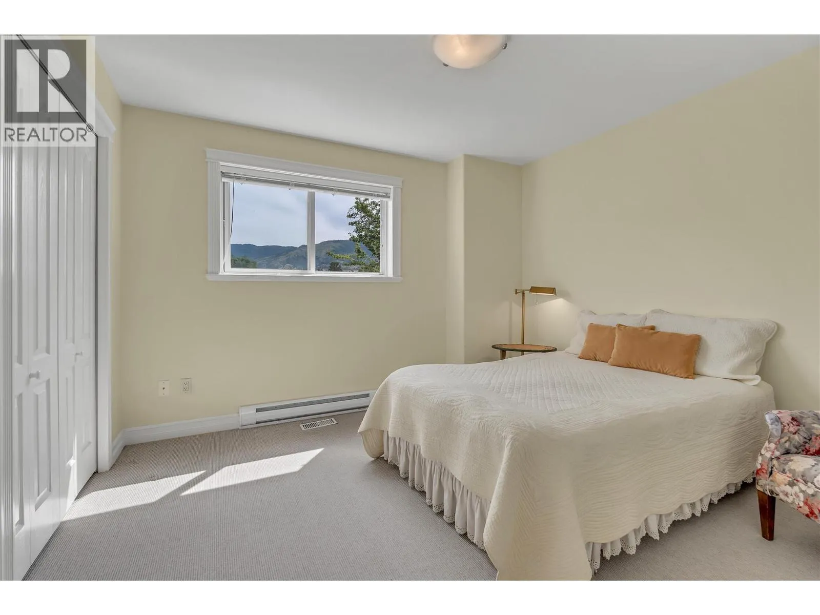 Corner Townhome Steps from Okanagan Lake! Welcome to Riverside Estate, a quiet and friendly gated community perfectly located just a few minutes from Okanagan Lake, popular restaurants, and all the amenities of downtown Penticton. This 2-bedroom, 3-bathroom corner townhome offers a bright and spacious main level with a functional kitchen and eating area, a comfortable living room with a cozy gas fireplace, and direct access to a private south-facing patio and large yard space - ideal for relaxing, entertaining, or summer barbecues. The main level also features a dining area, convenient powder room, and access to the 19' x 21' double garage, providing secure parking and ample storage. Upstairs, the generous primary bedroom includes a 3-piece ensuite, while a second bedroom, a 4-piece main bathroom, and laundry area complete the level. Riverside Estate is where one owner must be 55+. Only one dog or one cat (with restrictions). With its prime location and comfortable layout, this townhome is perfect for those looking to enjoy the best of Penticton living! Total sq.ft. calculations are based on the exterior dimensions of the building at each floor level & inc. all interior walls & must be verified by the buyer if deemed important. (id:27476)