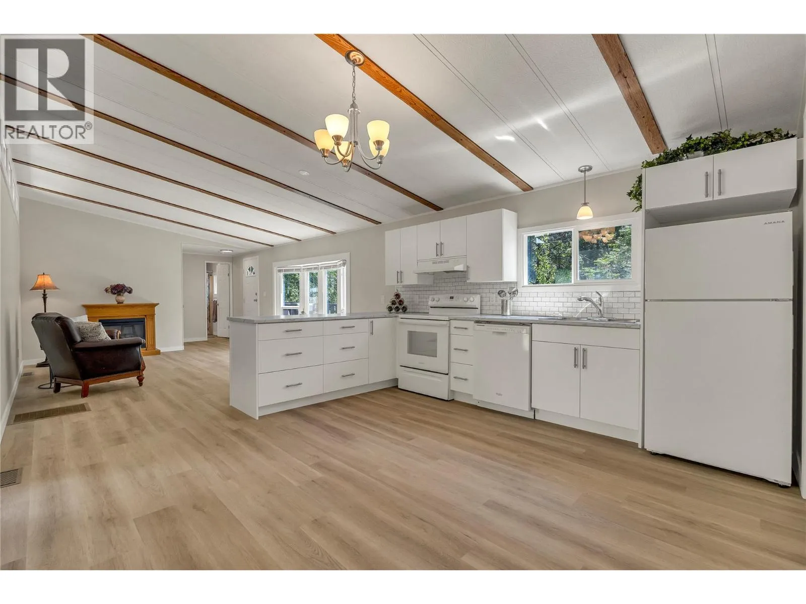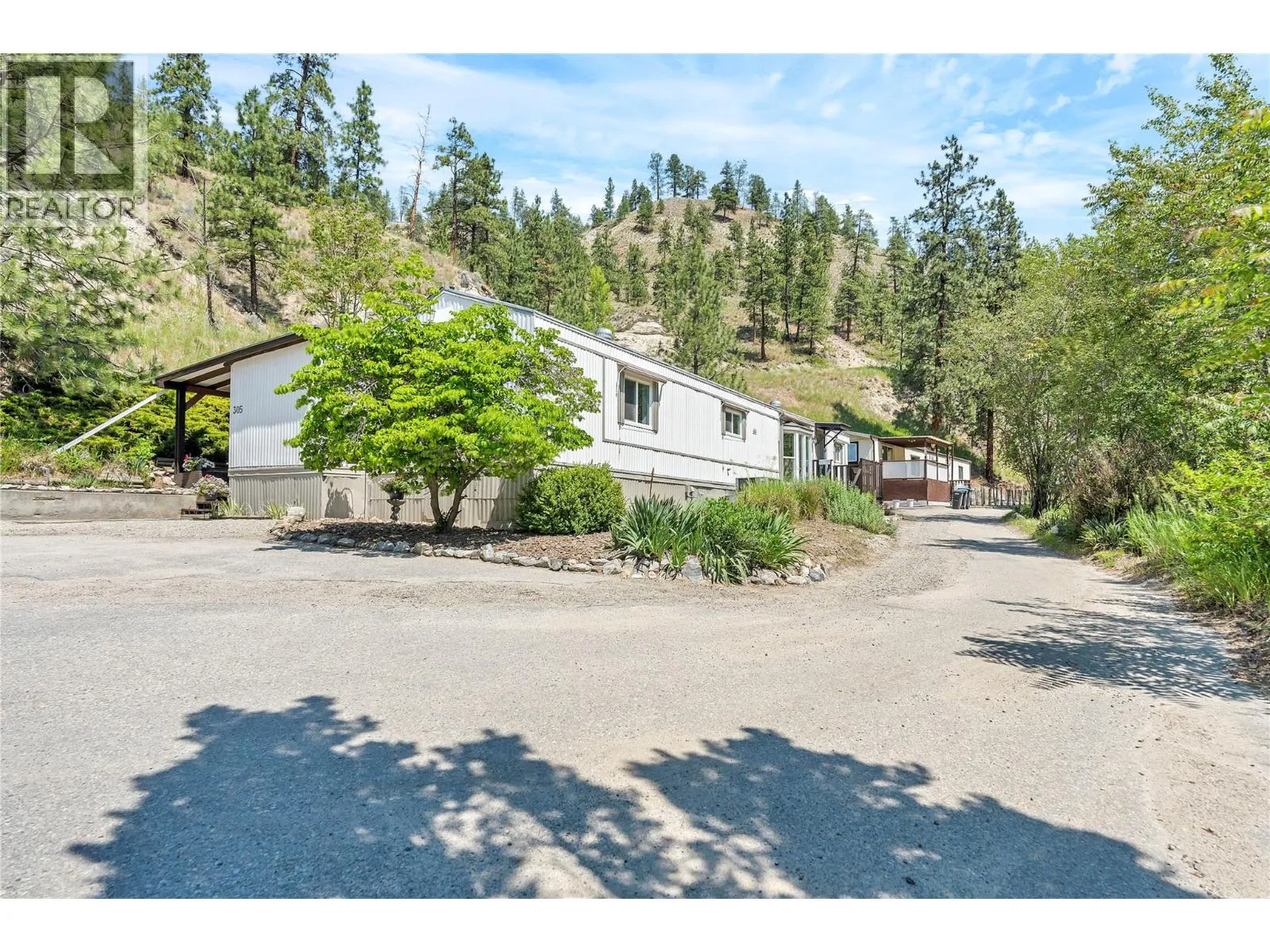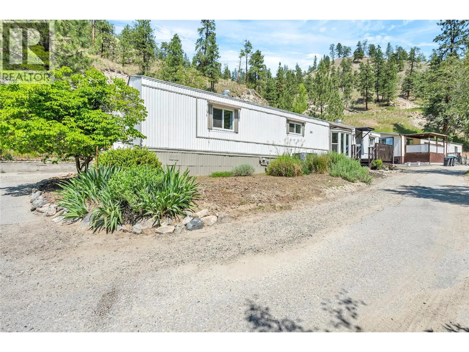 Welcome to Pleasant Valley, one of the most unique mobile home parks in the Okanaganâjust a short, level drive to the heart of Penticton. Surrounded by nature and bordered by the ever-flowing, beautiful Penticton Creek, this park offers a peaceful setting unlike any other. This substantially renovated 3-bedroom, 2-bathroom home is tucked away in a private, low-traffic area across the creek, where the soothing sound of water and the natural surroundings create a serene atmosphere. The home feels far from a typical mobile, with its high shed-style ceilings, abundant natural light, and absence of narrow hallways. Inside, the impressive renovations include a new kitchen and bathrooms, updated flooring throughout, fresh interior and exterior paint, modern light fixtures, and plumbing. Outside, the spacious yard is ideal for outdoor living and hobbies, featuring a large covered deck, a flat and private backyard, and even a small patio area overlooking the creek. There is ample parking, and the park also offers RV parking (subject to availability and a monthly fee). Pleasant Valley is a well-managed 55+ community that allows two pets (size restrictions apply). (id:27476)