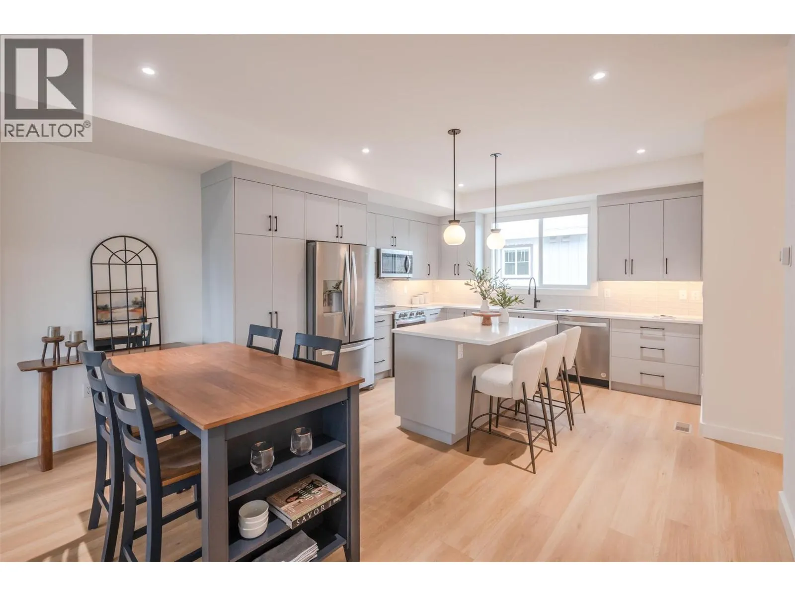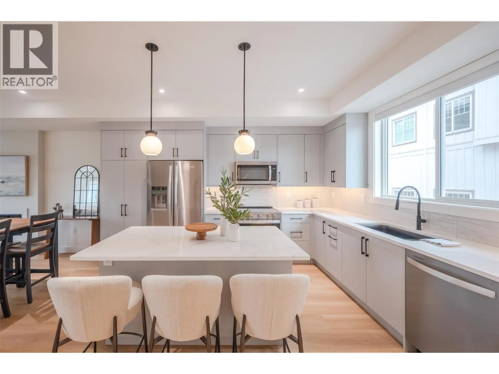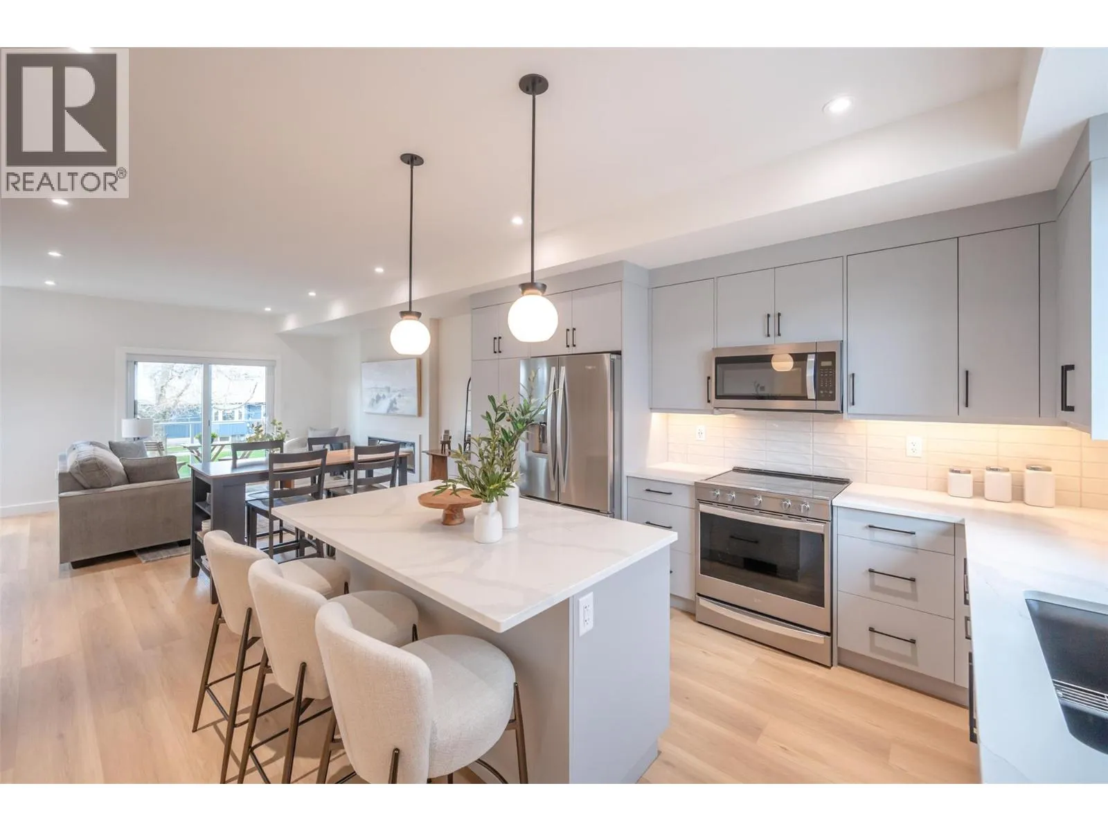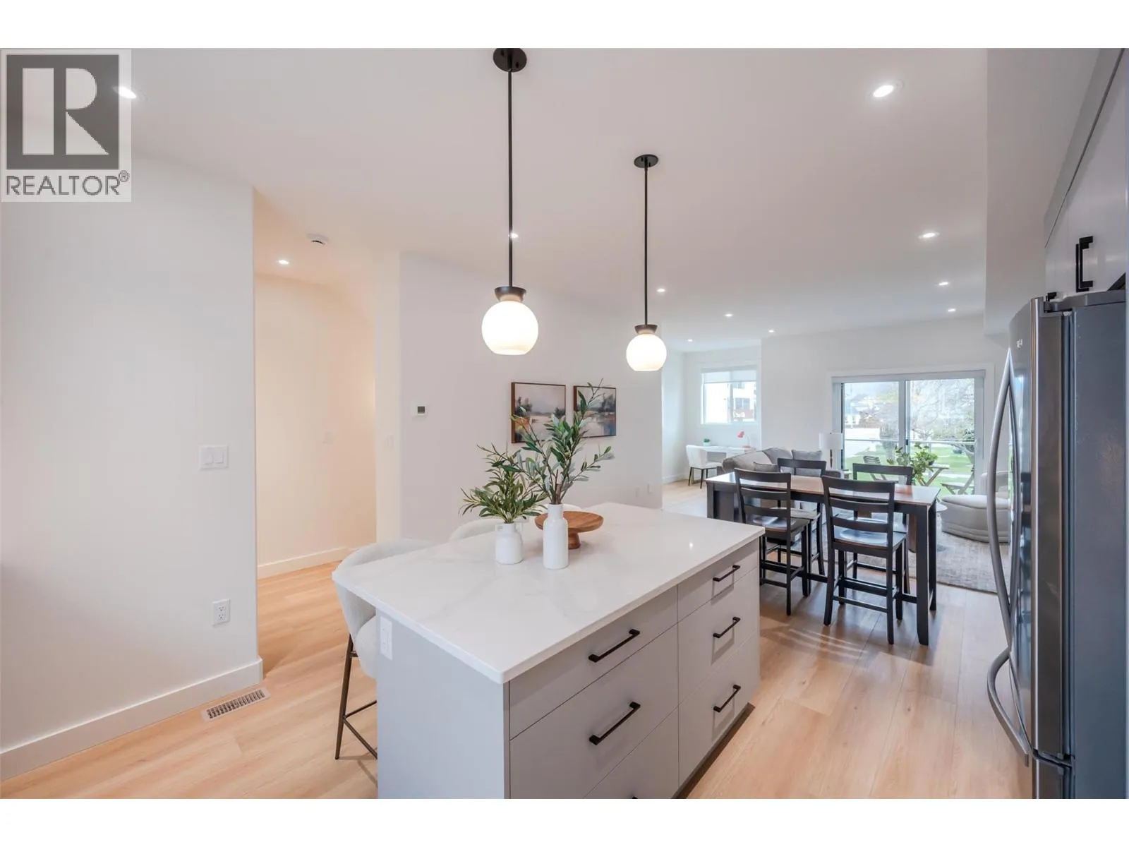*PUBLIC OPEN HOUSE | SATURDAY NOVEMBER 22nd | 1:00pm to 2:30pm* This bright & modern 1,541 sf 3 storey townhouse is finished with 3 beds & 2.5 baths. Open-concept main floor showcases a luxury kitchen with an upgraded appliance package & beautiful quartz counters. The living room features electric FP by Dimplex. The slider patio door lets in lots of natural light and leads you to the covered deck with room for bbq & seating. The complimentary light gray cabinets and stunning quartz countertops pair well with any fabrics and furnishings making this home customizable for your liking. The third floor consists of your 3 bedrooms, primary ensuite, 1 full bath and a laundry closet. The primary bedroom is complete with an ensuite, that includes a tiled shower. A convenient full sized stacked washer & dryer are accessible from all bedrooms. The lower level has your spacious single car garage, foyer, entry closet & access to the spacious, fenced backyard. Garage comes pre wired for an electric car charger! Located close to local coffee shops, breweries, Okanagan Lake, and Penticton's downtown core! 2/5/10 Year New Home Warranty. Bonus for First-Time Homebuyers: Take advantage of possible GST exemption, making this the perfect opportunity to step into homeownership at a lower cost. Eligible first-time home buyers may also qualify for a full GST rebate, adding even more value. For details contact the listing agent! (id:27476)
