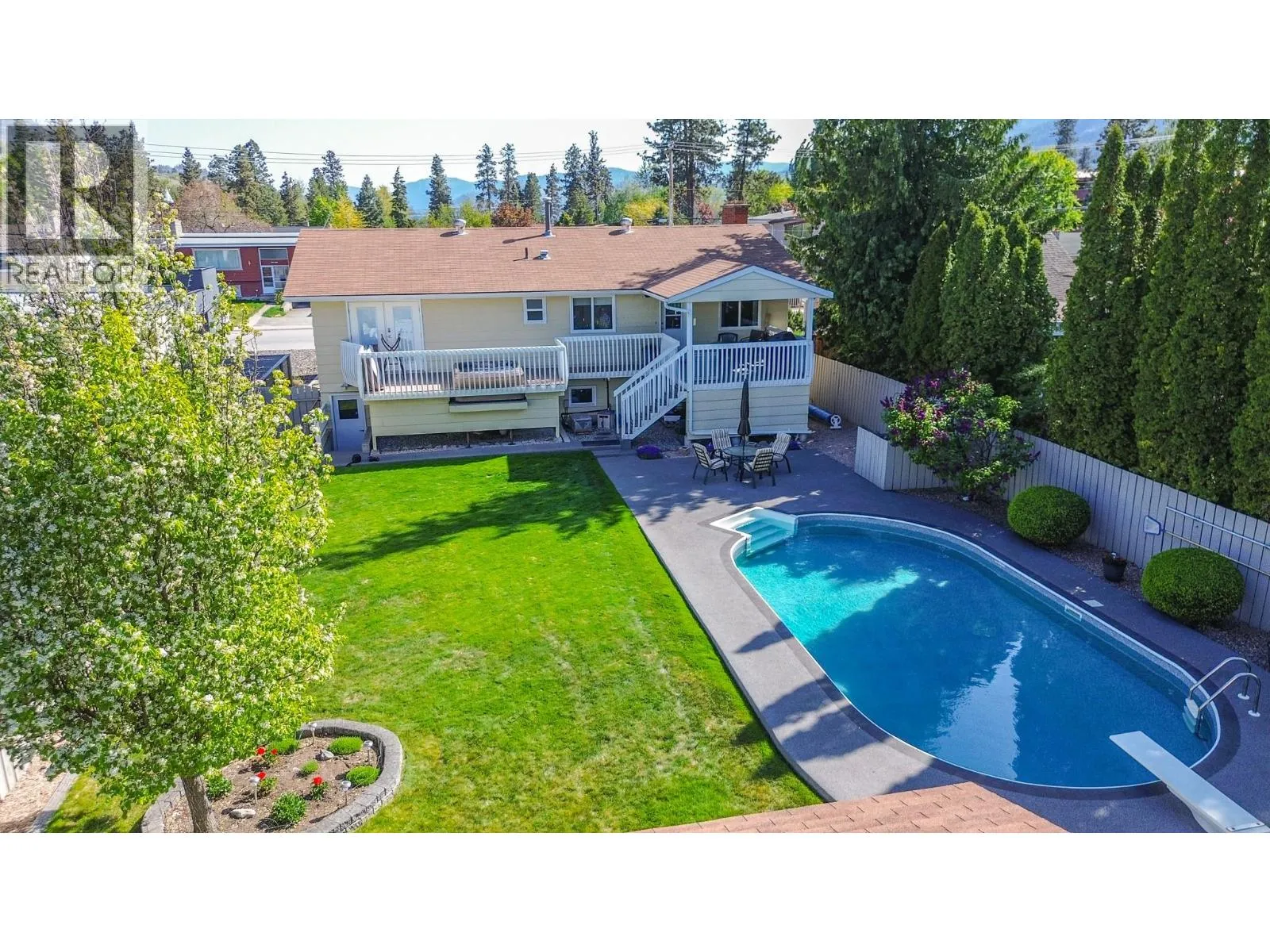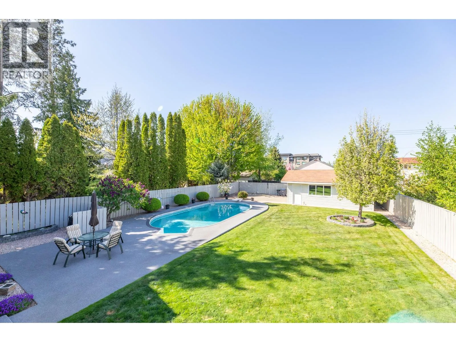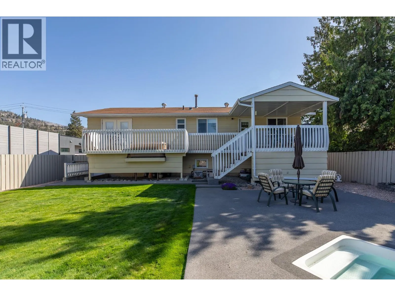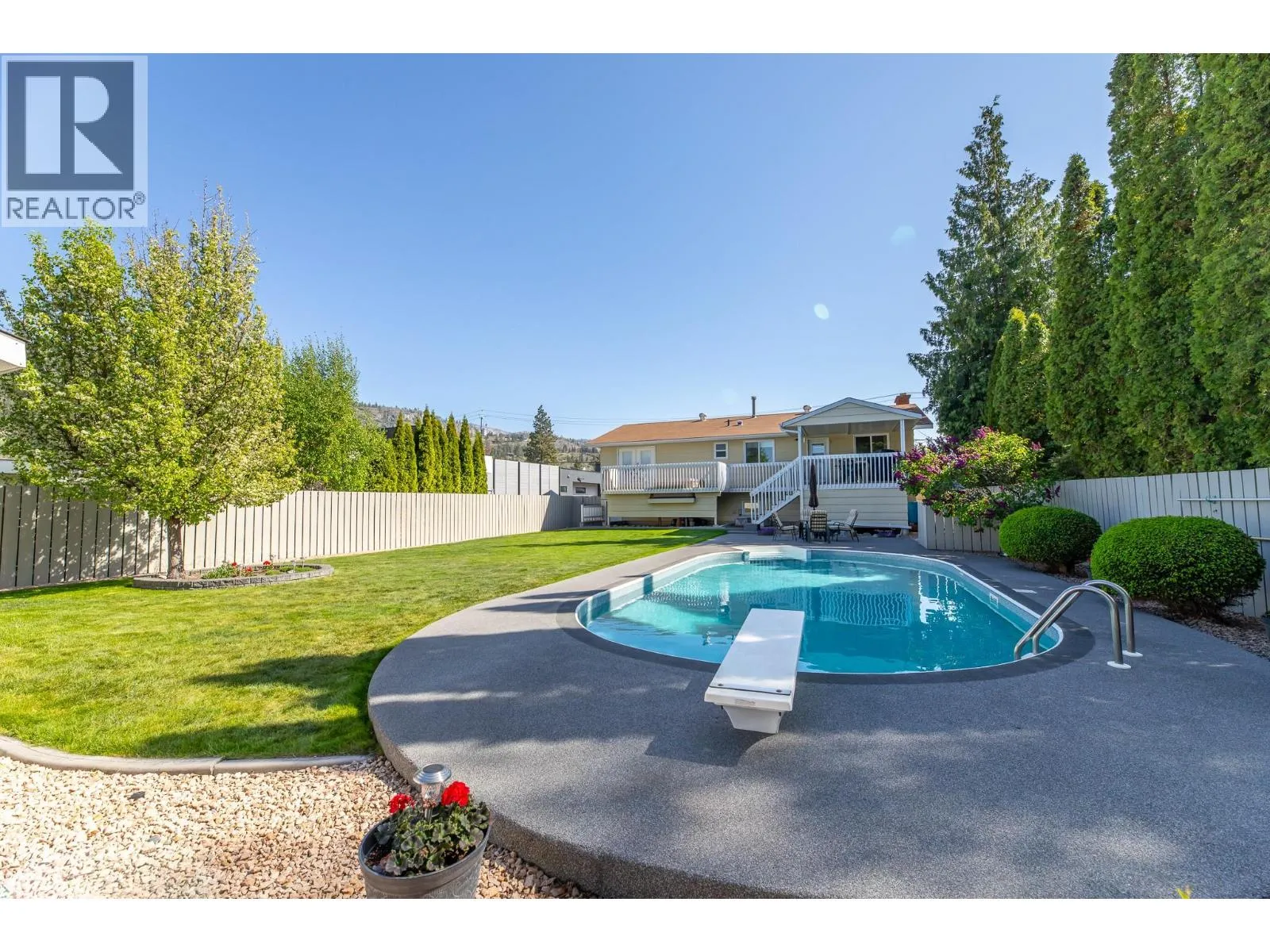 Contingent. Welcome to coveted Lee Avenue!! This immaculately maintained family home is a 2 min. walk to famous Skaha Lake, beach, marina & park & comes with a meticulously maintained private fenced back yard oasis featuring an in-ground swimming pool w/ rubber decking all around, diving board and new pool liner for enjoying refreshing summer dips w/ family & friends. Living here feels like you are on a full time vacation! Overlooking the pool is a covered porch ideal for entertaining & dining on warm summer nights & luxuriating in your private hot tub also on the upper deck. Guaranteed to be a family favorite! This 4 bed, 3 bath 2720 SF home on two levels has room for everyone. The upper level features open concept living/dining w/ a large window allowing streams of natural sunlight & acozy wood burning fireplace to enjoy. The dining room opens to the covered porch & the kitchen window affords a view of the whole back yard & pool. The primary bedroom features french doors opening to the deck & hottub, his & hers closets & a 2 pc ensuite. Two additional bedrooms/den complete the layout. Downstairs, with its own entrance, large storage room, huge bedroom that can sleep 4 & massive family room with wood burning fireplace, there is room for a pool table, relaxing, entertaining & much more! The detached insulated 220 double garage is ideal for a workshop, vehicles & toys and there is space in front for your RV & boat. This home is a must see! Come view today! (id:27476)