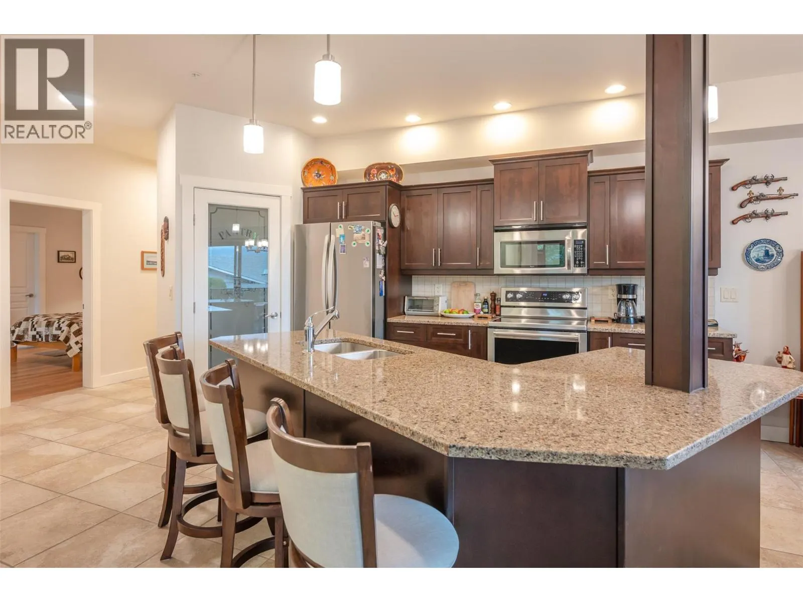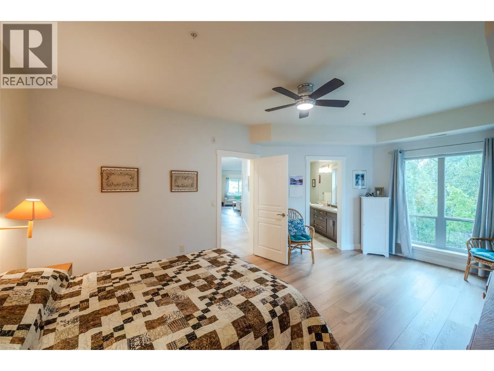 This beautiful bright two bedroom and two bathroom condo in the ""Creekside"" on Forestbrook Drive with three decks for outdoor living space is only one of four that faces Penticton Creek. This is not your average condo and won't last long. The spacious primary bedroom has a five piece ensuite, walk in closet, and private East facing balcony. The designer kitchen features a large breakfast bar island with granite countertops and full pantry. Awesome layout with spacious living room, access to the large beautiful deck facing the creek, adjacent dining area, West facing deck, separate laundry room, four piece main bath, and spacious second bedroom. Gas BBQ hook up on the deck, same floor storage locker, secure heated underground parking, and located minutes from downtown. There is no other condo like this on the market! Call the Listing Representative for details (id:27476)