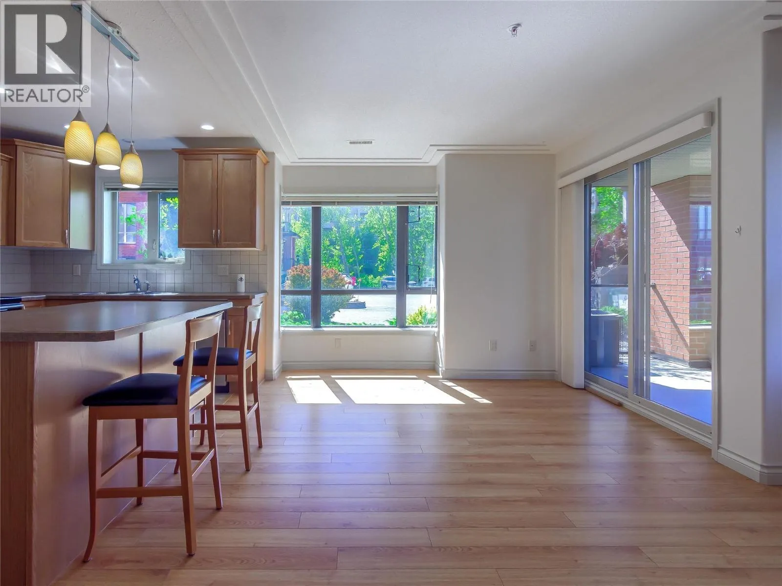 BEST PRICED CORNER UNIT IN THE COMPLEX! Welcome to easy living in this bright, move-in ready condo located in Phase 2 of Athens Creek Towersâperfectly positioned on the first floor as a SW CORNER unit, just steps from the main entrance, elevator, and your underground secured parking stall. Whether you're downsizing or looking for a low-maintenance lifestyle, this home has it all! This 2 bedroom, 2 bathroom unit offers a smart open layout with laminate flooring throughout, large windows wrapping around the living space for natural light all day, and a gas fireplace you can enjoy from the kitchen, dining, and living areas. The spacious patio expands your living space even further. The kitchen boasts plenty of cabinetry and a large island with bar seating. The primary bedroom includes a walk-in closet and ensuite with a walk-in shower, while the second bedroom is perfect for guests, hobbies, or a home office. Modern comforts include hot water on demand, central heating and cooling, and in-suite laundry. There's also ample in-unit storage to keep everything tidy, while also having a designated secured storage locker underground aswell. Step outside and youâre literally across the street from Cherry Lane Mall, Save-On-Foods, London Drugs, banks, pharmacies, a walk-in clinic, and Lions Park. Pet-friendly building allows 2 pets (dogs or cats). Enjoy access to great amenities like a fitness room, library, and regular social events. Quick possession possible (id:27476)