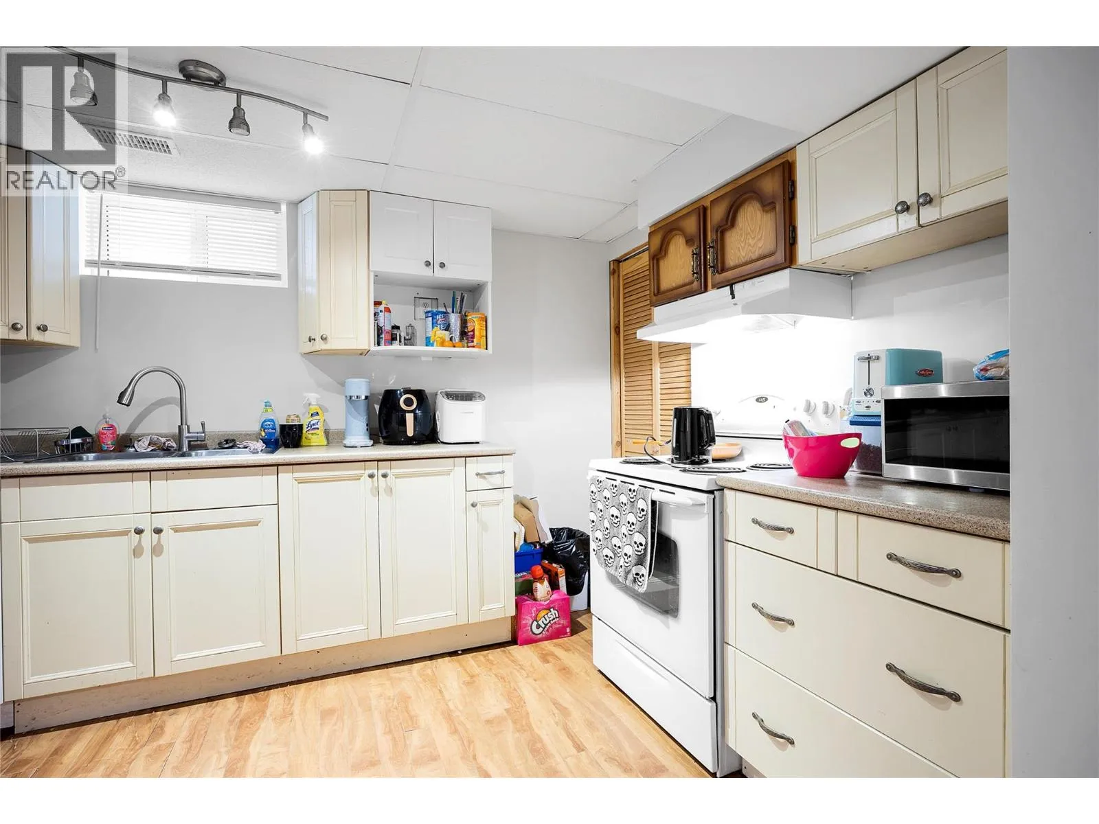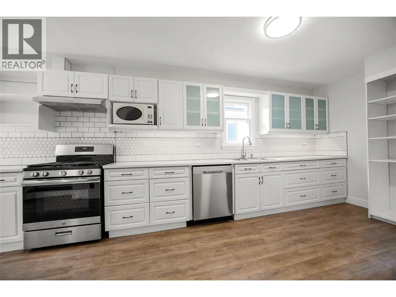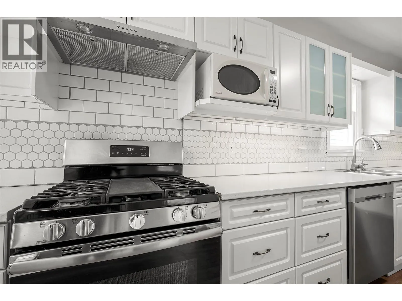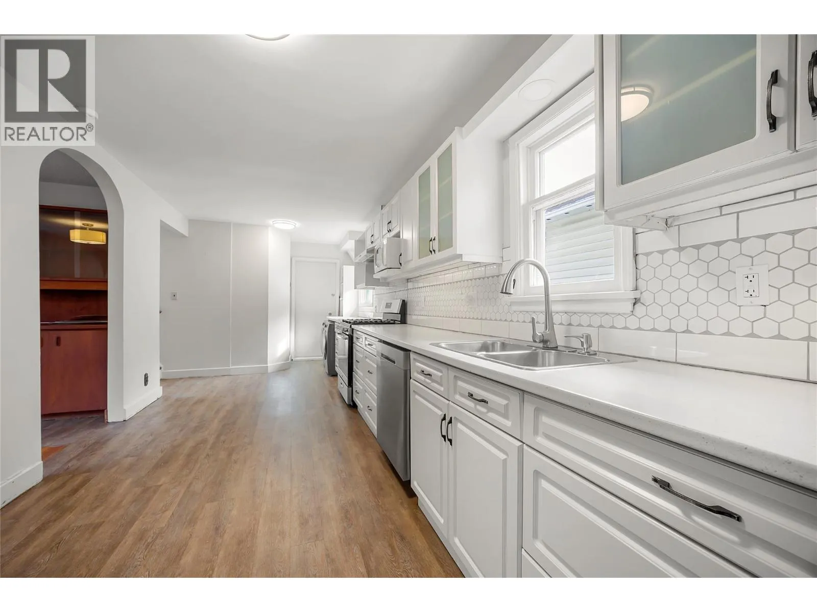 Adorable Character home in the heartbeat of the Okanagan. This 1945 built home has been lovingly cared for throughout its life. Offering a massive open living and dining space, complete with coved ceilings and original hardwood flooring. The Kitchen has been recently renovated offering heaps of (new) counter space and cabinet storage, under cabinet lighting and beautiful tiled backsplash. The main floor is completed by a fresh 3 piece bathroom with comer shower. Upstairs you will find generously sized bedrooms including a sprawling primary bedroom with double closets, uncommon in this vintage of home, as well as a beautifully remodeled bathroom which hosts double sinks and a spectacular tiled tub surround. The home offers a full 2 bedroom basement suite with full kitchen and separate laundry. While seated on a 30'xl 17' lot, you also find a garage with alley access and RV Parking. Only moments to the beach, parks and amenities, this home is ready for its new owners! All measurements are approximate and should be verified if fundamental. (id:27476)
