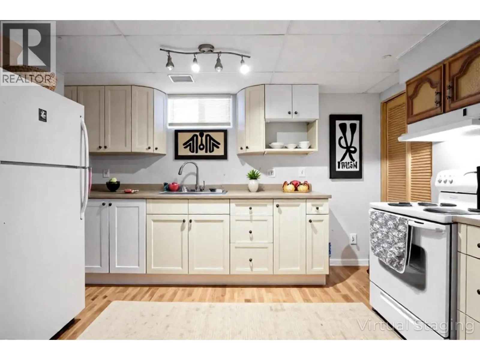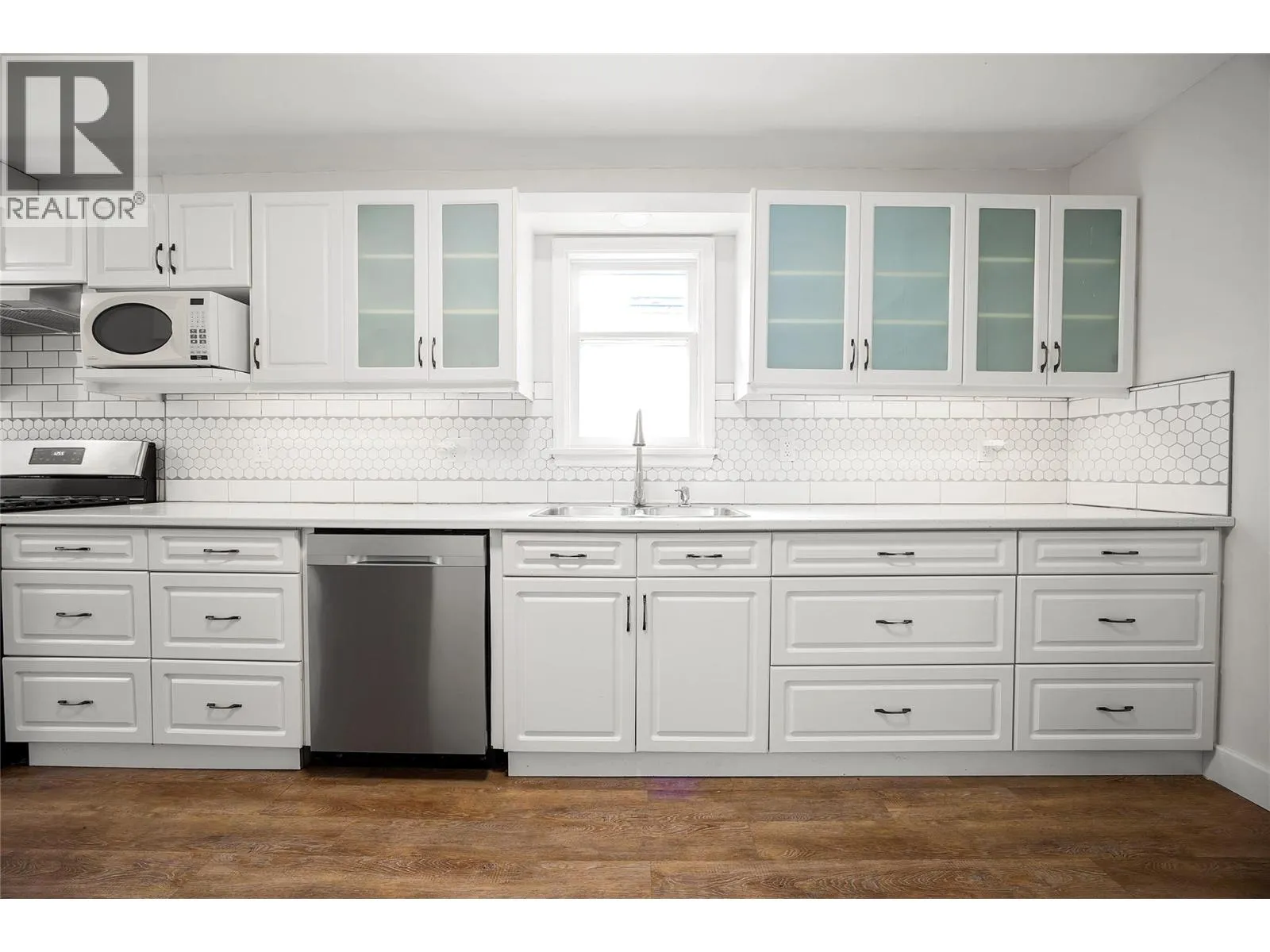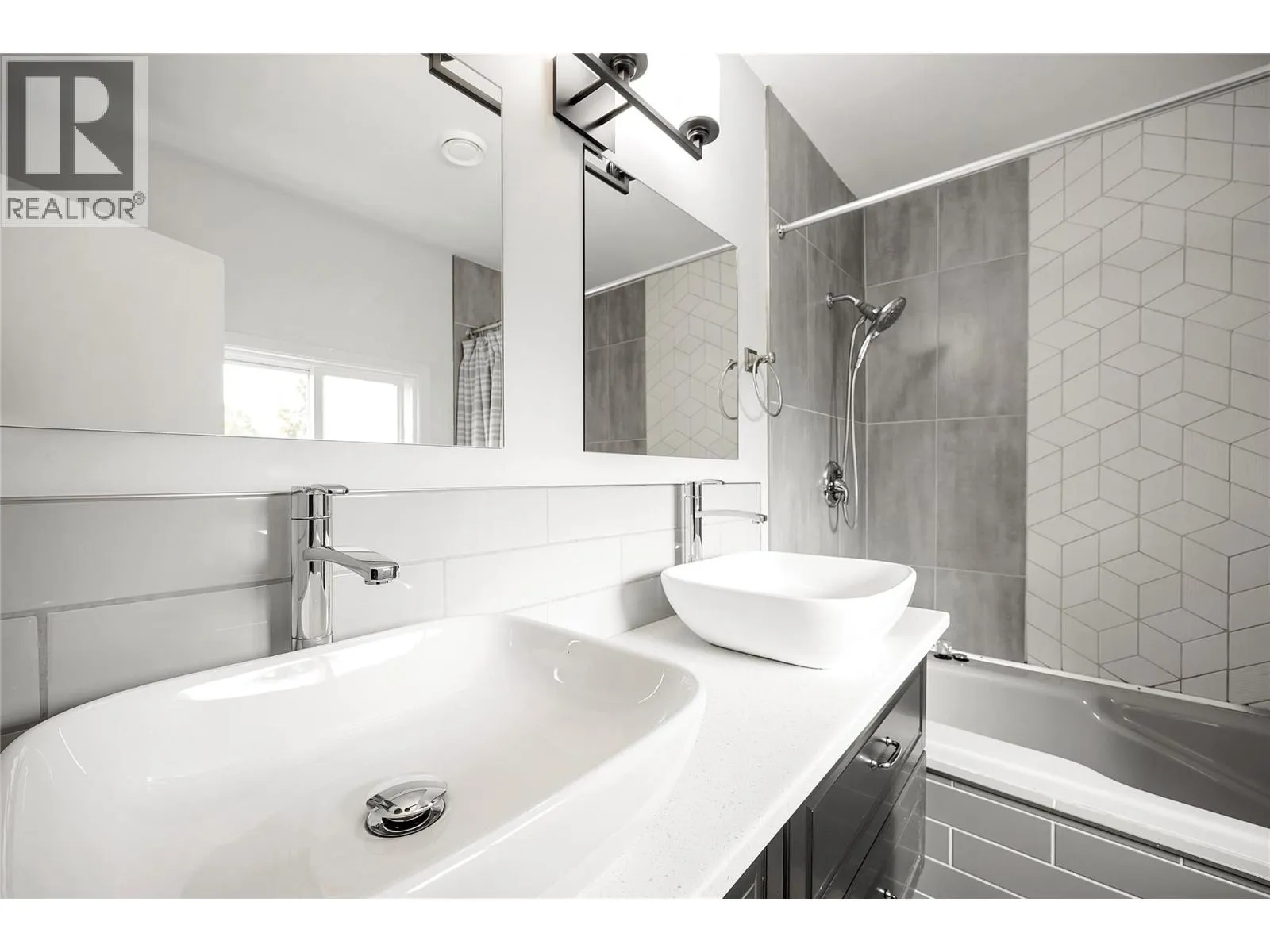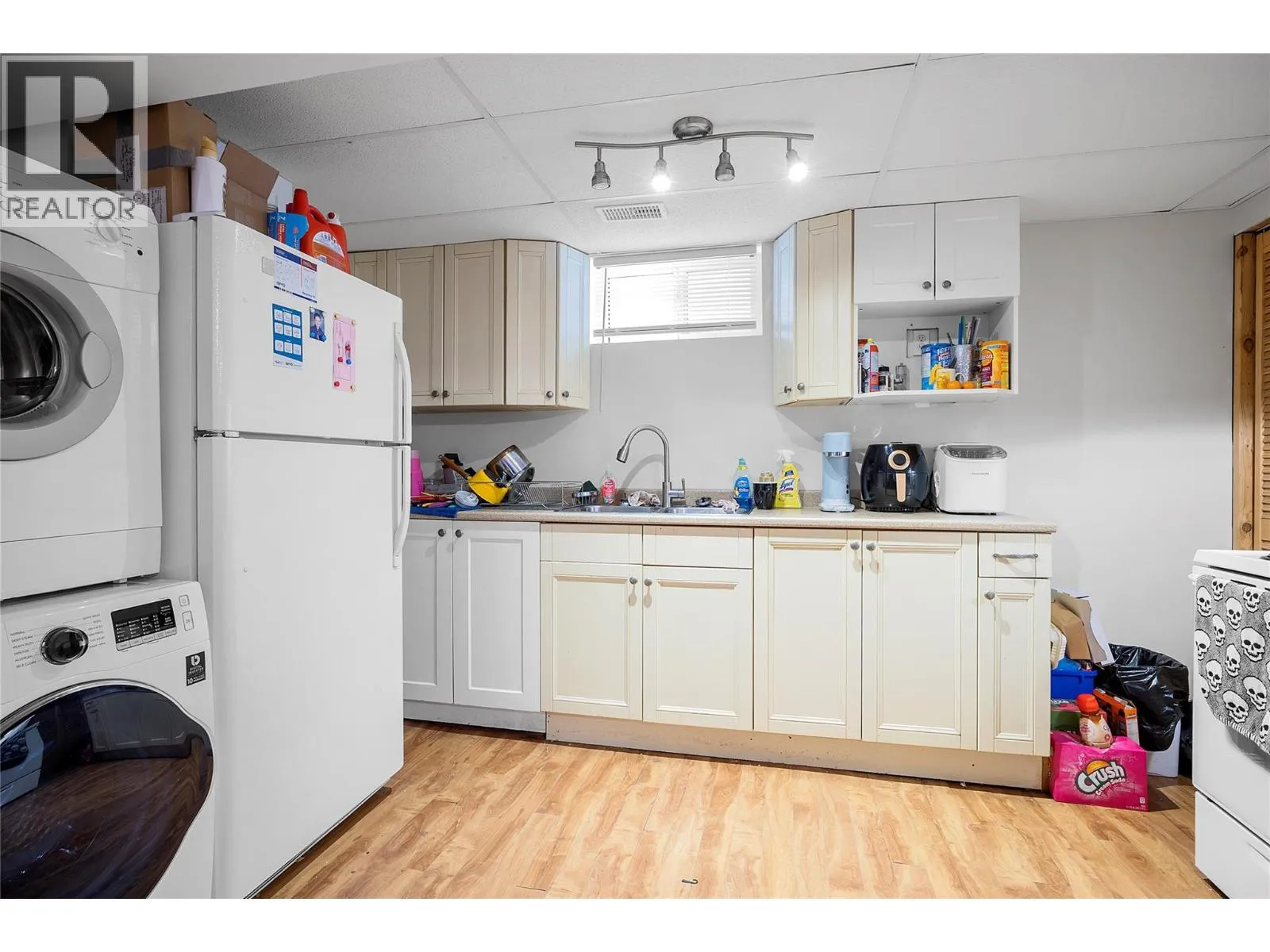 Adorable Character home in the heartbeat of the Okanagan. This 1945 built home has been lovingly cared for throughout its life. Offering a massive open living and dining space, complete with coved ceilings and original hardwood flooring. The Kitchen has been recently renovated offering heaps of (new) counter space and cabinet storage, under cabinet lighting and beautiful tiled backsplash. The main floor is completed by a fresh 3 piece bathroom with comer shower. Upstairs you will find generously sized bedrooms including a sprawling primary bedroom with double closets, uncommon in this vintage of home, as well as a beautifully remodeled bathroom which hosts double sinks and a spectacular tiled tub surround. The home offers a full 2 bedroom basement suite with full kitchen and separate laundry. While seated on a 30'xl 17' lot, you also find a garage with alley access and RV Parking. Only moments to the beach, parks and amenities, this home is ready for its new owners! All measurements are approximate and should be verified if fundamental. (id:27476)