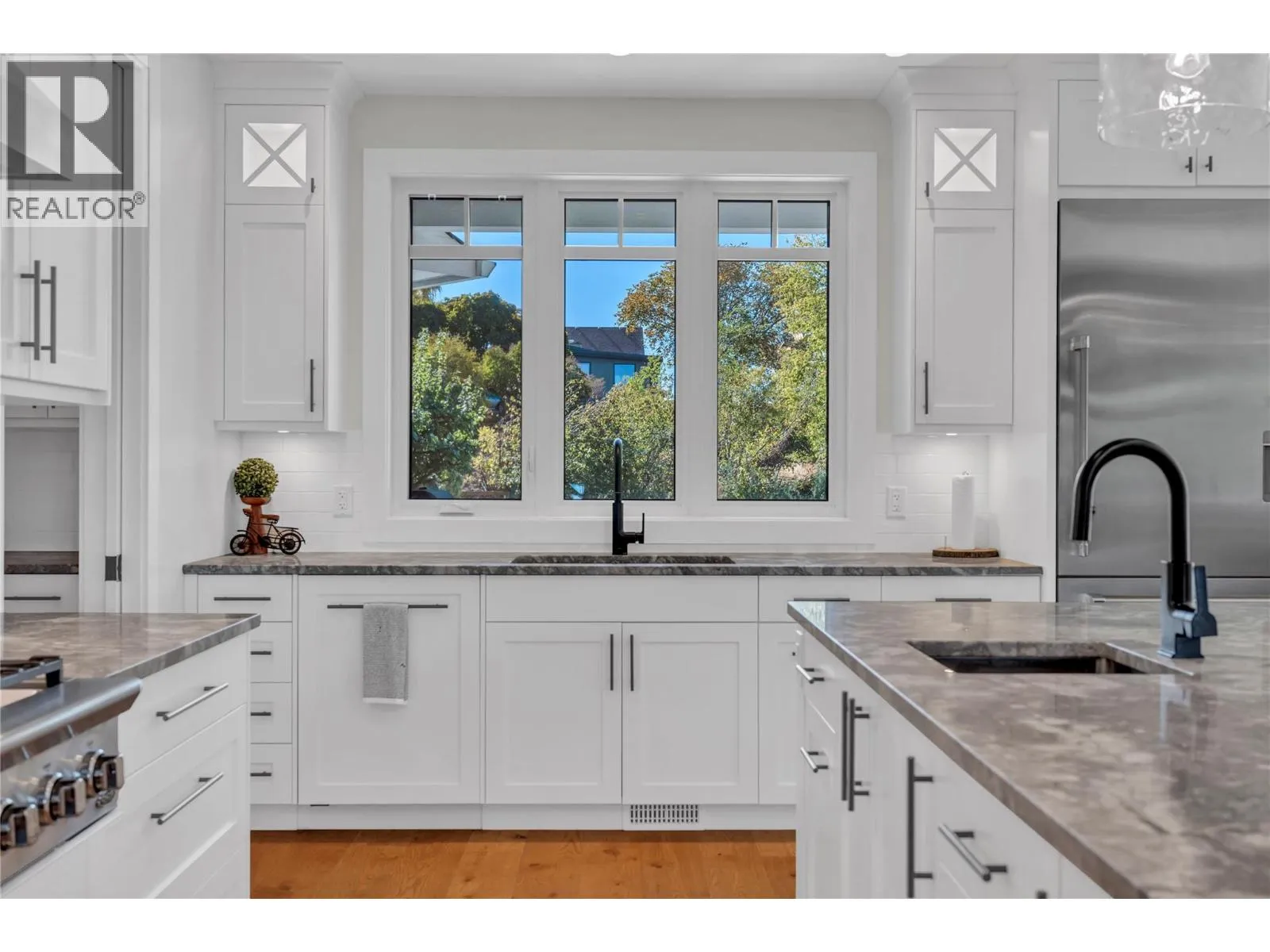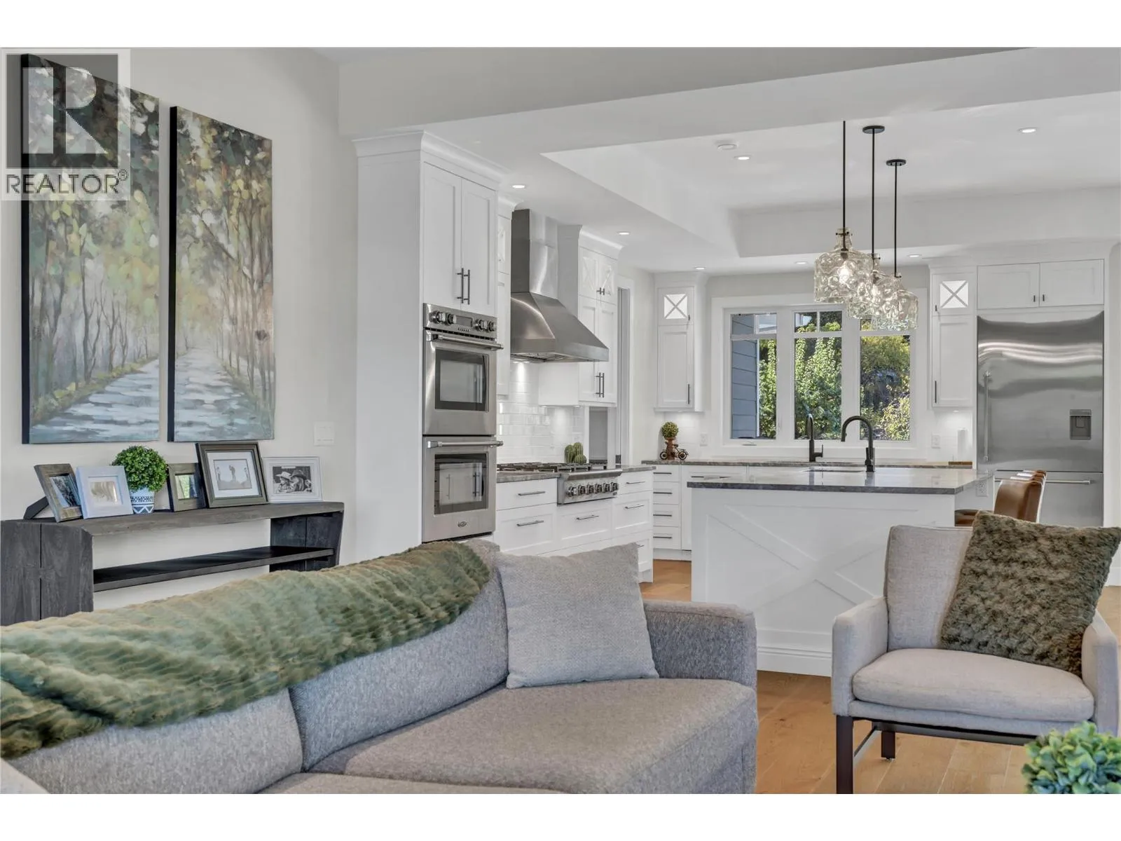 Comfort and sophistication blend perfectly in this exceptional custom Craftsman-style home offering stunning views of Okanagan Lake and surrounding vistas. Designed and built by Ritchie Custom Homes and positioned on a large, private lot beside the KVR Trail, in one of Penticton's most sought-after neighbourhoods, this home provides a rare combination of privacy & amazing views, while still being within walking or biking distance from the best Penticton has to offer. The spacious living areas are filled with natural light, while high ceilings & and custom millwork create a warm and inviting atmosphere for the whole family. The open-concept main floor features a chefâs kitchen with a large island & high-end appliances, and a seamless flow into the living and dining areas, perfect for entertaining or everyday living. The primary suite offers spectacular views, a spa-inspired ensuite, and a generous walk-in closet. Additional bedrooms are well-appointed, providing flexibility for family, guests, or home office space. Thoughtful design elements are carried throughout the home, including beautiful lighting, wide-plank oak flooring, and quality craftsmanship at every turn. outside, enjoy the saltwater pool, two lakeview patios, and professional landscaping. This tranquil oasis takes full advantage of the stunning setting, full fencing, and incredible privacy, combining luxury, lifestyle, and location like few others. Contact your Realtor® or the Listing Advisor today to book your private showing. All msmts approx. (id:27476)