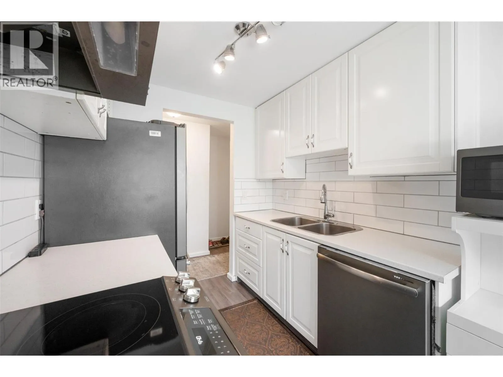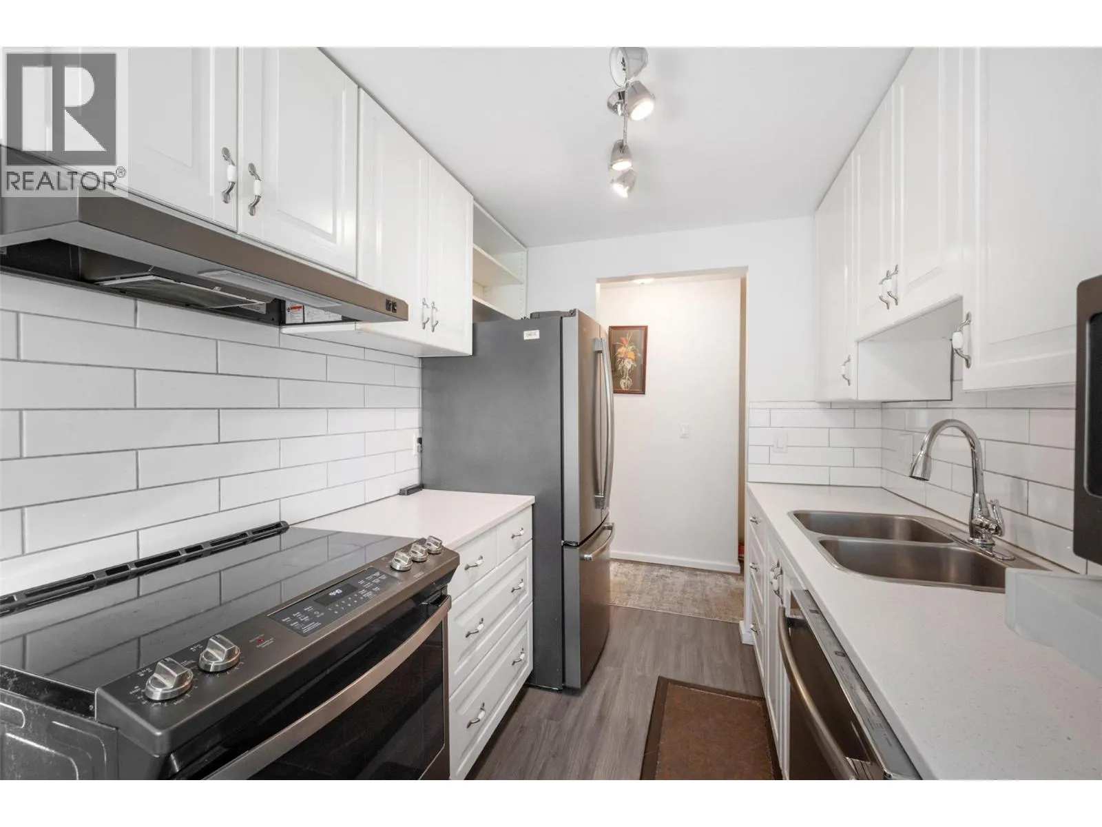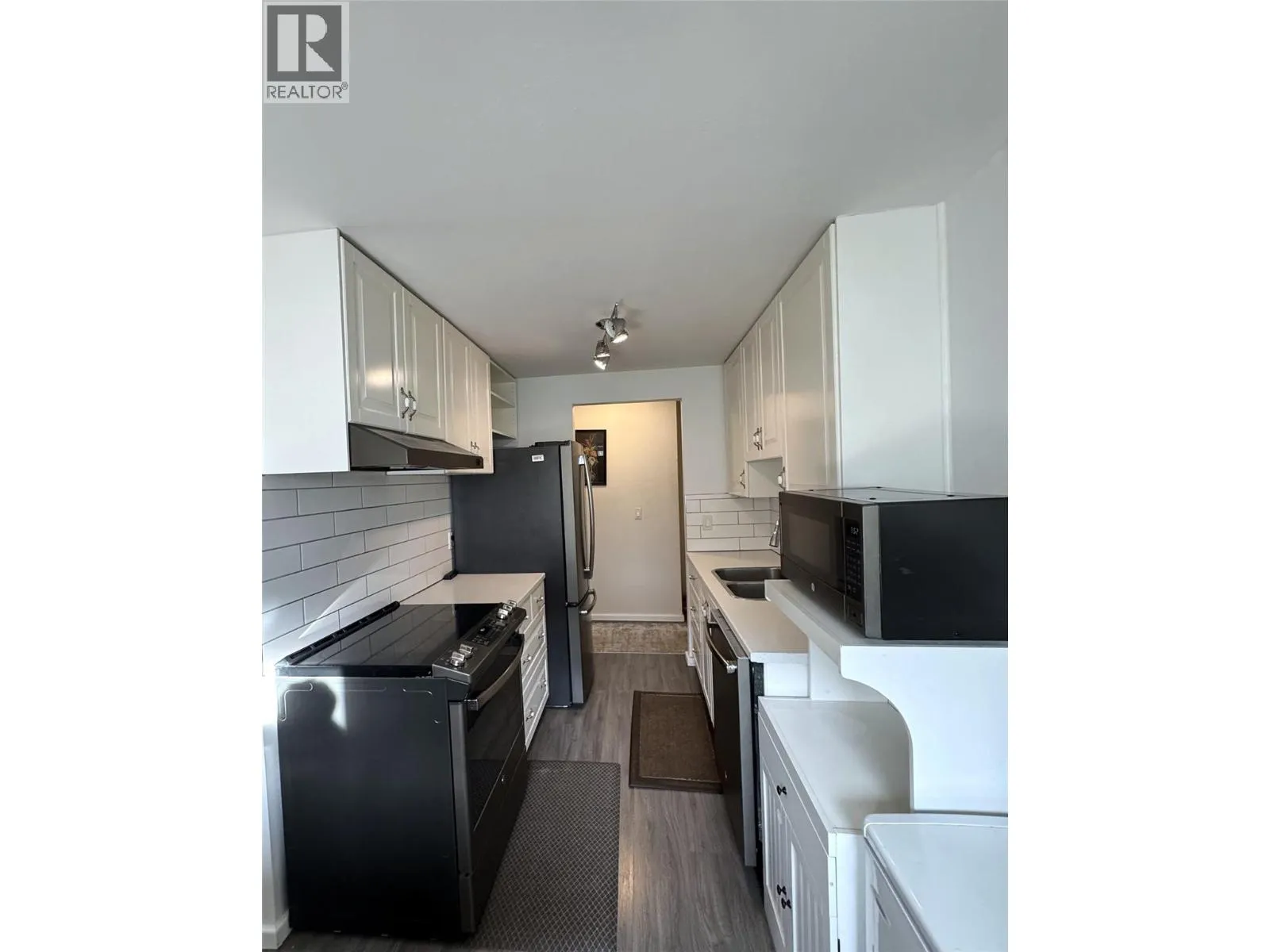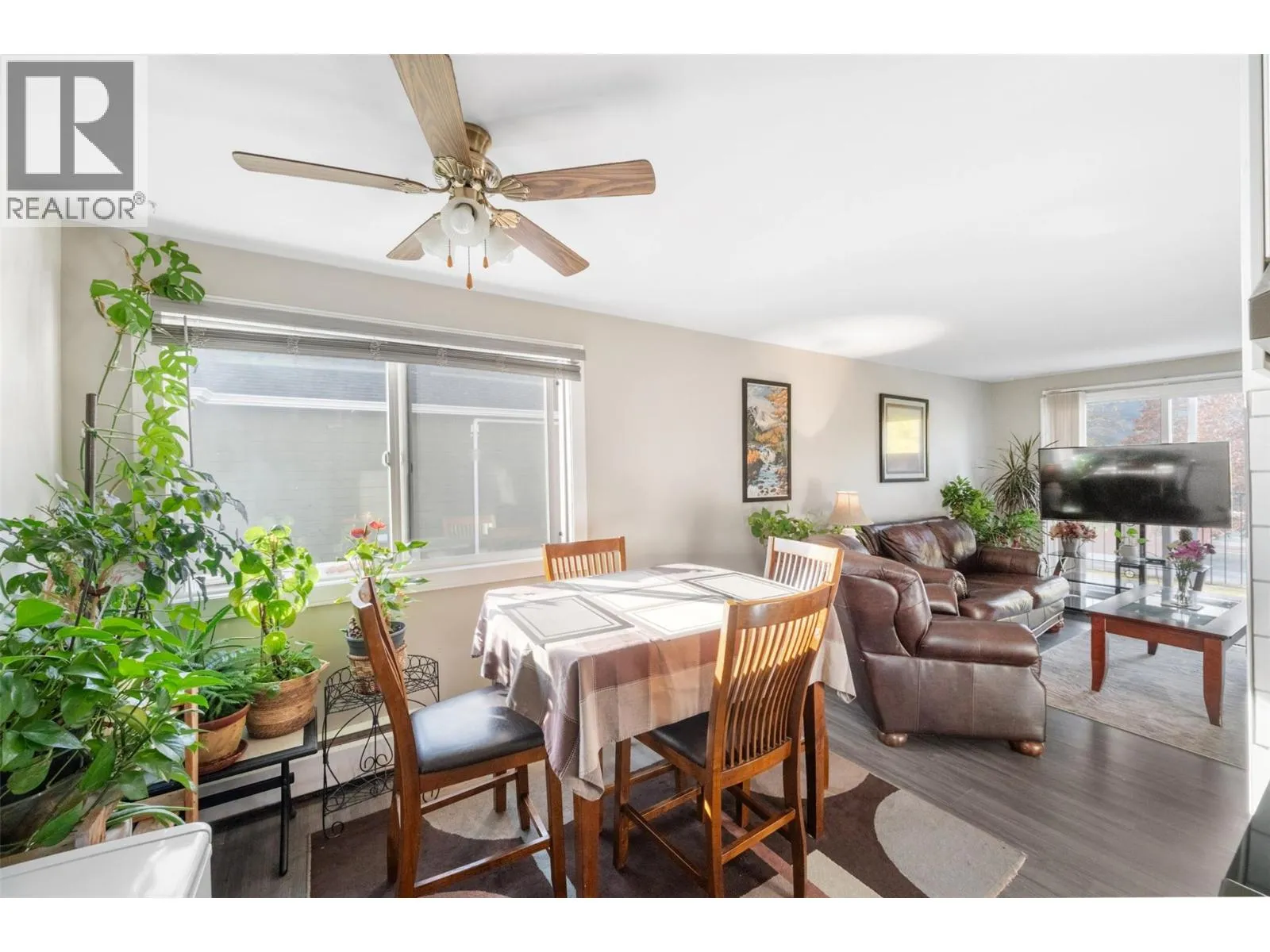 This bright and inviting second-floor corner unit offers an incredible amount of natural light that fills every room. The open floor plan creates a seamless flow throughout the home, complemented by a beautifully updated modern kitchen featuring a stylish tile backsplash, new appliances, refreshed counters, cupboards, and flooring. Additional updates extend to the bathroom with a double sink vanity, tile flooring, and tub with tile surround! The condition is updated and move-in ready! Step out onto the covered deck and enjoy a lovely view of the park and tennis courts â the perfect spot for a morning coffee or relaxing evening. Located in a quiet and friendly neighborhood, this home is just a short drive from downtown shopping, restaurants, and other amenities. Rental-friendly with no age restrictions, this property offers affordable living at its best. The monthly strata fee conveniently covers electricity, hot water, garbage, sewer, water, management and building maintenance â truly cheaper than rent! (id:27476)