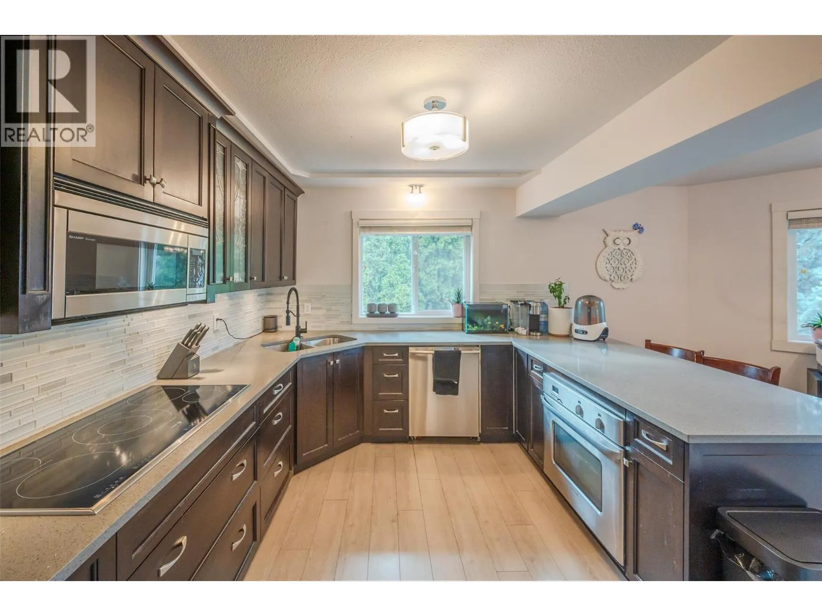Welcome to this beautifully updated 4,000 sq ft residence in Pentictonâs highly desirable Wiltse neighbourhood. A home that combines versatility, comfort, and income potential. Thoughtfully designed for multigenerational living or investment, it offers three self-contained living areas, including the 3-bedroom, 2-bathroom short-term rental suite on the main level layout tailored for wheelchair accessibility and mobility ease, offering bright, open spaces that make everyday living effortless. At the rear of the main floor, the second living area includes its own private ground-level entrance, with two bedrooms and two bathrooms, highlighted by a spacious upper-level primary suite boasting panoramic views of Penticton. The lower level offers a non-conforming two-bedroom daylight suite with a full kitchen, separate laundry, and direct access to a large concrete patioâcomplete with a hot tub, gazebo, and fully fenced yard, creating the perfect space to relax or entertain. Additional highlights include ample open parking, a double attached garage, and extensive updates such as a new roof, fencing, patio, plumbing, and HVAC systemâproviding both peace of mind and lasting value. Whether youâre looking to grow your family estate, generate reliable income, or enjoy a home that adapts to every stage of life, this exceptional property offers endless flexibility and opportunity in one of Pentictonâs most sought-after areas. (id:27476)
