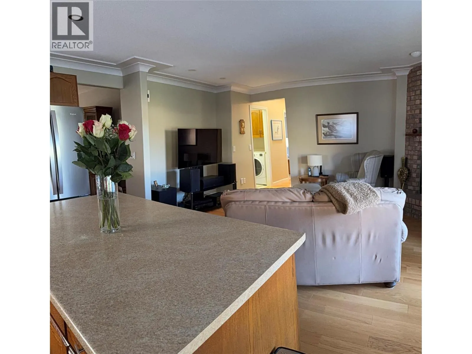 Welcome to Sandbridge, one of Pentictonâs most sought-after gated communities, celebrated for its meandering waterways, lush landscaping, and resort-style clubhouse with pool and hot tub. Perfectly situated near Skaha Lake, the Seniors Centre, local shops, and scenic walking trails, Sandbridge offers an exceptional blend of comfort, convenience, and community. This beautiful rancher-style home is truly move-in ready. A double-car garage leads to a welcoming foyer and spacious laundry/mudroom with plenty of storage. The open kitchen and dining area flow seamlessly to the private patio, where you can relax amid mature landscaping, mountain views, and the soothing sounds of the water features. A thoughtfully opened wall between the kitchen and living area creates a modern, airy layout ideal for entertaining and everyday living. The home features a large guest bedroom and full main bathroom, plus a generous primary suite complete with walk-in closet and 5-piece ensuite. Move in and enjoy the friendly, well-run Sandbridge community â all within walking distance to shops, parks, the beach, and local dining. A wonderful place to call home â offering the perfect balance of lifestyle, location, and low-maintenance living. (id:27476)