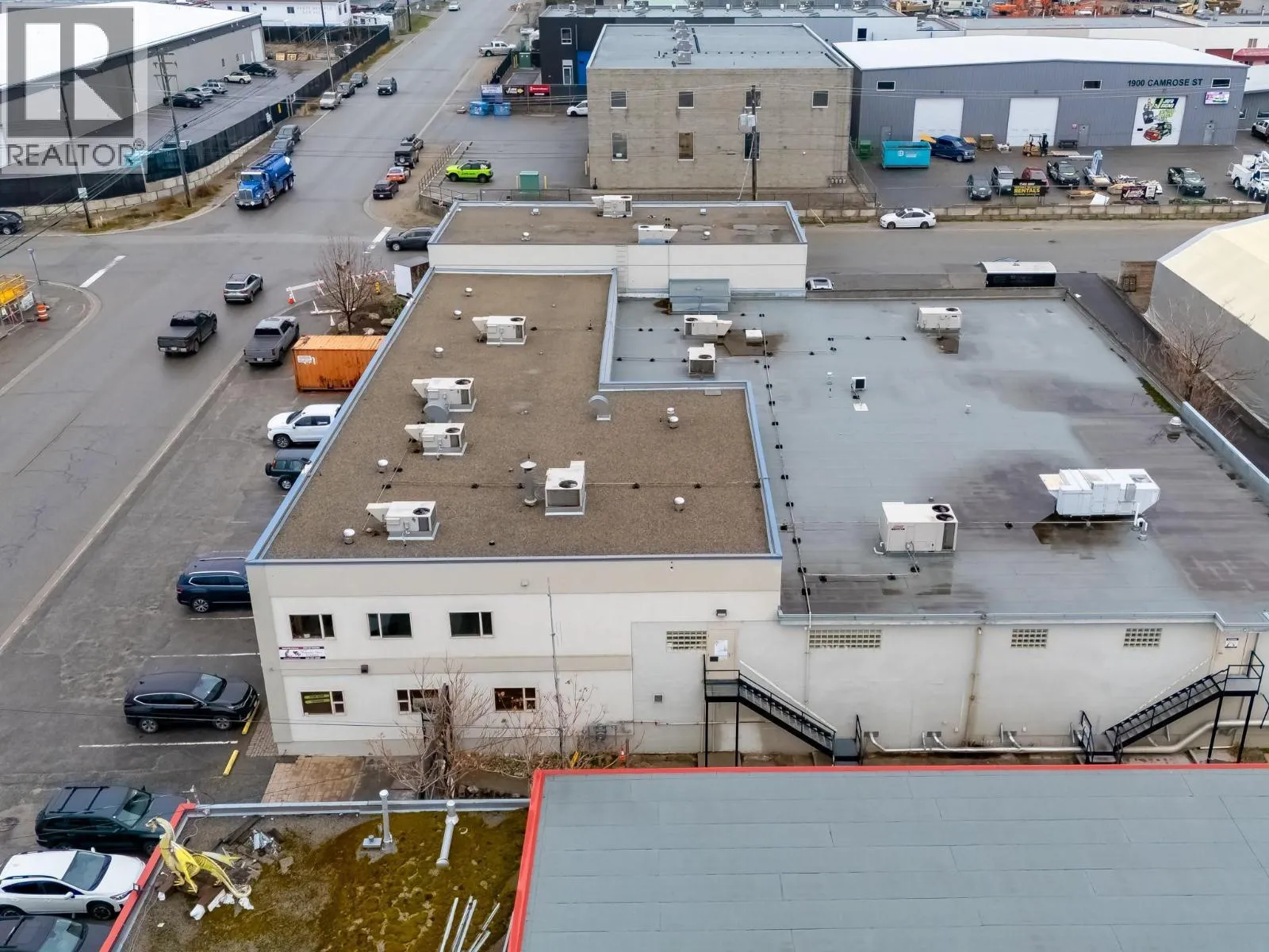 High-Profile Corner Investment Property. Exceptional opportunity to acquire a prominently positioned commercial building fronting both Okanagan Avenue and Camrose Street. This property has undergone extensive renovations over the past four years, with reported improvements totaling approximately $1.2 million. Offering 33,784 square feet of gross leasable area on a flat 0.68-acre parcel, this M1-zoned (Mixed Urban Centre Commercial) property accommodates a strong and diverse mix of commercial and light industrial tenants. The current tenant roster provides a stable and diversified income stream, effectively mitigating risk for an investor. Additional highlights include 18 on-site parking stalls, an elevator, and accessible washrooms, ensuring convenience and compliance for all occupants. A true armchair investment, this is a turnkey asset in a prime location with significant capital improvements already completed. (id:27476)