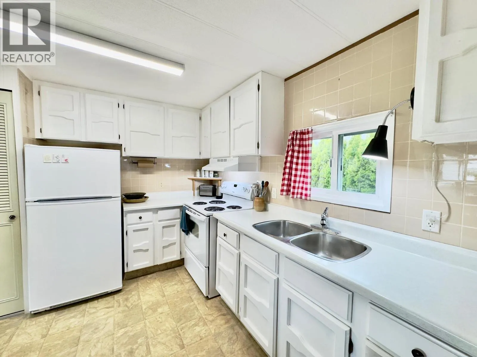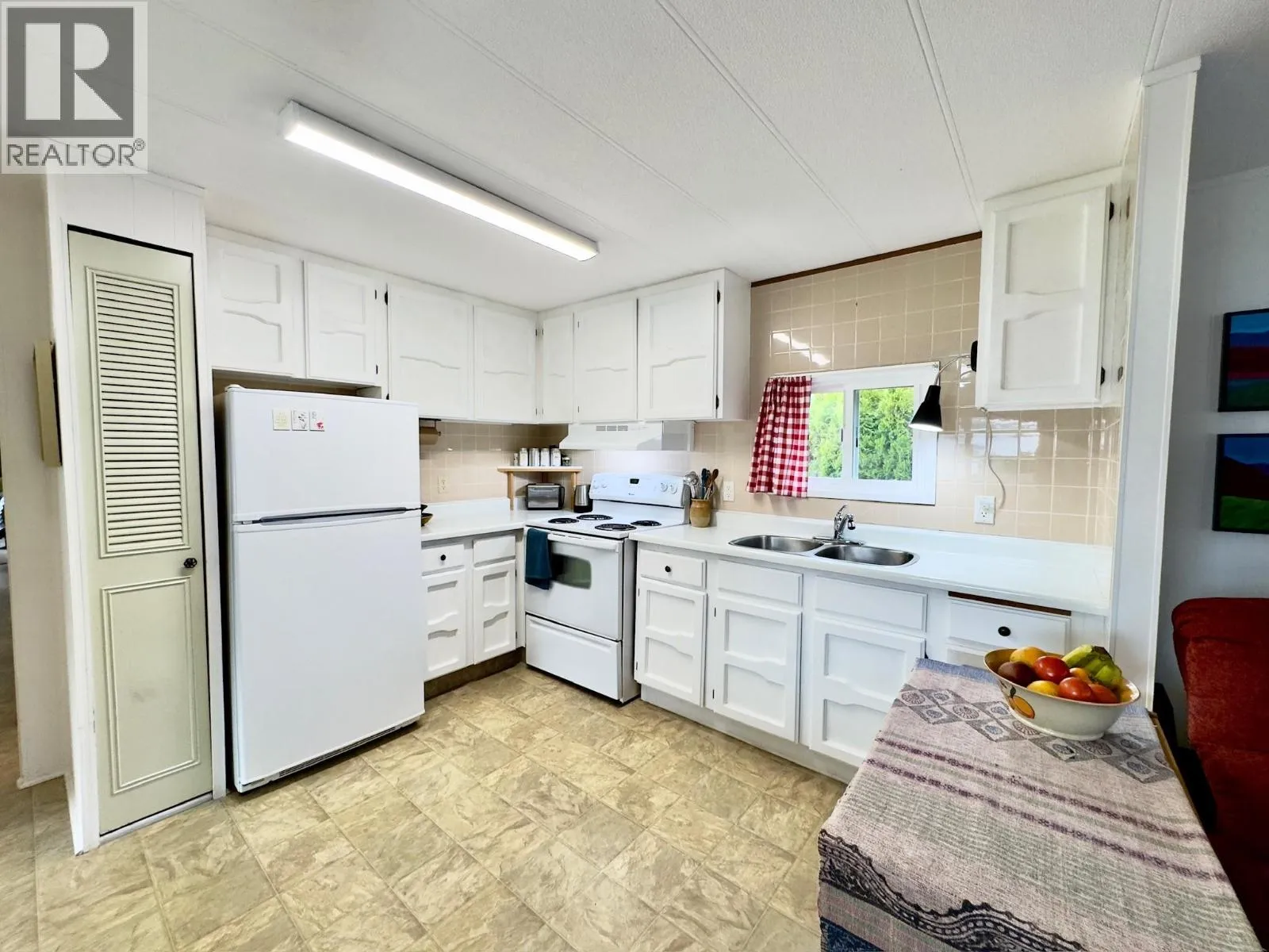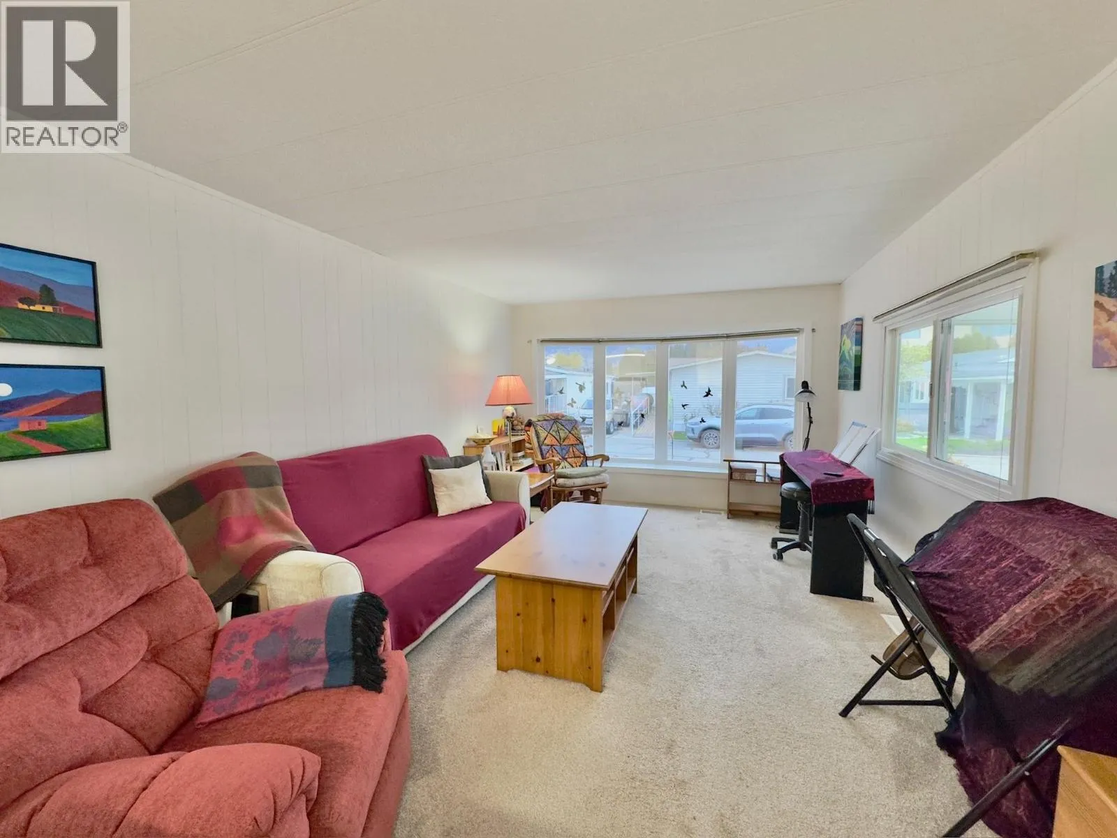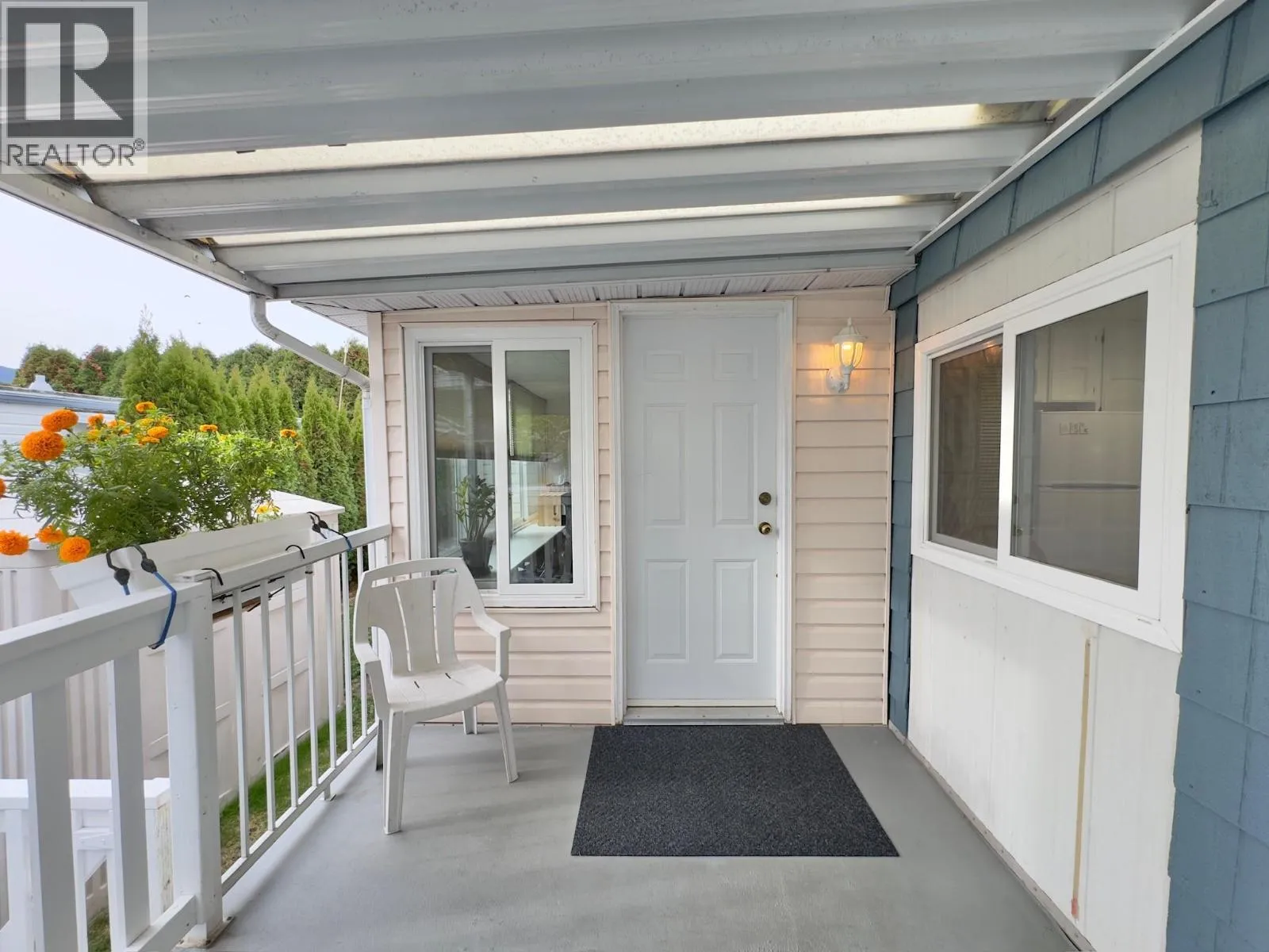 Welcome to Burnaby Gardens â one of the most desirable 55+ communities in Penticton! This charming and well-maintained home sits in the quietest corner of the park, at the end of a no-through road for ultimate privacy and peace. Featuring a bright, open layout with a spacious living room, kitchen, and dining area filled with natural light. Offering 2 comfortable bedrooms, a full bathroom, plus two versatile flex rooms perfect for hobbies, guests, or a home office. Enjoy modern comfort with a heat pump A/C, upgraded vinyl windows, a heated addition, new paint and flooring. Step outside to your private backyard oasis with a cozy garden sitting area and two storage sheds. The wheelchair ramp, covered carport, and additional paved parking add convenience and accessibility. Located just a short stroll from Okanagan Lake beaches, restaurants, cafes, downtown shops, the SOEC, and the farmersâ market â this location canât be beat. Park is age 55+, one small pet allowed (to 15â), and no rentals. Pad rental currently $784.00 (id:27476)