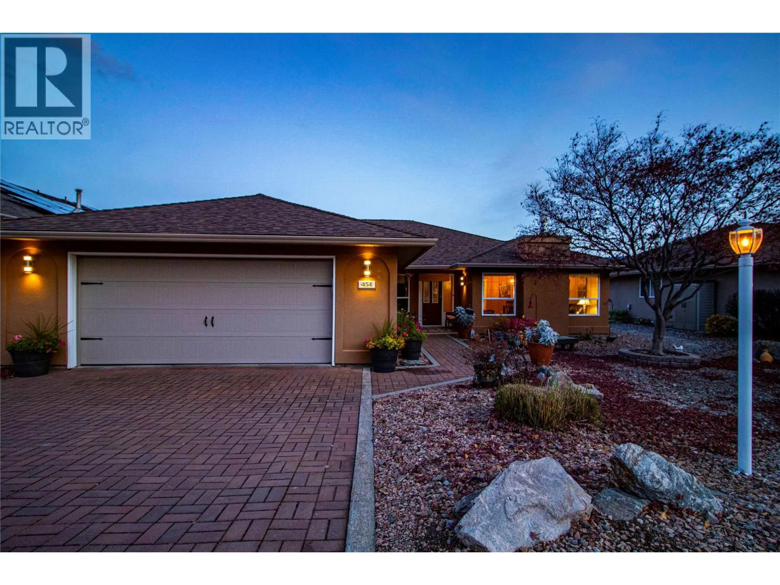 The pictures say it all: one of the most breathtaking views of Okanagan Lake and Penticton, all the way to Skaha Lake! This rancher, located in Red Wing Resorts, has two bedrooms plus a den that take full advantage of the view inside and out. The patio doors in the family room open onto the massive composite deck that steps down to low maintenance landscaping complete with a prune plum tree. Many quality upgrades including a custom kitchen with quartz counters, travertine tile backsplash, large sit-up island, stainless steel appliances including a high-end Bertazzoni gas range and hood fan, engineered hardwood flooring, quality blinds throughout, newer Valor gas fireplace in the living room, high-efficiency furnace installed last year as well as a new hot water tank, and the list goes on. Spacious primary bedroom with window seat that takes in the view. Tastefully updated ensuite with soaker tub and separate shower, large double vanity offering a generous amount of storage. Tons of storage throughout, double garage with workbench and cabinets. Poly-B has been replaced. Must be seen to be truly appreciated. CONTINGENT to Red Wing Resorts waiving its right of first refusal. (id:27476)