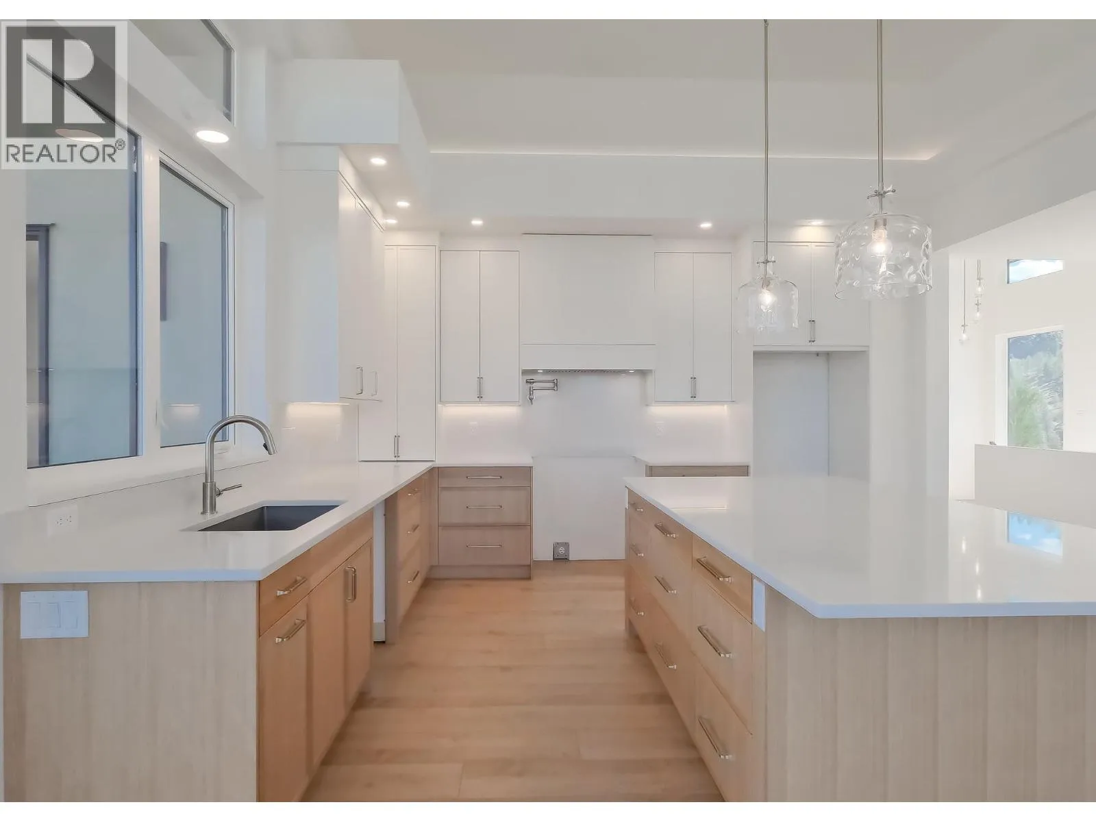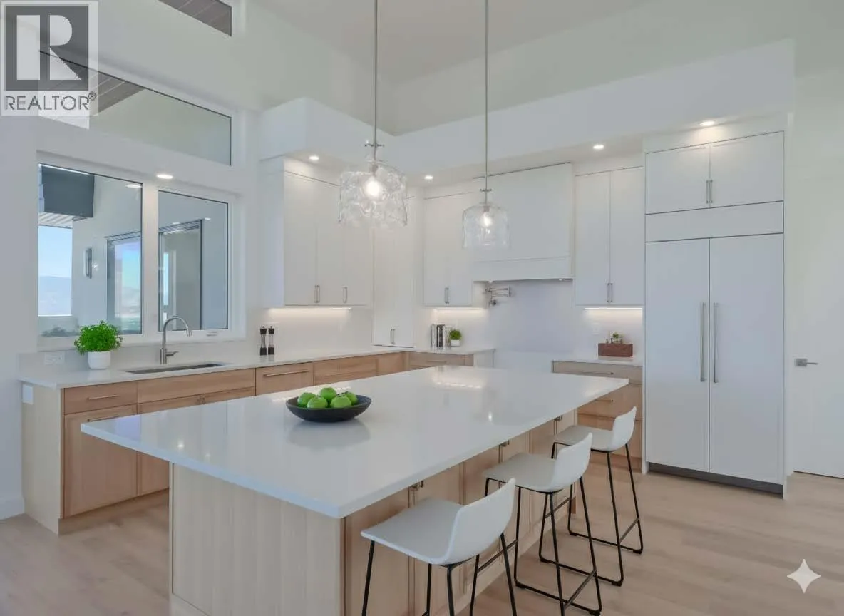 Stunning lakeview home, high-end craftsmanship. Experience elevated lakeside living in this impeccably designed, custom-built home offering breathtaking, unobstructed lake views. This home has 4 bedroomsâincluding two primary suites, each with its own ensuiteâfor a total of 4 bedrooms and 3 bathrooms, offering exceptional comfort and flexibility for family or guests. Step into grandeur with soaring 14â ceilings in the living room and 12â ceilings in the entry. The open-concept living space is anchored by a striking floor-to-ceiling window and a sleek 77"" electric fireplaceâperfect for both relaxing and entertaining. The kitchen showcases custom modern shaker cabinetry shaker cabinetry, an oversized 8â x 4â island, and high-end fixturesâideal for gourmet cooking and gatherings. The deluxe primary suite is a true retreat, offering serene lake views, deck access, and a luxurious 15â x 10â ensuite complete with a soaker tub, custom glass shower with a 12â rain head, heated tile floors, and heated towel rack. A 13â x 6â walk-in closet with built-in organizers completes this private space. For a full specification sheet and more details, contact the listing agent. Don't miss this rare opportunity to own a high-end, lakeside masterpieceâavailable for immediate occupancy! (Some photos have been virtually staged. The property is currently vacant and does not include any furniture.) (id:27476)