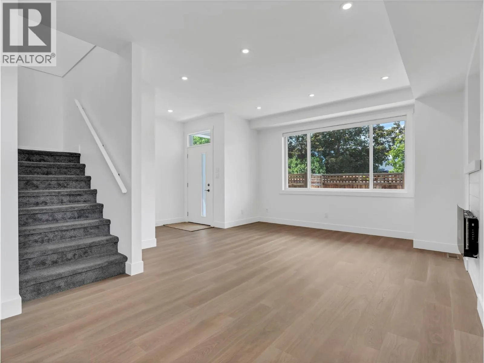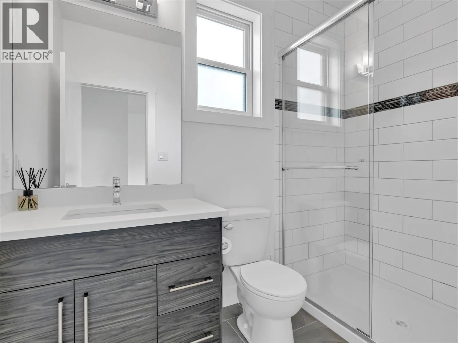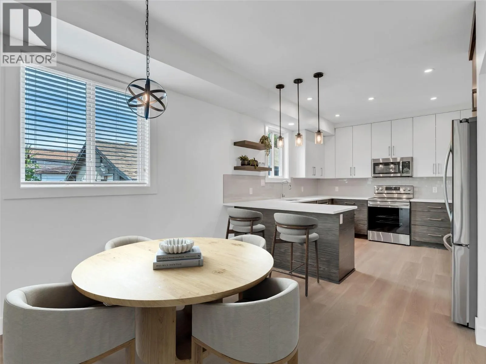 Welcome to effortless living with no strata fees, no pet restrictions, & no rules but your own - Modern Living in the Heart of Penticton! Perfectly positioned on a quiet, tree-lined street that blends the charm of a single-family neighbourhood with the convenience of downtown, this stylish 3Bd, 3bth half duplex is just a short stroll to Okanagan Lake, farmers market, restaurants, pubs, & SOEC. The main level features new flooring throughout & an open-concept layout that connects the kitchen, dining, & living areas. The kitchen is equipped with quartz countertops & brand-new appliances, while the cozy living space has an electric fireplace & access to a private, nicely sized deckâideal for relaxing or entertaining, with the option to add a natural gas BBQ hookup. A powder room, convenient laundry area with a new stacking washer/dryer, & storage complete this level. Upstairs, the spacious primary suite offers a walk-in closet & 3pc ensuite. 2 more bdrms & a 4pc main bthrm provide flexibility for families, guests, or a home office. BONUS: quiet back lane access, designated parking spot & guest parking, this move-in ready home is a fantastic option for first-time buyers, investors, or anyone seeking low-maintenance living in an unbeatable location. Trendy, turnkey, and just minutes to the lake. Total sq.ft. calculations are based on the exterior dimensions of the building at each floor level & include all interior walls & must be verified by the buyer if deemed important. (id:27476)