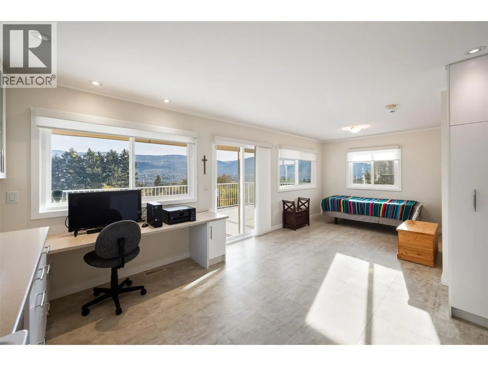 Escape to your private 1.8-acre sanctuary in the breathtaking West Bench countryside. Tucked away for ultimate serenity and seclusion, this rare gem offers endless potential for hobby farming, equestrian dreams, avid gardening, or simply embracing tranquil rural living. With sweeping vistas of Penticton city lights, the lush valley, shimmering lake, and majestic mountains, every day feels like a retreat. Main Residence: Spanning 2,192 sq ft, this move-in-ready family home blends functionality with charm. Expansive windows flood the space with natural light and frame panoramic east-facing views that will captivate you year-round. The thoughtful floor plan places two spacious bedrooms on the main level for easy living, while two more reside on the lower levelâperfect for growing families, guests, or home offices. In excellent condition yet brimming with customization opportunities, update to your heart's desire and make it uniquely yours. Secondary Suite: A standout feature is the separate 1-bedroom residence, meticulously maintained with generous room proportions, a tasteful neutral palette, and an expansive deck showcasing those same jaw-dropping views. Ideal for extended family, rental income, or a private guest quarters. Below, a massive walk-out basement provides abundant storage for all your needs. Whether you're seeking peace, privacy, or a multi-generational compound, this property delivers unmatched value in a one-of-a-kind setting. (id:27476)