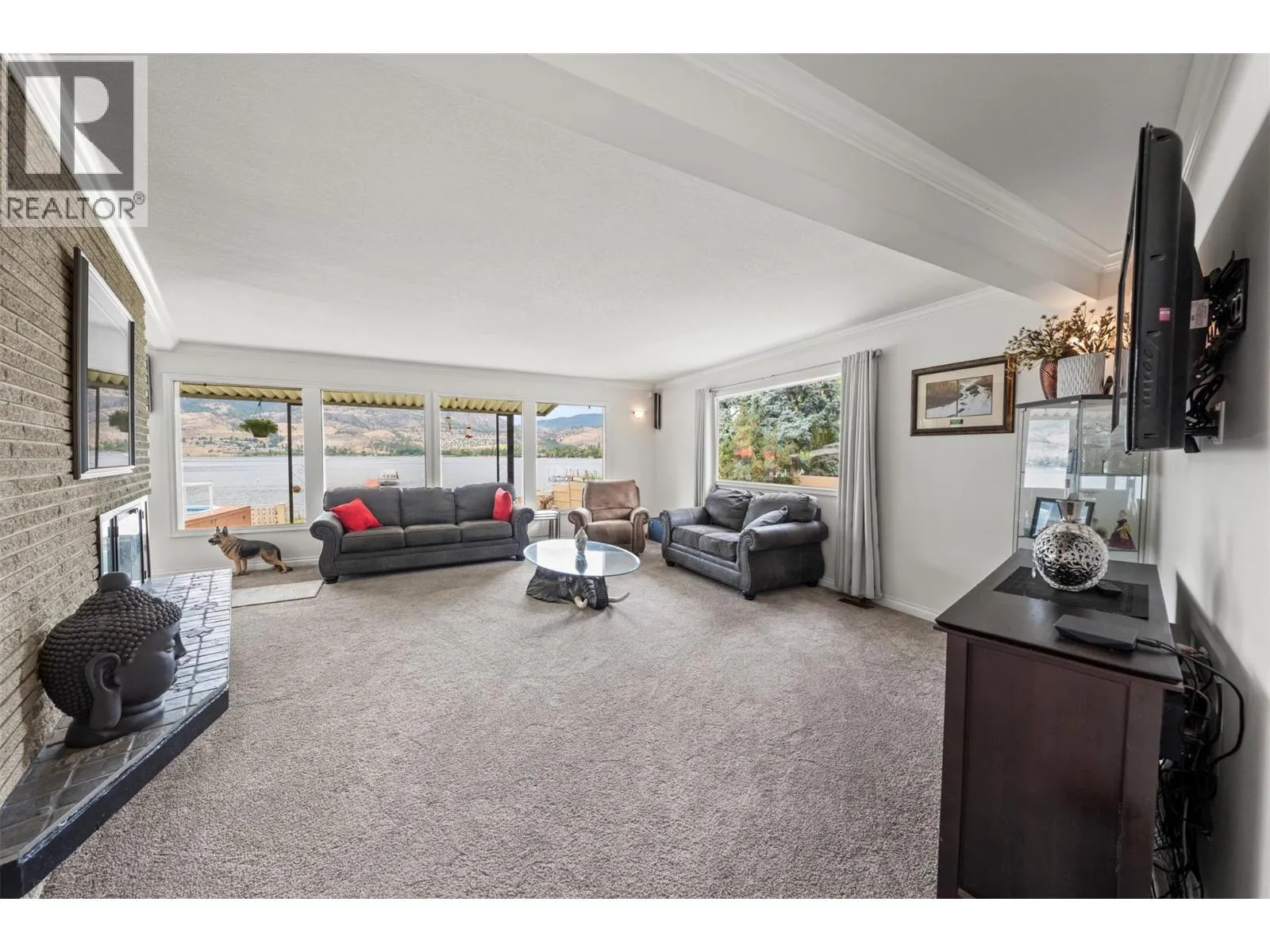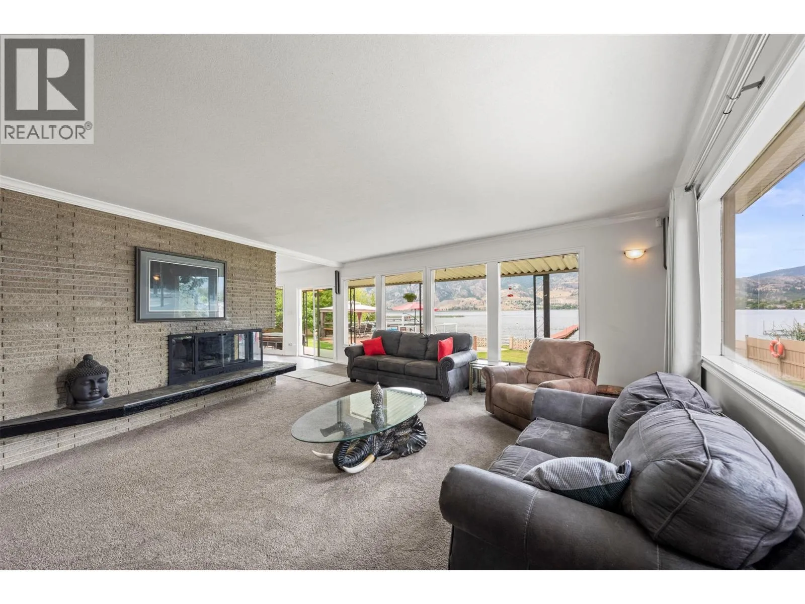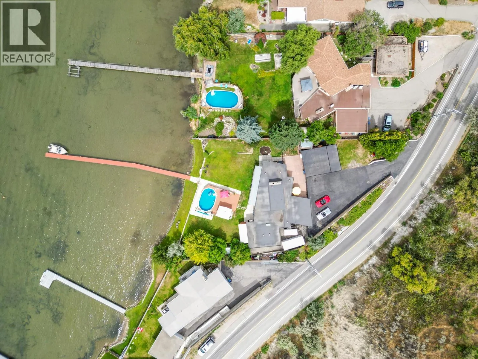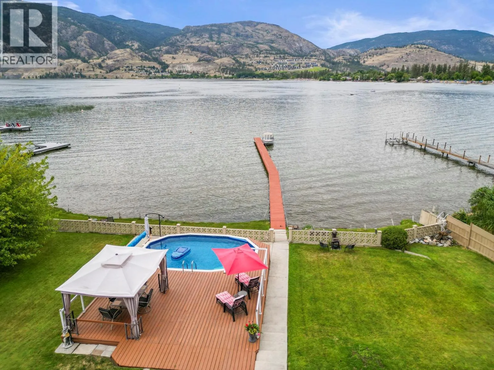 One of a kind massive nearly half Acre waterfront lot zoned R4-L Small-Scale Multi-Unit Residential - Large on exclusive Skaha Lake with approx 123' of waterfront and a dock! This west facing lot is flat, serviced with underground lines, and in the perfect location which is close enough to walk to a waterfront park, public beach, marina, dining, and just far enough away to get away from it all. The 2389 sq ft mid century modern rancher is updated and has 11' vaulted ceilings in the spacious kitchen, massive windows bringing in all the natural light you crave and panoramic lake/mountain/beach views from nearly every room. You will love the private patio courtyard in the front and covered deck with bbq station in the back. There is suite potential as primary bedroom has its own wet bar with plenty of space, ensuite, sitting area, separate entrance, and covered deck with lake view. There is ample parking whatever your needs on this beautiful large lot and a detached triple car garage for all your toys, it has development/subdivision potential and a foreshore permit with the potential to extend the current dock to a 120' dock! Secure, gated access, fully fenced, move in ready, perfect for any developer or those looking for a generational or long term holding property. One of the last large waterfront lots left and in one of the most desirable locations in the South Okanagan, this is your chance! (id:27476)