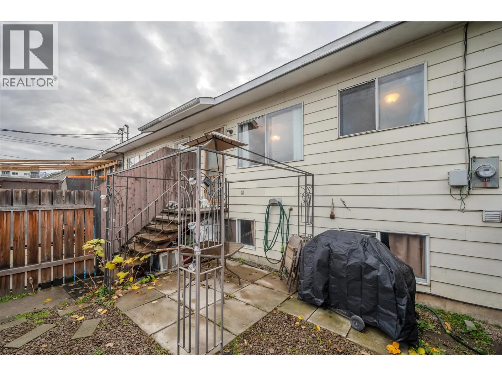 Welcome to this fantastic 3-bedroom, 1.5 bathroom townhouse offering exceptional value with NO STRATA FEES, no pet restrictions, and no age restrictions! Perfectly situated in a highly desirable area, youâll love being just minutes from the South Okanagan Events Center, Okanagan Beach, the golf course, the casino, transit, dining, and endless recreation options. Convenience truly meets lifestyle here. Inside, the home provides comfortable living spaces for families, first-time buyers, or investors alike. Enjoy both a private fenced front yard and a fully fenced backyard, ideal for pets, gardening, or relaxing outdoors. Parking is effortless with spots right out front plus lane access at the back. A storage shed adds even more functionality for tools, bikes, and seasonal items. This affordable and versatile property offers the freedom and flexibility youâre looking forâdonât miss out on this opportunity! (id:27476)