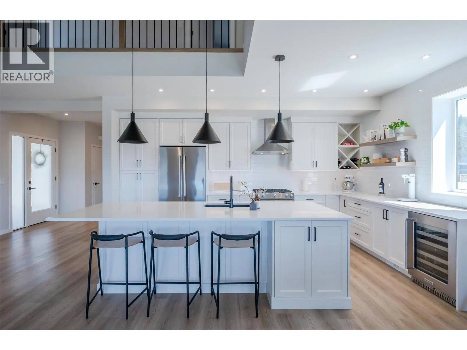 This 3,372 sq. ft. 5-bedroom, 4-bathroom home was built by one of Pentictonâs most respected builders, Parallel 50 Construction. The current owners purchased early in the build process, giving them the opportunity to add several custom upgrades that enhance both the quality and overall design. The main floor offers an open-concept layout with impressive ceiling height, large windows that fill the space with natural light, and access to a generous deck showcasing beautiful lake and mountain views. Upstairs are three well-sized bedrooms, including the primary suite, which features its own private deck overlooking the lake. The full walk-out basement is perfect for guests or extended family, with a spacious rec room, two more bedrooms, a full bathroom, and even a wine cellar. Outside, the property includes a sizable grass yard, an attached two-car garage, and extra surface parking. Built to an exceptional standard, this home remains covered under Home Warrantyâand with no GST applicable, it presents outstanding value. (id:27476)