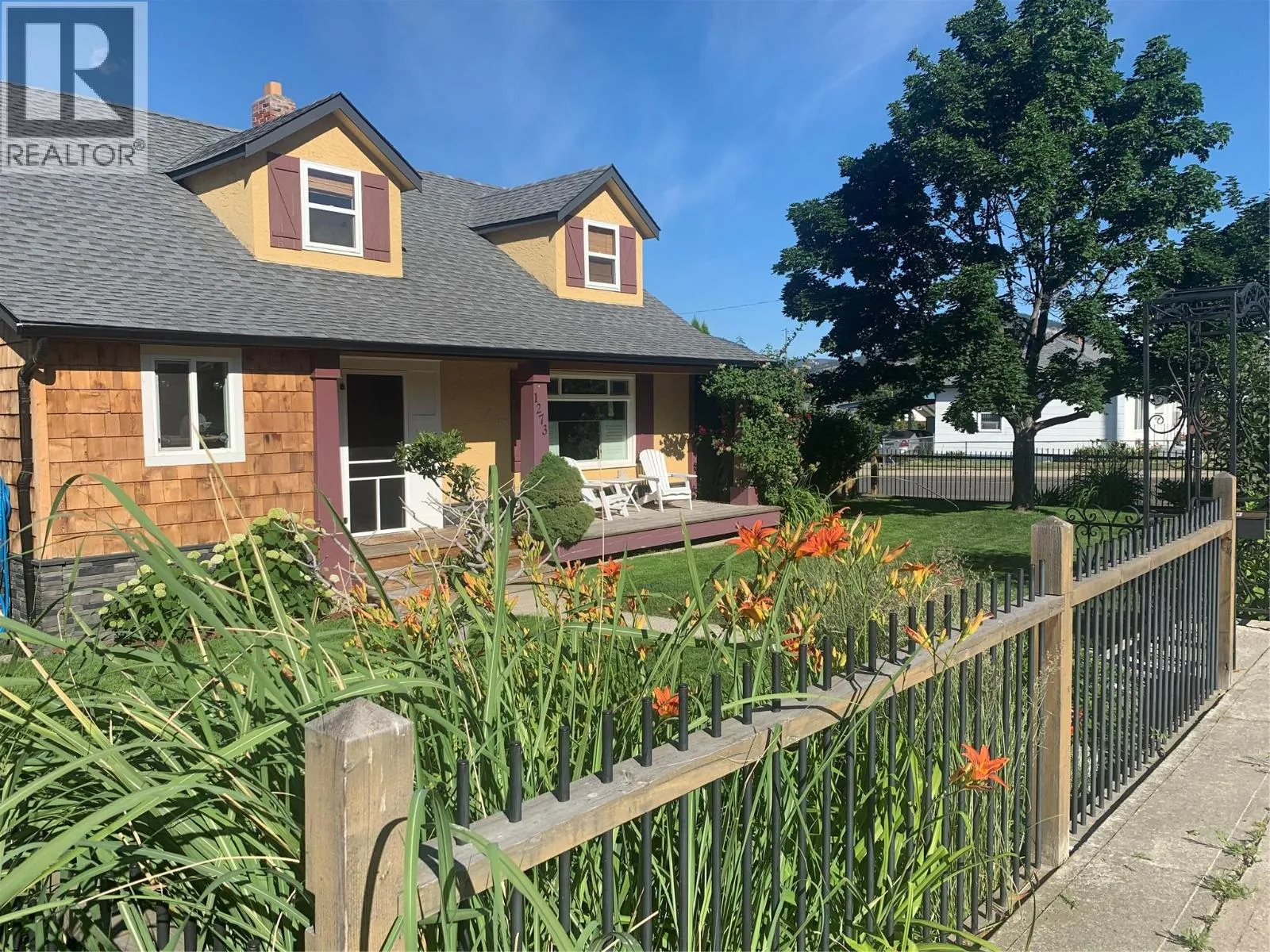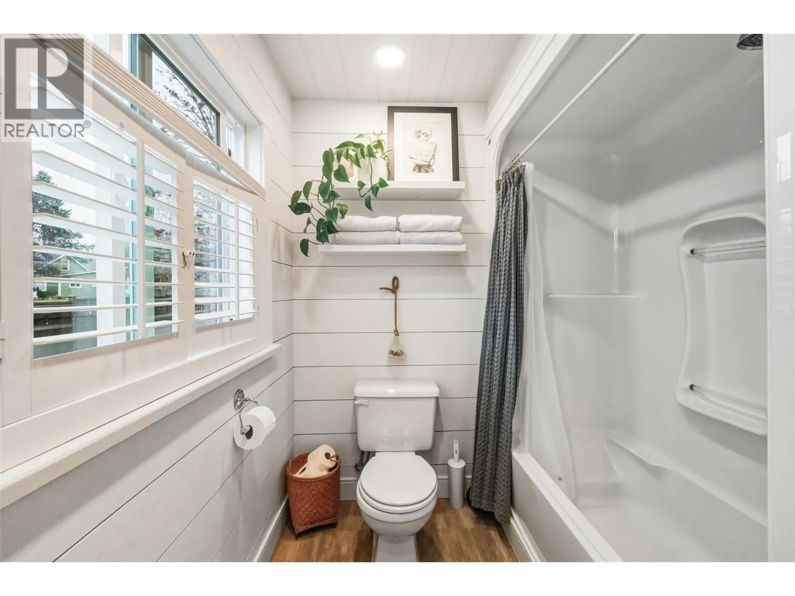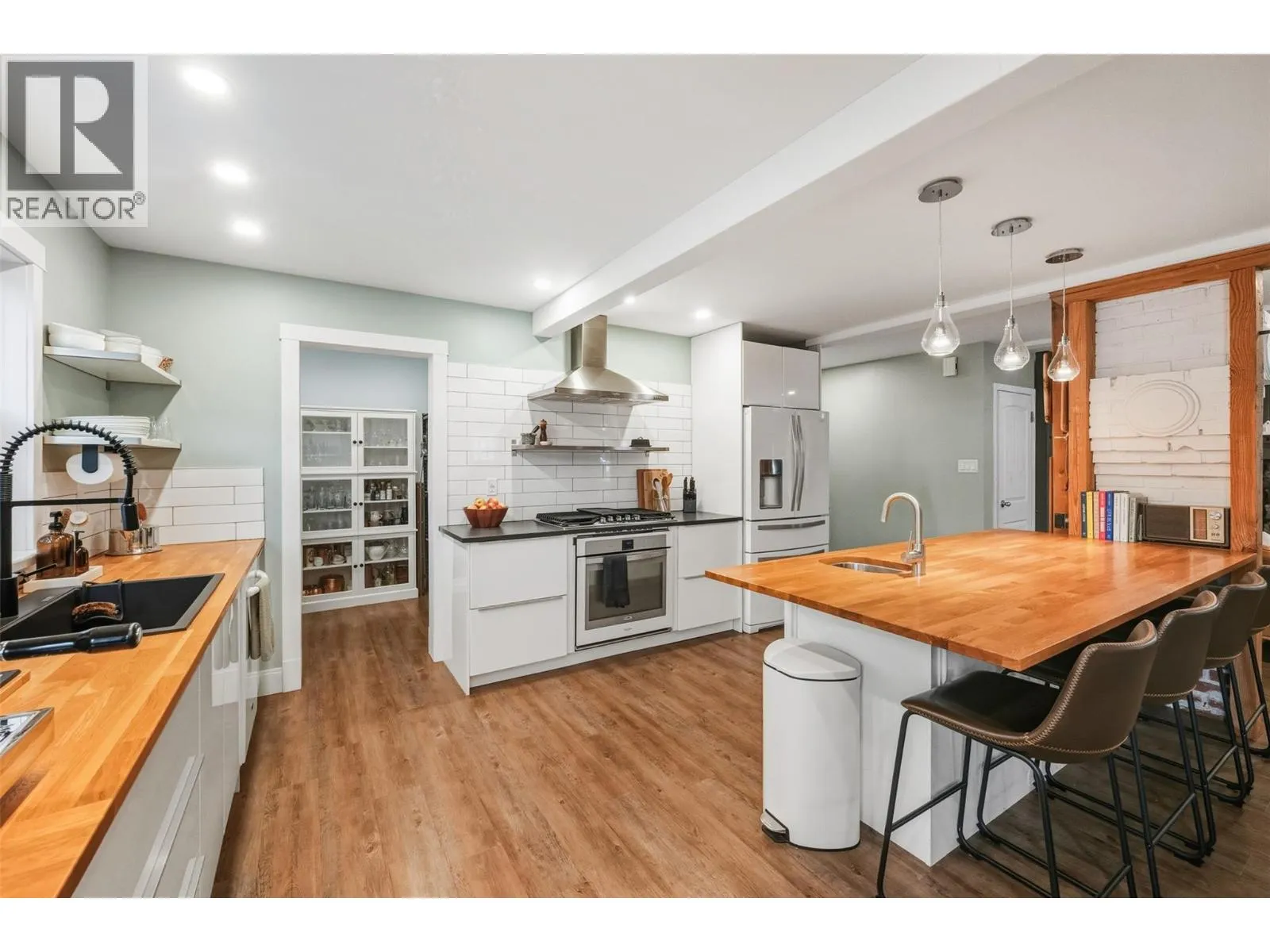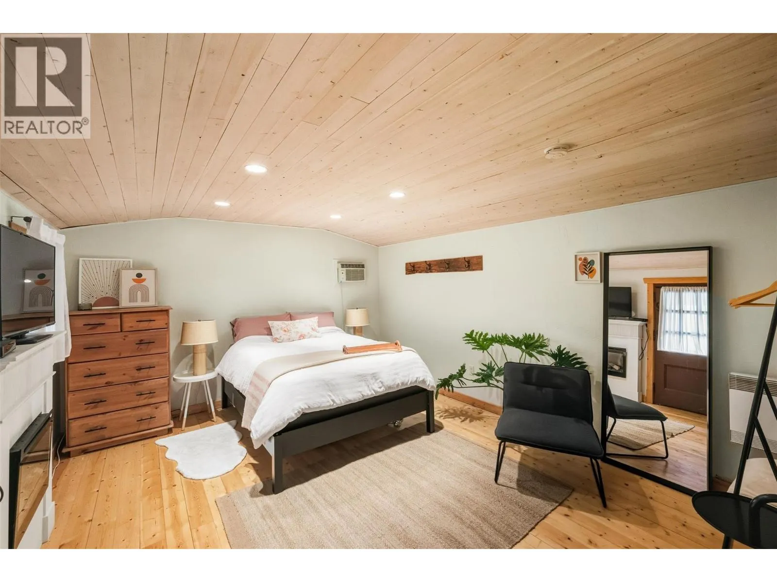 Welcome to this charming cottage chic residence paired with modern comfort, ideally located in the highly sought-after âKâ Streets neighbourhood of Penticton. Enjoy exceptional convenience with close proximity to transit, the hospital, schools, shopping, and a variety of dining options. The open-concept main level is designed for both everyday living and entertaining, showcasing coffered ceilings, living room with a striking stone gas fireplace and custom built-in shelving, and a beautifully appointed kitchen featuring a gas range, quality appliances, generous counter space, and a large centre island, the perfect gathering place for family and friends. The main floor also offers a spacious primary bedroom complete with a walk-in closet and a luxurious 5-piece ensuite, along with a full 4-piece bathroom and a convenient main-floor laundry area. Upstairs, youâll find two generous bedrooms ideal for family, guests, or a dedicated home office. Situated on a desirable corner lot, the property boasts a double detached garage and a delightful guest cabin complete with a kitchenette and a 3-piece bathroom, ideal for visitors, extended family, or potential rental income. This is a rare opportunity to own a distinctive home in one of Pentictonâs most desirable neighbourhoods, offering comfort, functionality, and outstanding lifestyle appeal. (id:27476)