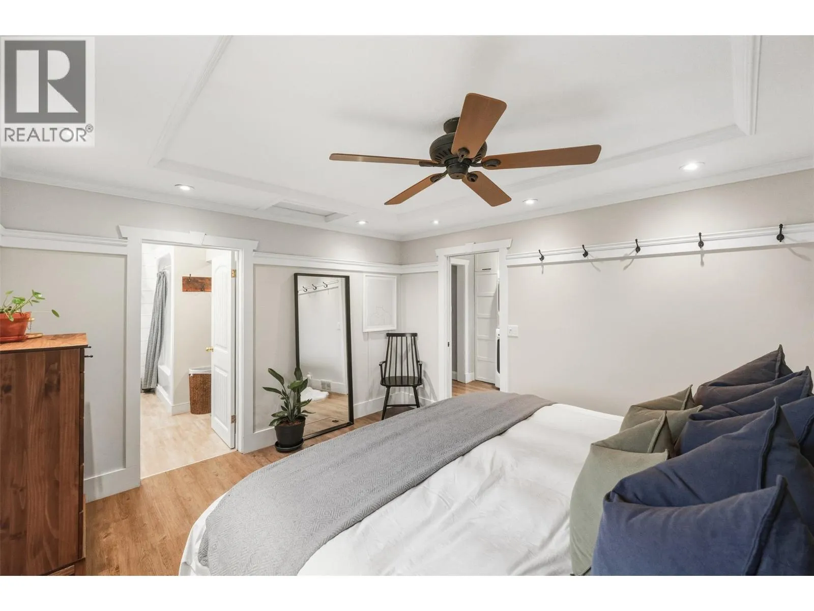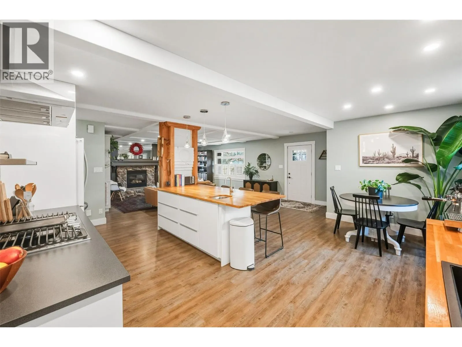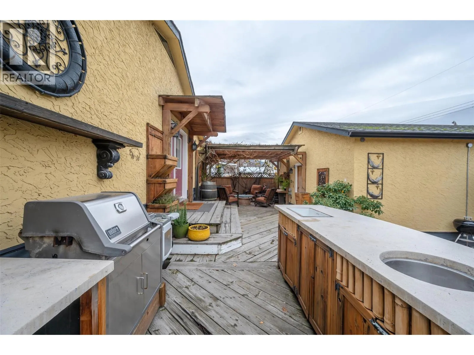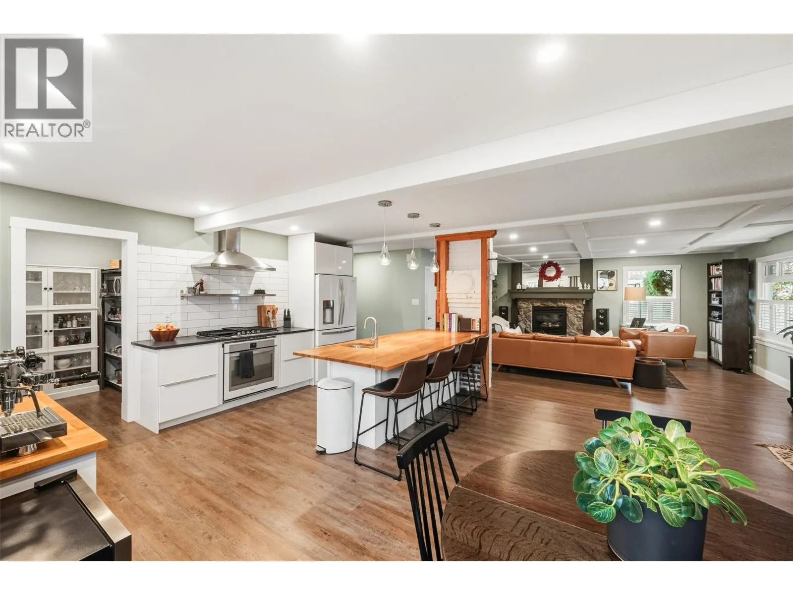 Welcome to this charming cottage chic residence paired with modern comfort, ideally located in the highly sought-after âKâ Streets neighbourhood of Penticton. Enjoy exceptional convenience with close proximity to transit, the hospital, schools, shopping, and a variety of dining options. The open-concept main level is designed for both everyday living and entertaining, showcasing coffered ceilings, living room with a striking stone gas fireplace and custom built-in shelving, and a beautifully appointed kitchen featuring a gas range, quality appliances, generous counter space, and a large centre island, the perfect gathering place for family and friends. The main floor also offers a spacious primary bedroom complete with a walk-in closet and a luxurious 5-piece ensuite, along with a full 4-piece bathroom and a convenient main-floor laundry area. Upstairs, youâll find two generous bedrooms ideal for family, guests, or a dedicated home office. Situated on a desirable corner lot, the property boasts a double detached garage and a delightful guest cabin complete with a kitchenette and a 3-piece bathroom, ideal for visitors, extended family, or potential rental income. This is a rare opportunity to own a distinctive home in one of Pentictonâs most desirable neighbourhoods, offering comfort, functionality, and outstanding lifestyle appeal. (id:27476)