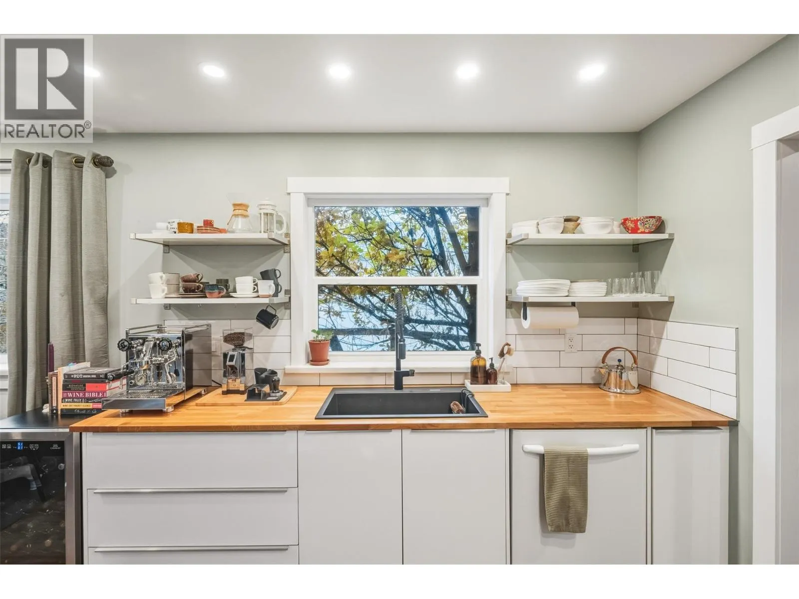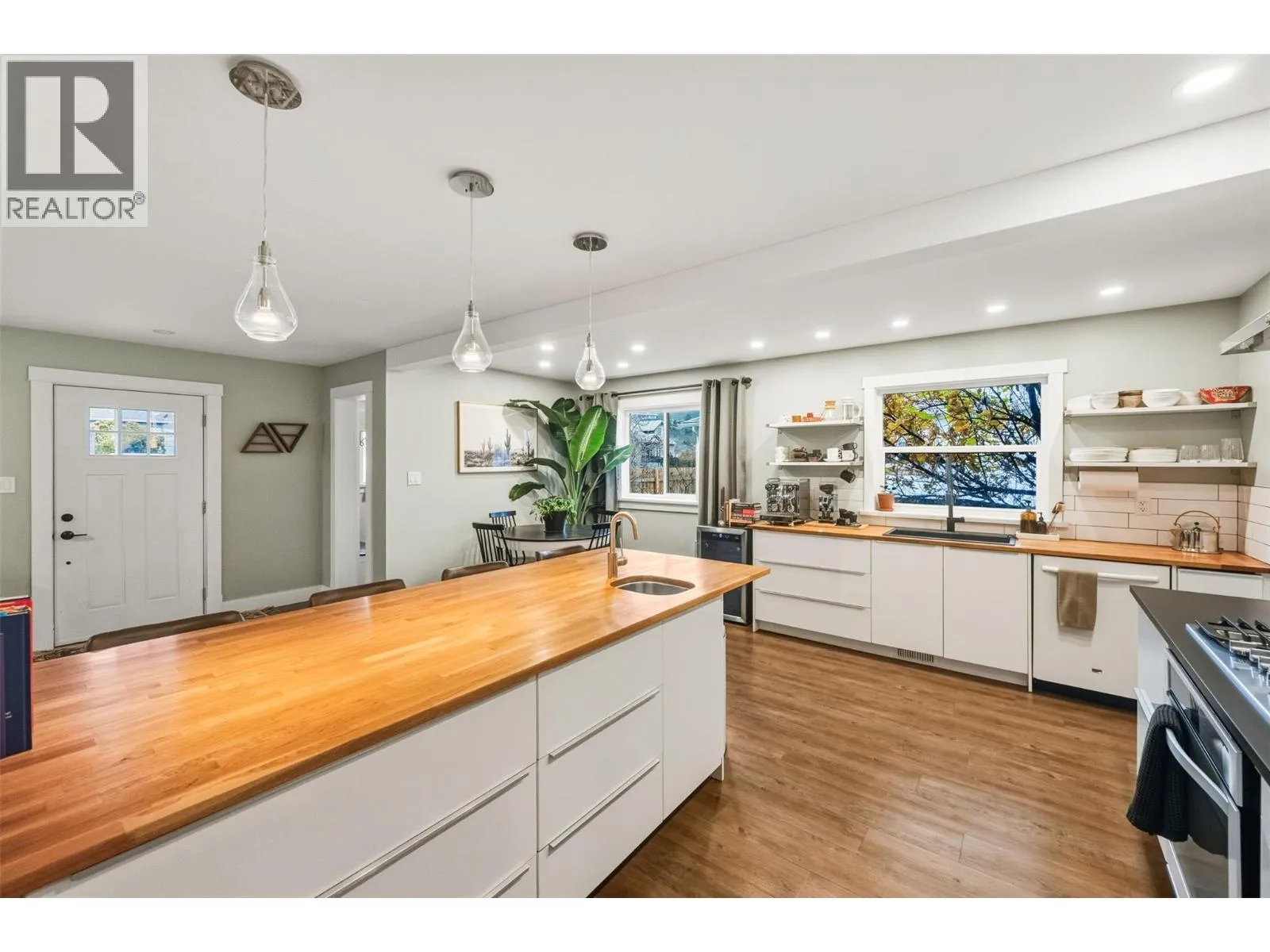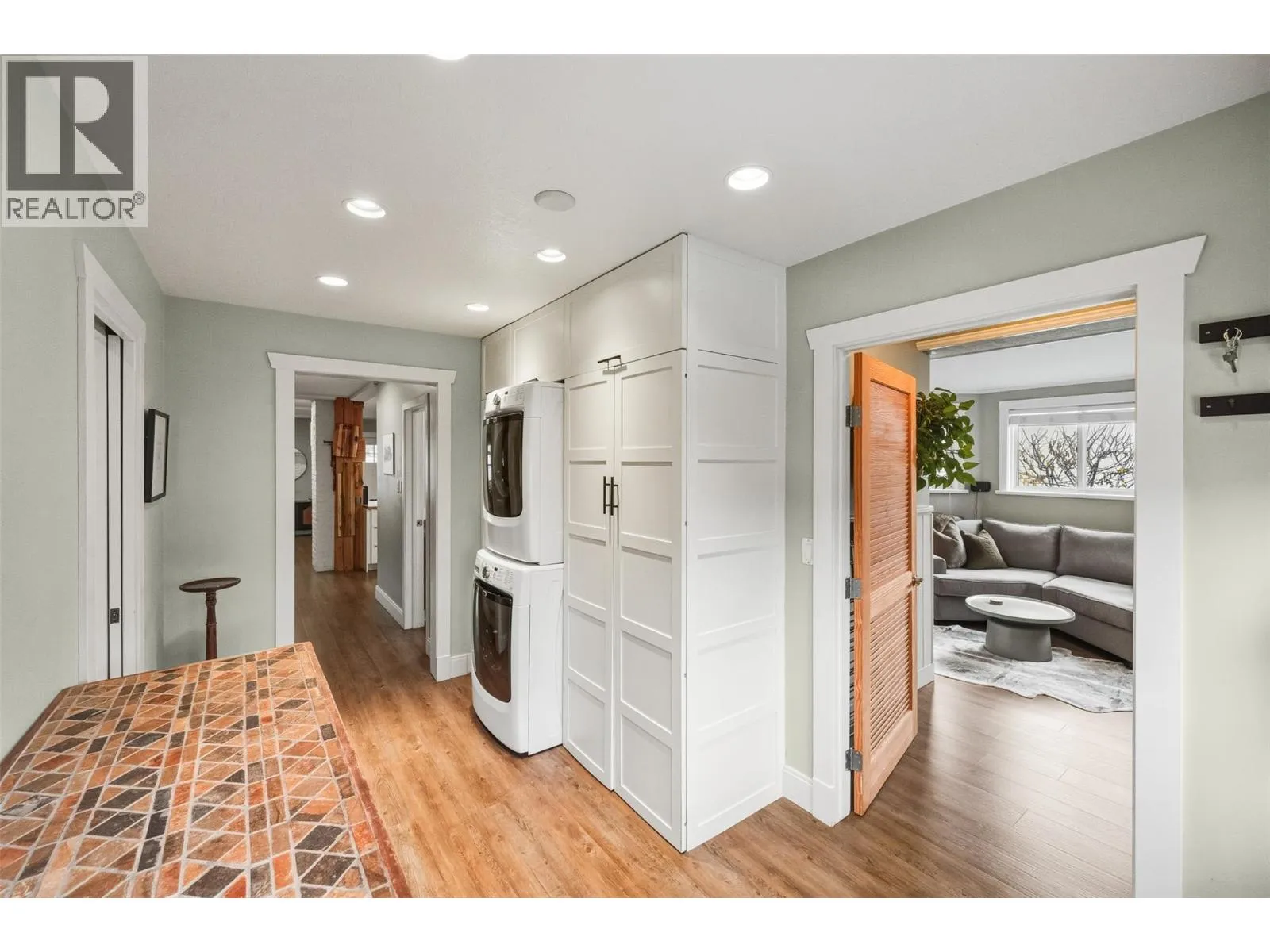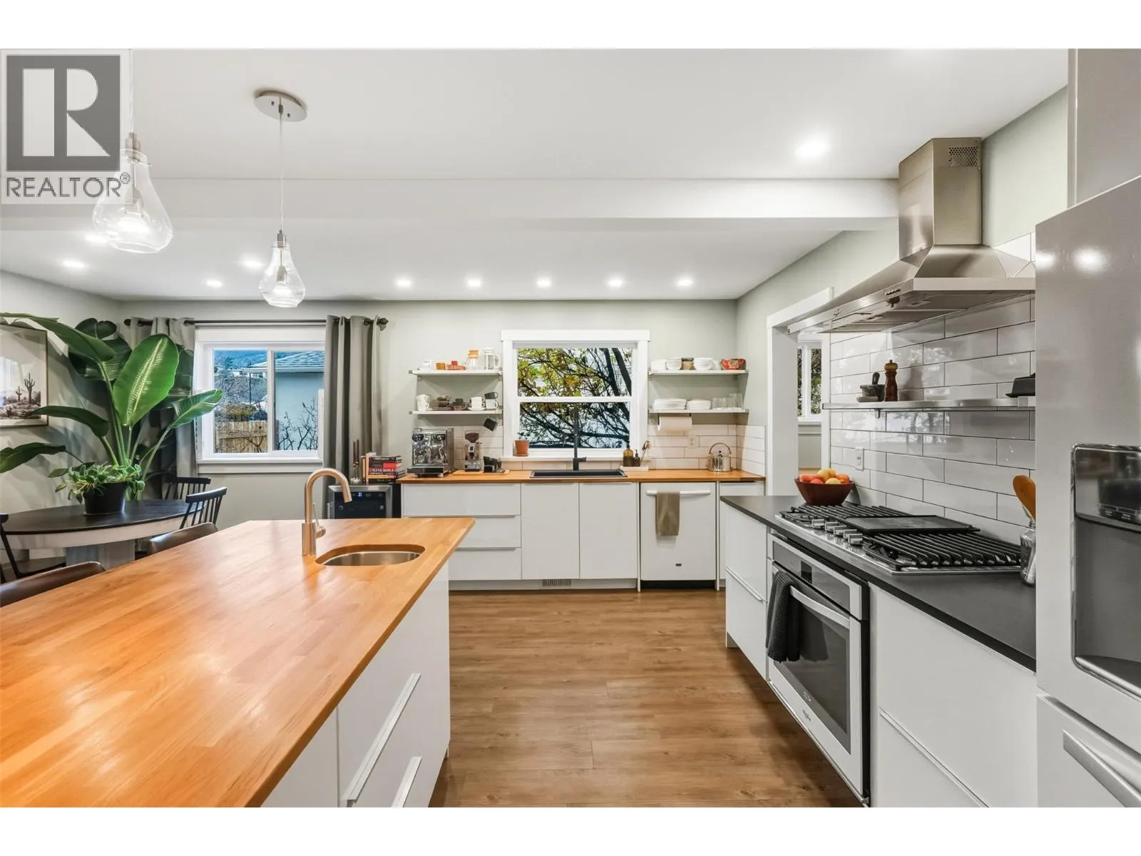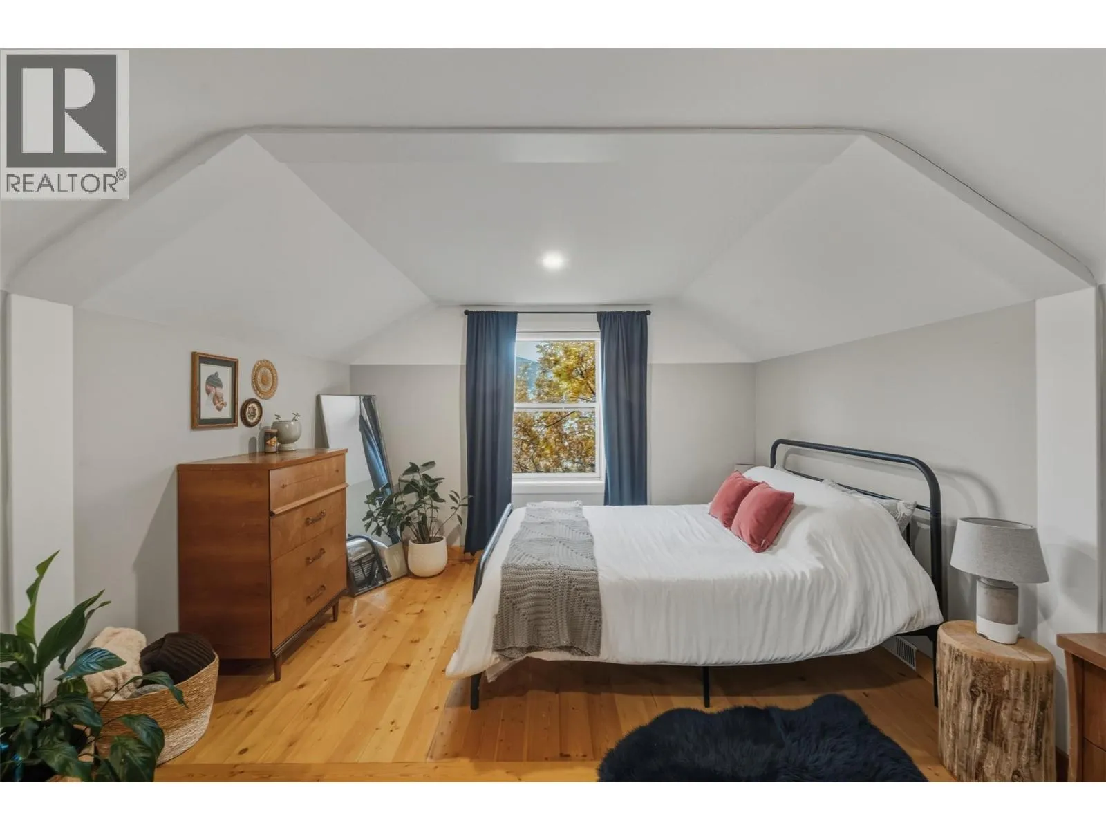 Welcome to this charming cottage chic residence paired with modern comfort, ideally located in the highly sought-after âKâ Streets neighbourhood of Penticton. Enjoy exceptional convenience with close proximity to transit, the hospital, schools, shopping, and a variety of dining options. The open-concept main level is designed for both everyday living and entertaining, showcasing coffered ceilings, living room with a striking stone gas fireplace and custom built-in shelving, and a beautifully appointed kitchen featuring a gas range, quality appliances, generous counter space, and a large centre island, the perfect gathering place for family and friends. The main floor also offers a spacious primary bedroom complete with a walk-in closet and a luxurious 5-piece ensuite, along with a full 4-piece bathroom and a convenient main-floor laundry area. Upstairs, youâll find two generous bedrooms ideal for family, guests, or a dedicated home office. Situated on a desirable corner lot, the property boasts a double detached garage and a delightful guest cabin complete with a kitchenette and a 3-piece bathroom, ideal for visitors, extended family, or potential rental income. This is a rare opportunity to own a distinctive home in one of Pentictonâs most desirable neighbourhoods, offering comfort, functionality, and outstanding lifestyle appeal. (id:27476)